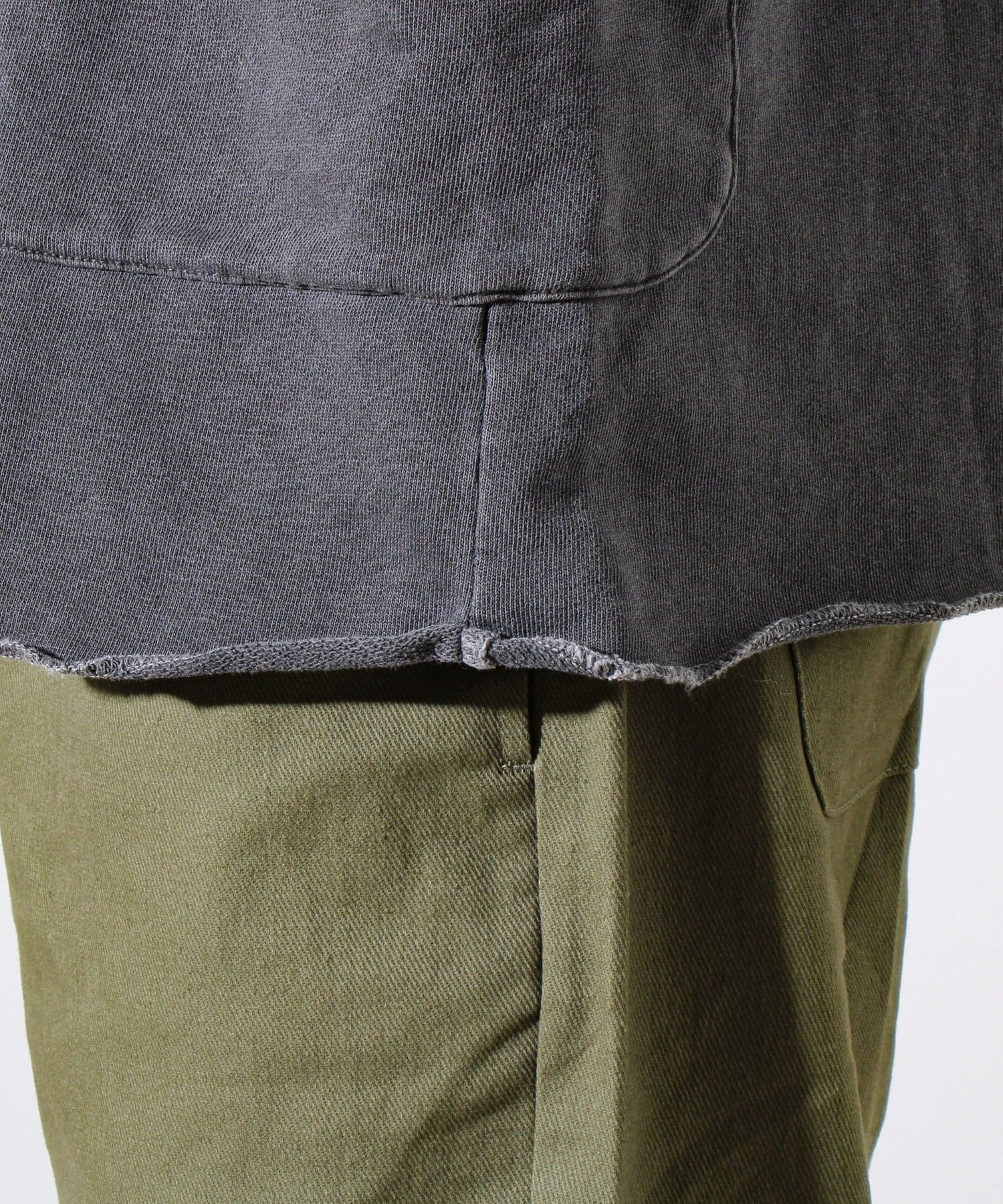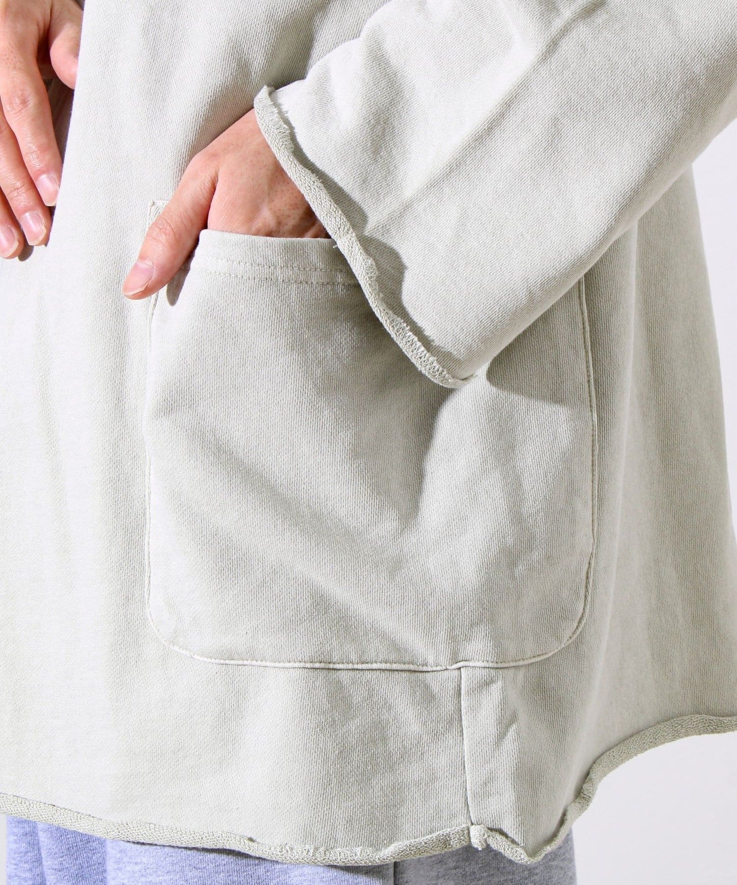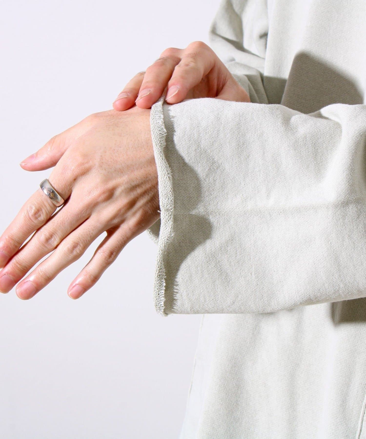 ・【無造作感が映える“カットオフ風仕上げ”】袖口と裾は、あえてラフな断ち切り風に仕上げ、着るだけでこなれた雰囲気に。シンプルながらもひとクセあるアクセントが、普段着に差をつけます。