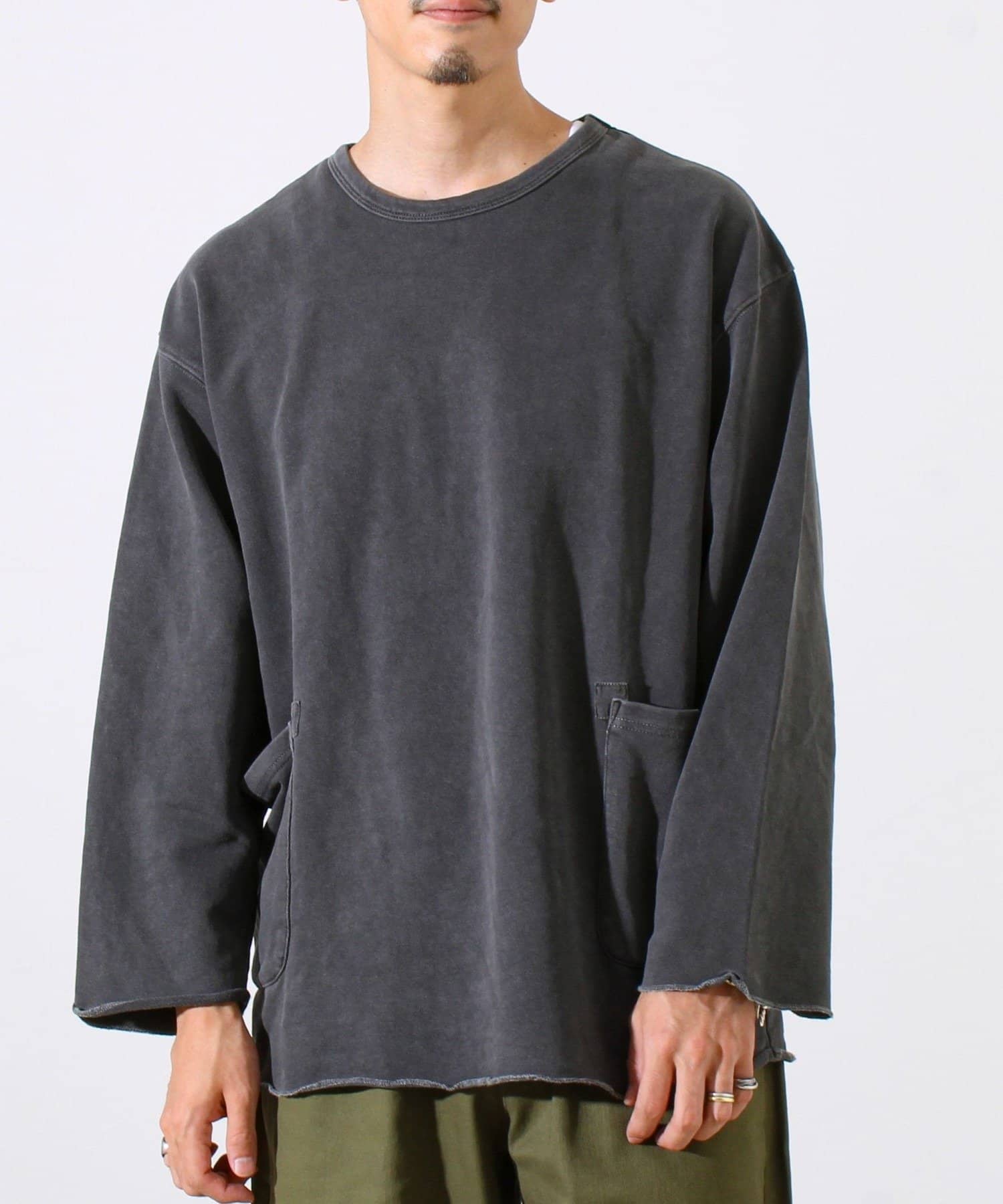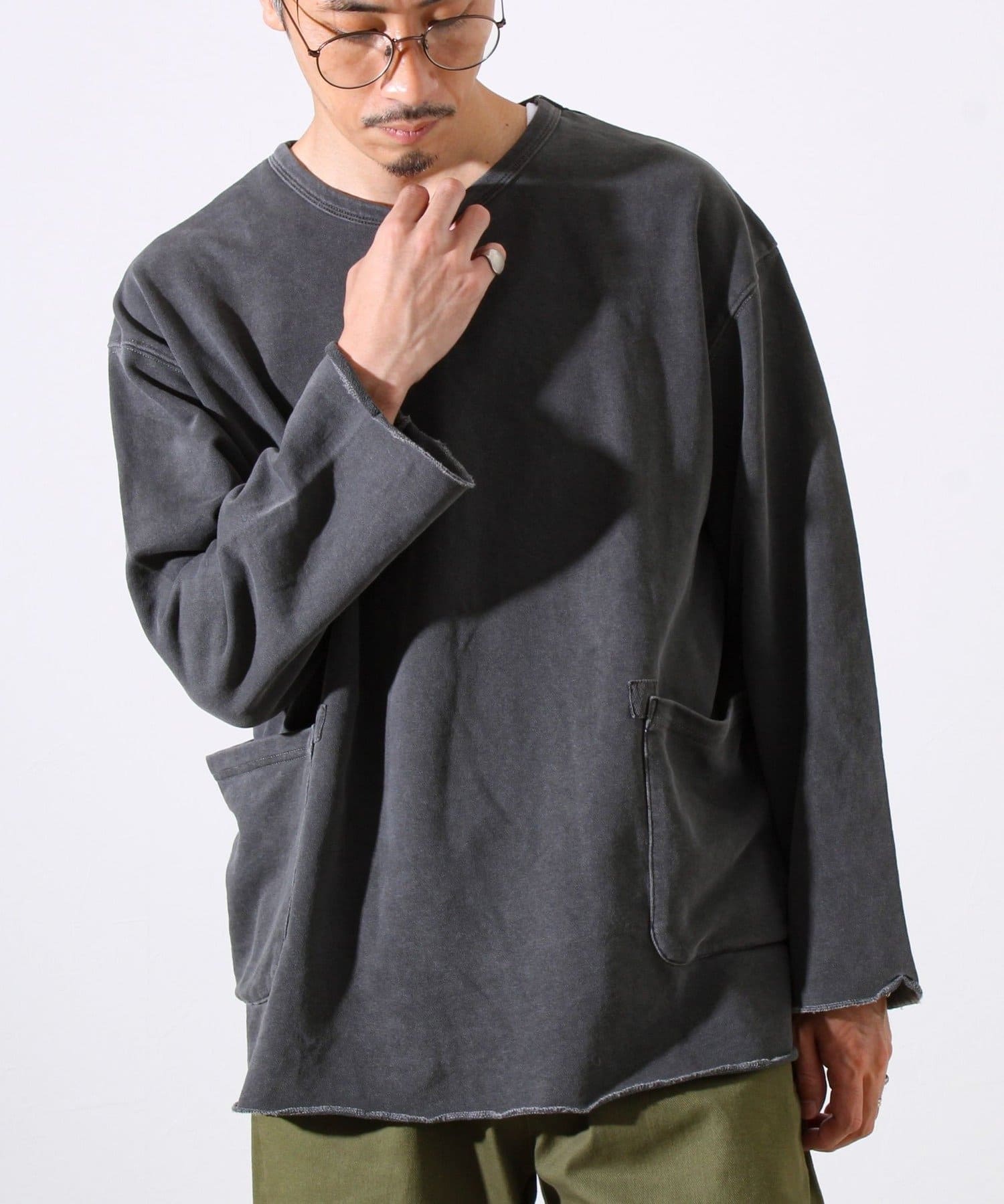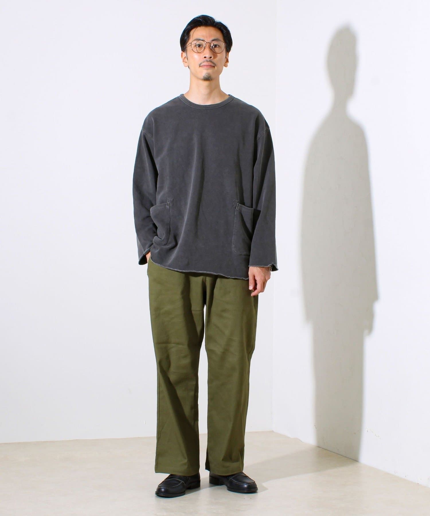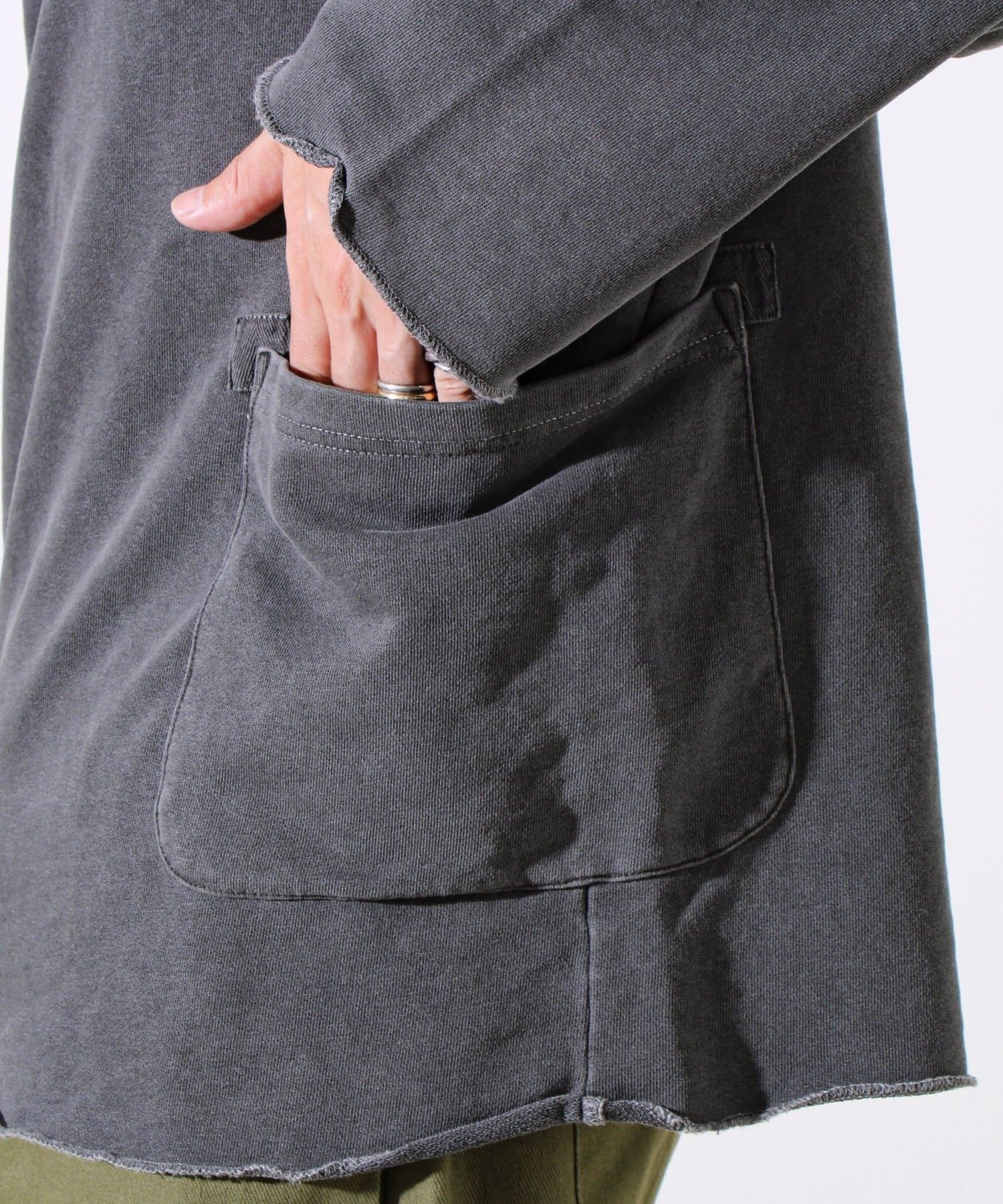 ・【無造作感が映える“カットオフ風仕上げ”】袖口と裾は、あえてラフな断ち切り風に仕上げ、着るだけでこなれた雰囲気に。シンプルながらもひとクセあるアクセントが、普段着に差をつけます。