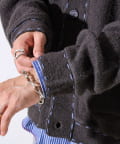 起毛感のある素材に太番手のハンドステッチを効かせた存在感。