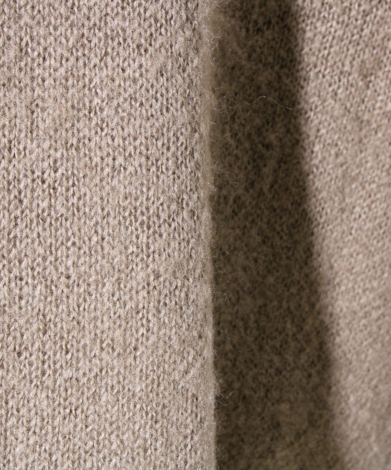 ・起毛感のあるニット地に、ハンドステッチ風の太番手糸を効かせたデザインが魅力