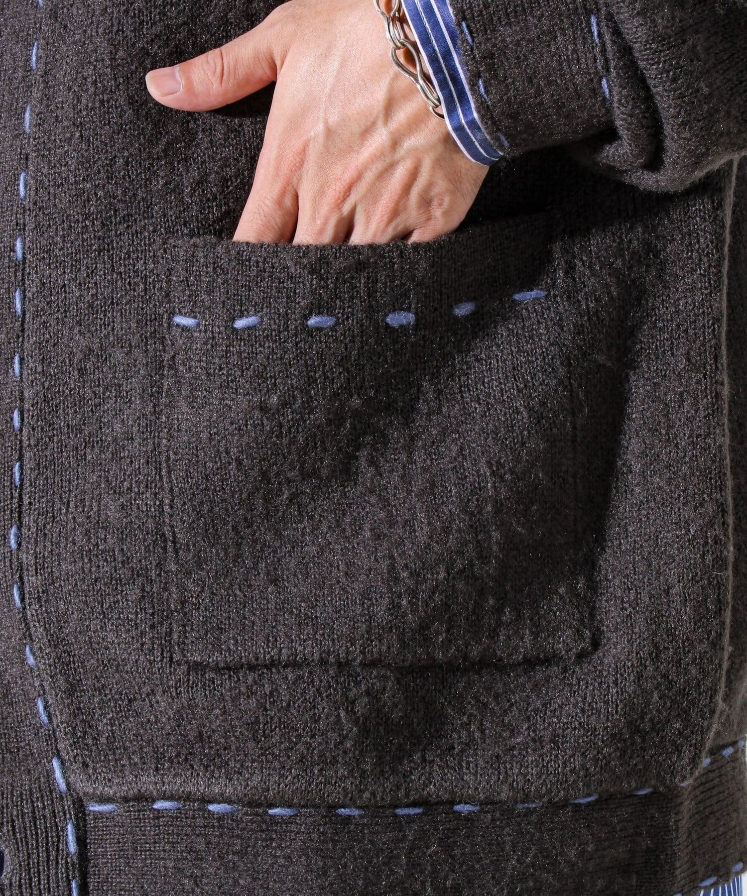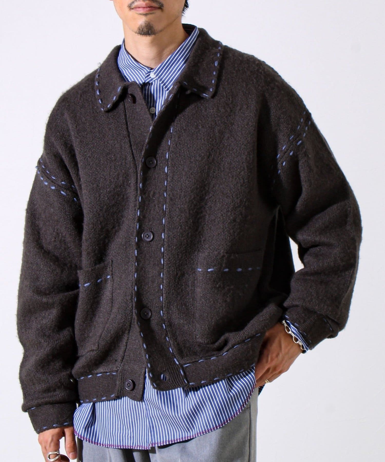 #ユニセックス #ハンドステッチ #ニットジャケット #大人カジュアル #リラックスシルエット #秋冬コーデ #ニットアウター #着回し力抜群