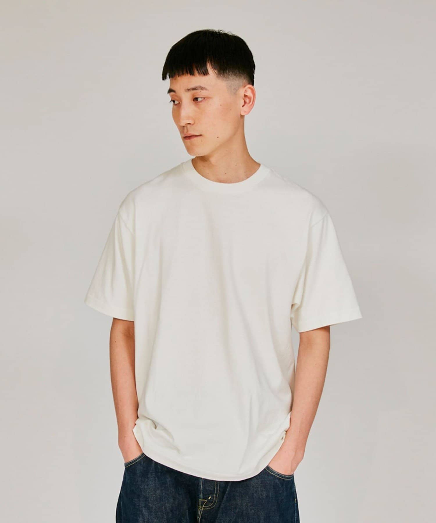生地は3P-T(3枚入りパックTシャツ)赤ラベルで使用している糸を双糸にして編み立てた、厚みと柔らかさを兼ね備えた7.0オンス。