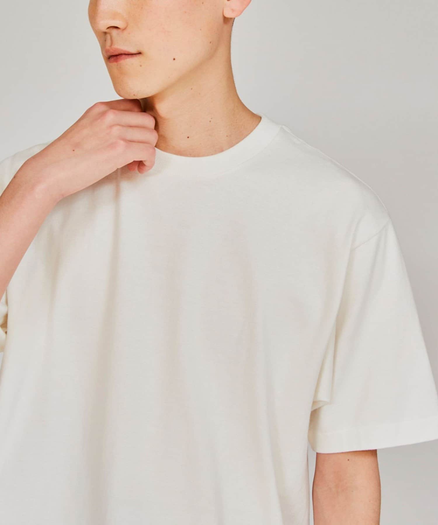 特徴的なラウンド形状のクルーネック。身幅と袖幅にゆとりを持たせたアメリカンスタイルのシルエット。