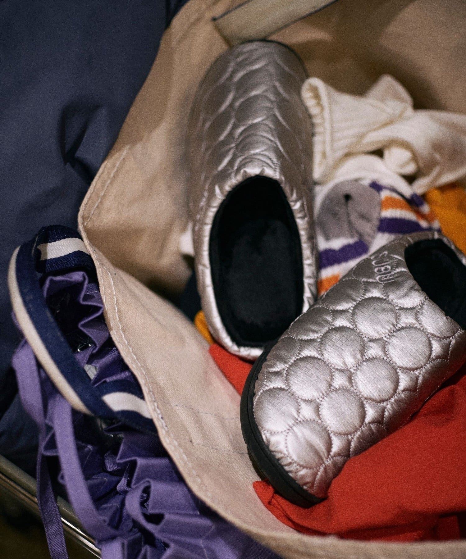 ・ダウンのような暖かさで素足をつつみ込み、起毛加工の内側の生地と4層構造のインソールが足全体に抜群のフィット感を生み出し、優しい履き心地をつくりだします