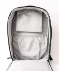 16インチのラップトップが収納できる止水ジッパー付きのPC用コンパートメントと、メインコンパートメント、小物用ポケットも豊富なフロントコンパートメントの3層式。