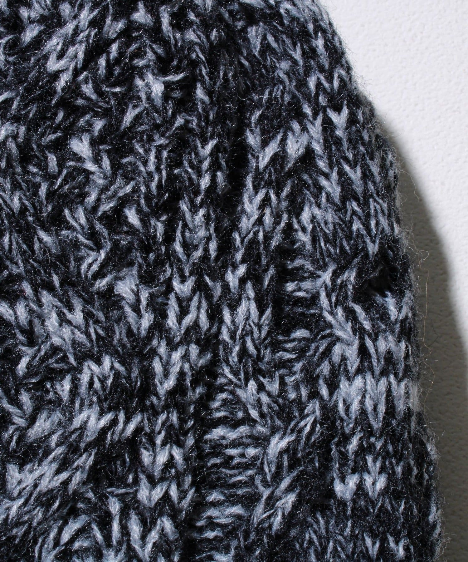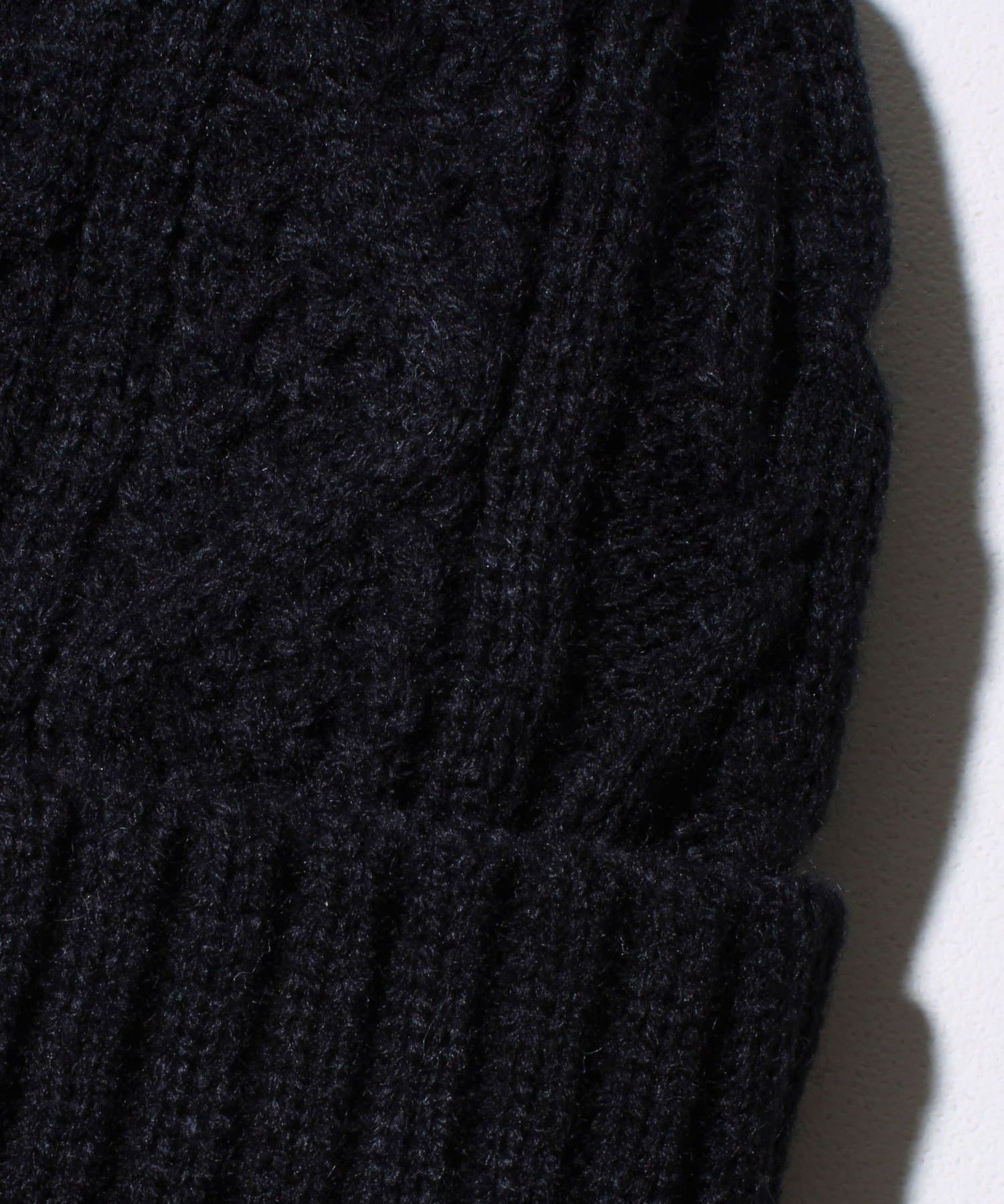 立体感のあるケーブル柄がシンプルな着こなしにアクセントを加え、スタイリングの完成度を高めます。