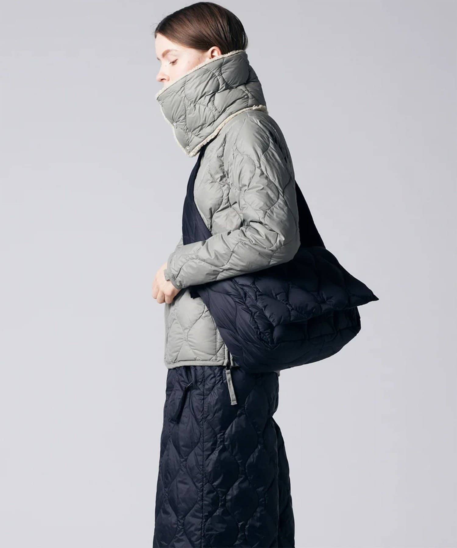 (A4サイズ、普段使いしやすいサイズ) 高密度ナイロン生地に、800FPの上質ダウンを使用しヘチマキルトで仕上げ軽くて柔らかな質感を再現しました。