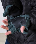 指先を出した状態とミトンの2WAY仕様で、掌にはグリップ力を高める滑り止め素材を使用。