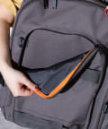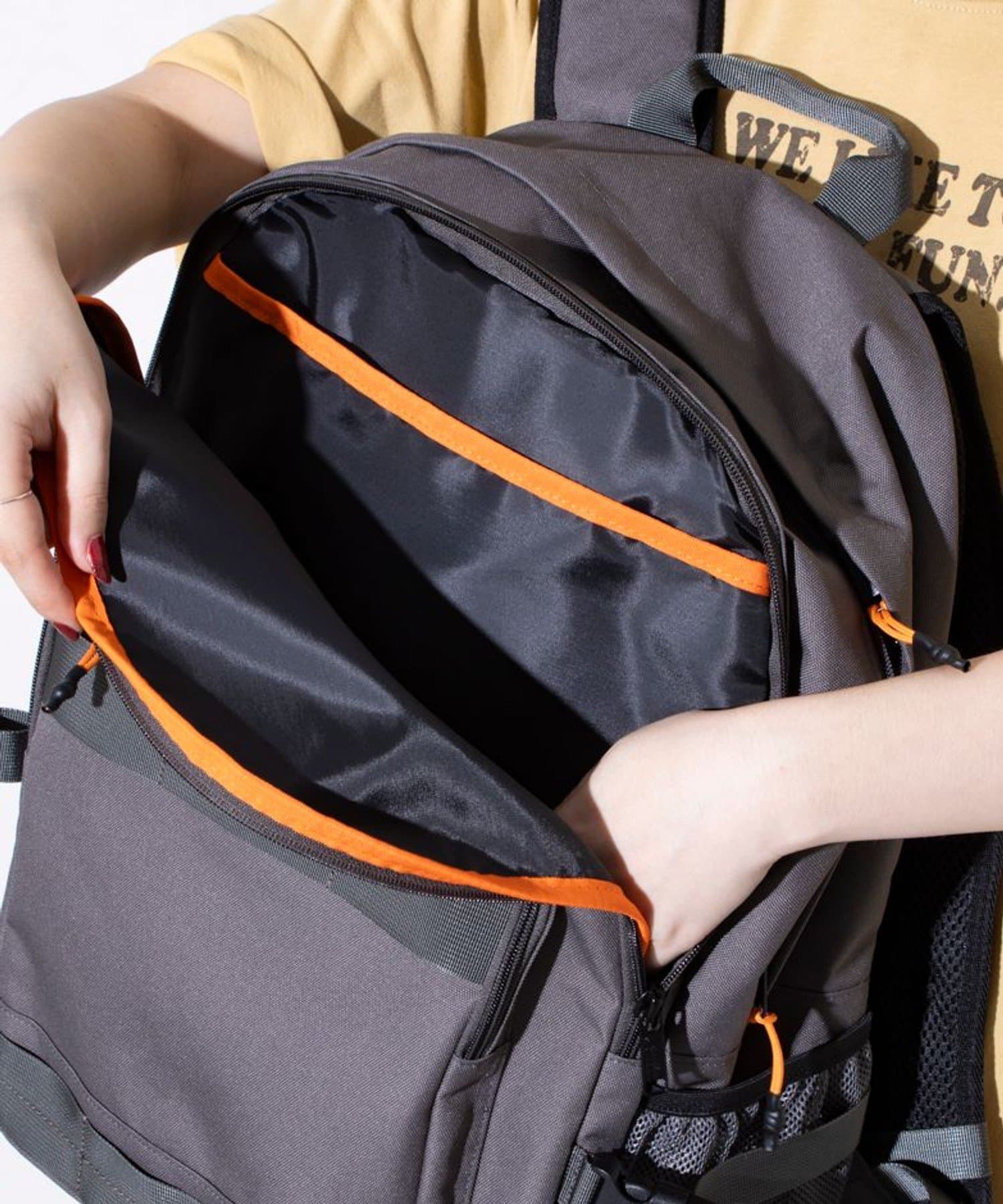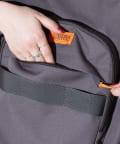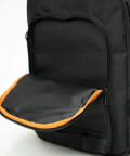 外側には豊富なポケットを配置し、特にフロントのジップポケットはオーガナイザー仕様で小物の整理に便利。底部のクッション材が荷物を衝撃から保護します。