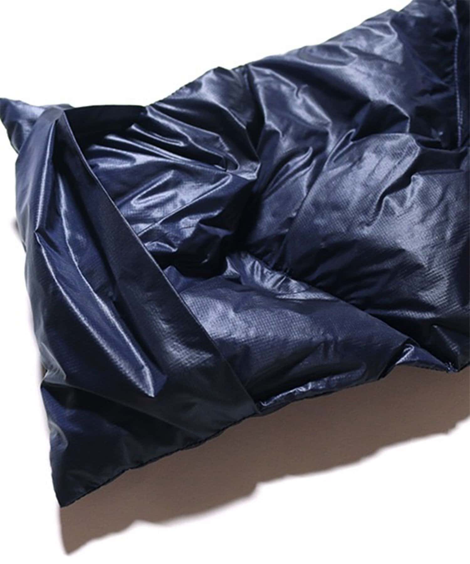 生地にはリサイクルナイロン、羽毛にはリサイクルダウンを使用したエコフレンドリーなアイテムです。