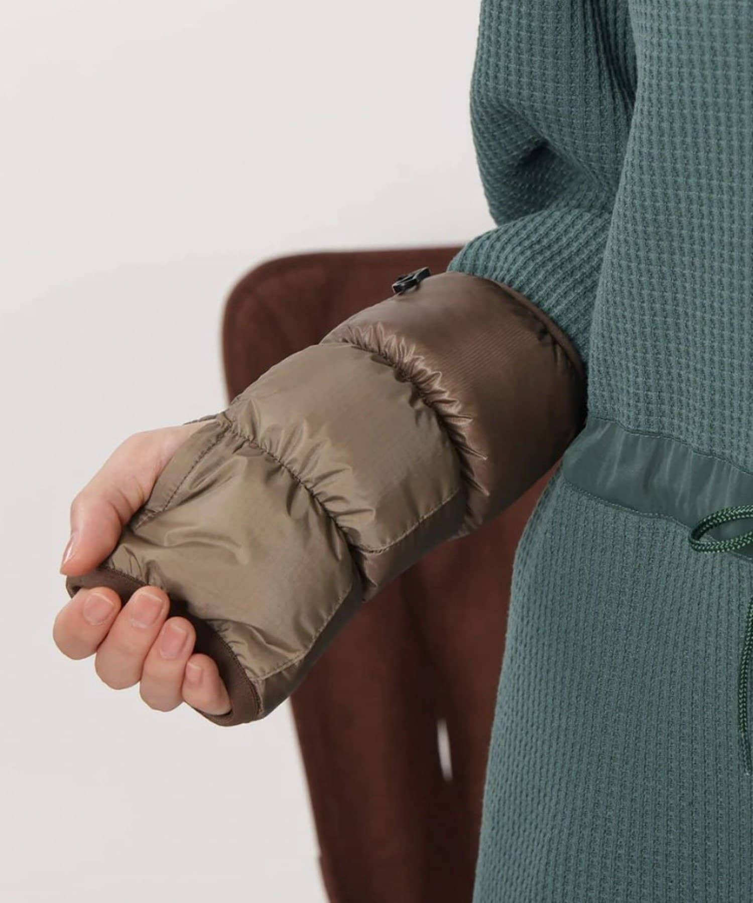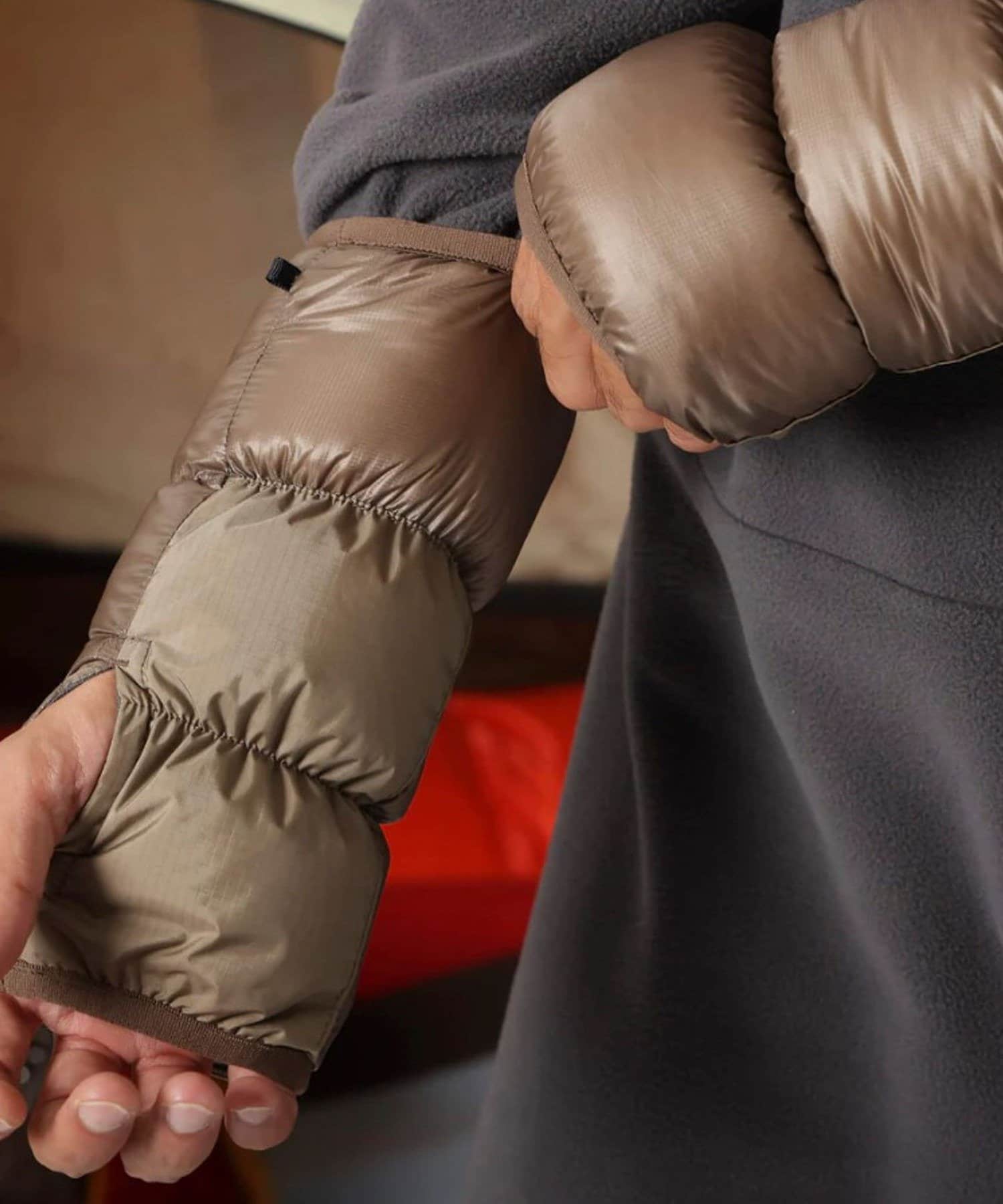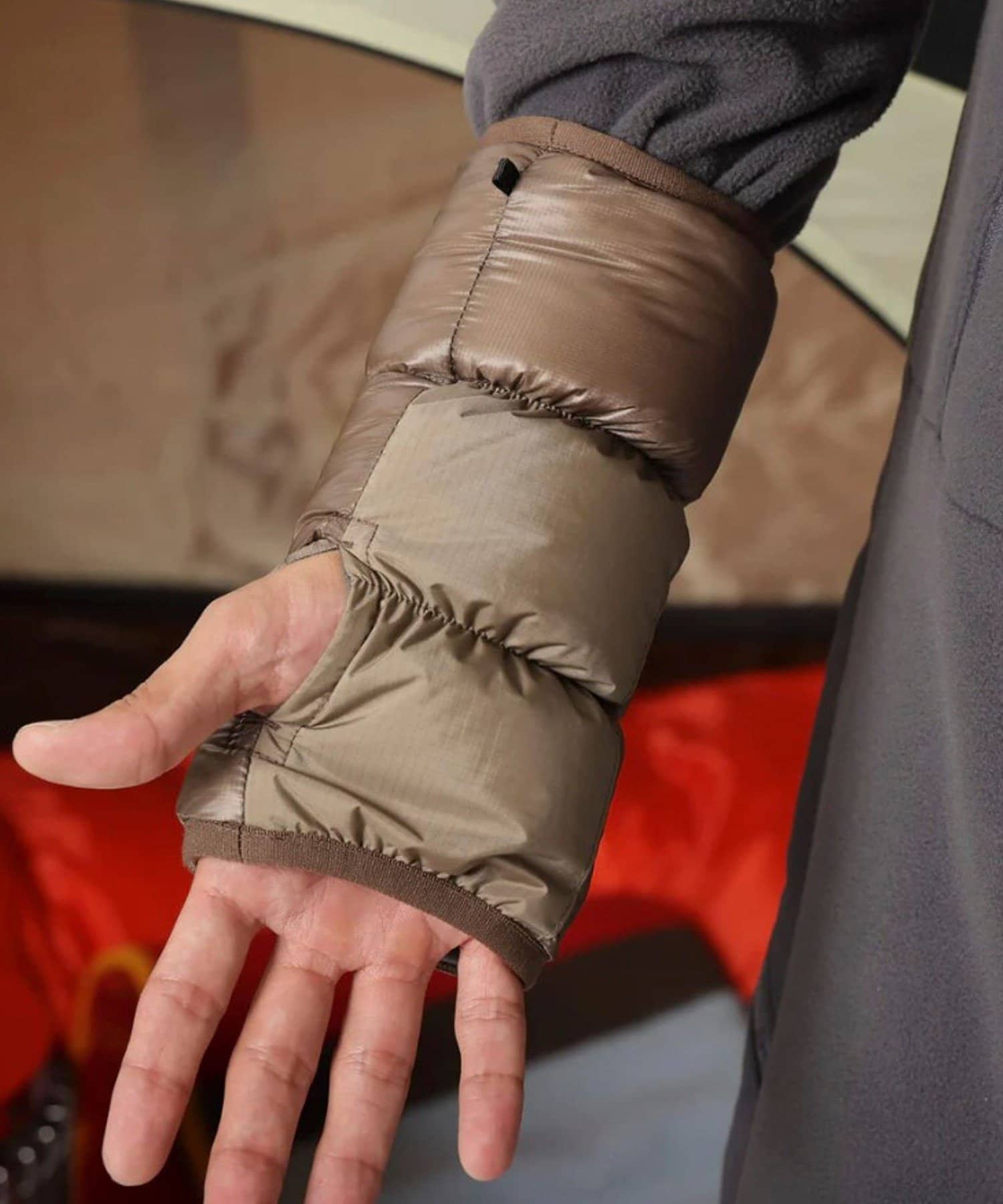 グースダウンを使用した軽量上質なリストゲイター。
