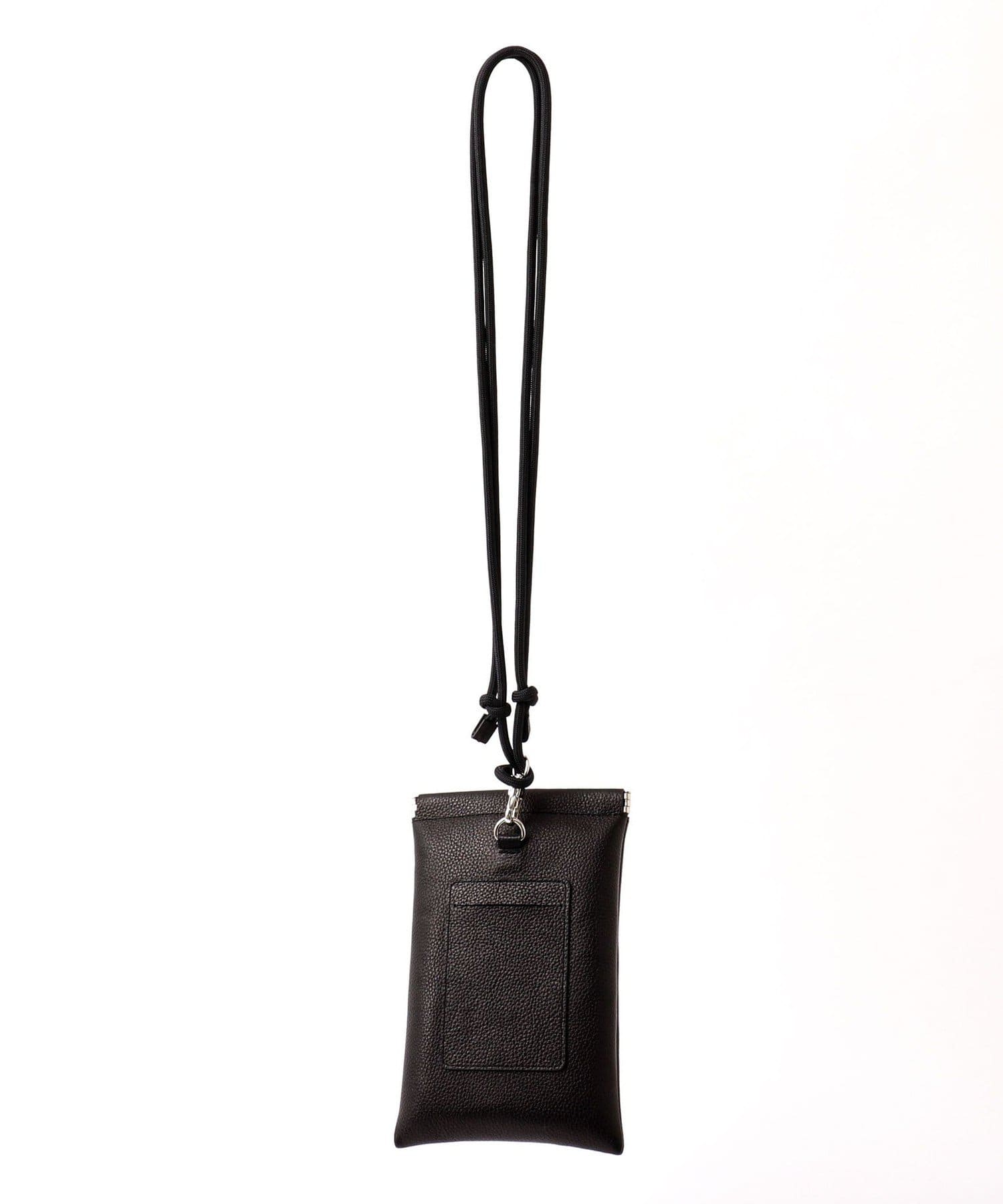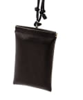 主に携帯電話を収納することを目的としたレザーポーチは、口部分にワンタッチ式の金具パーツを採用し、シューズでも使用する上質なイタリアンレザーを合わせました。