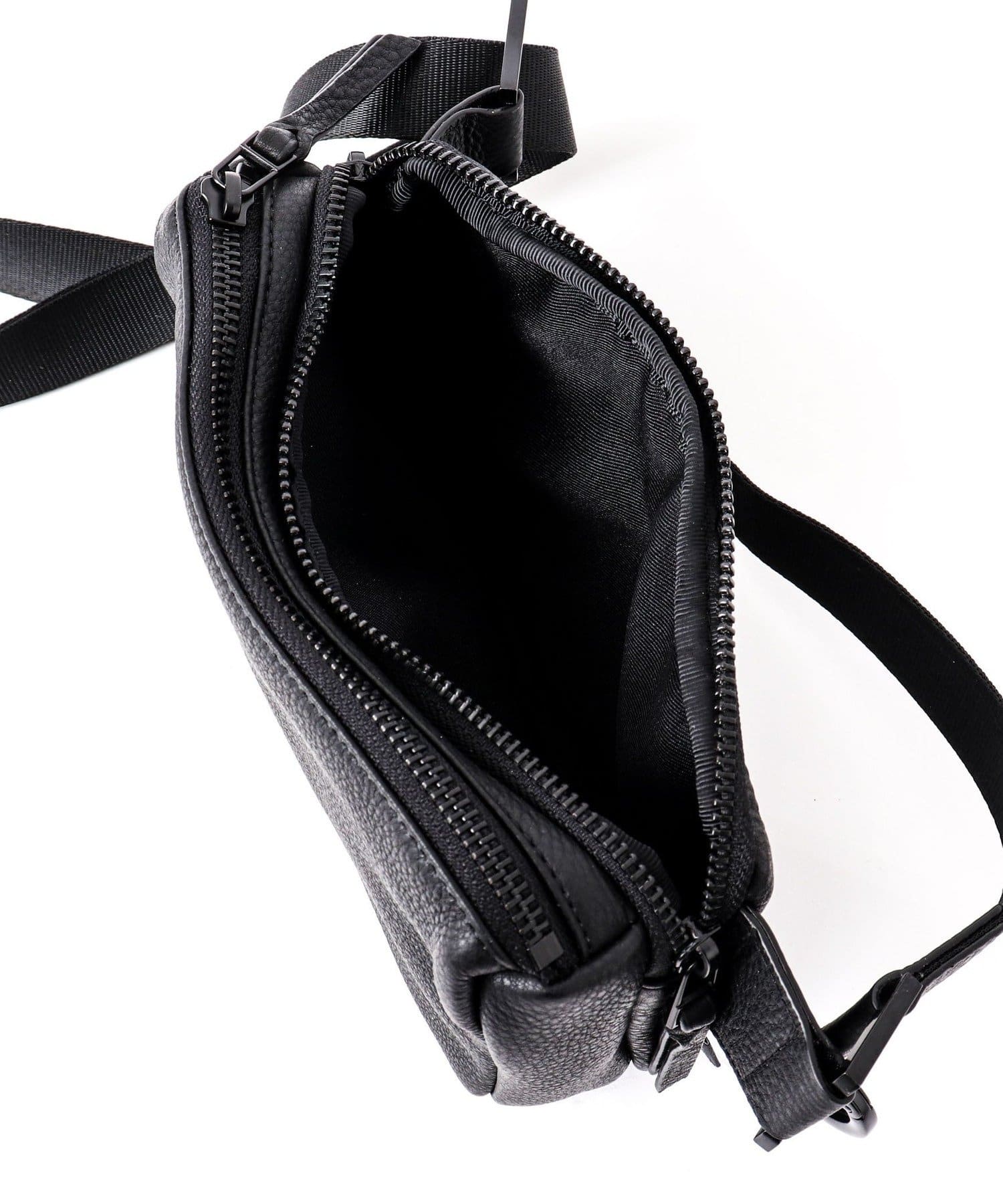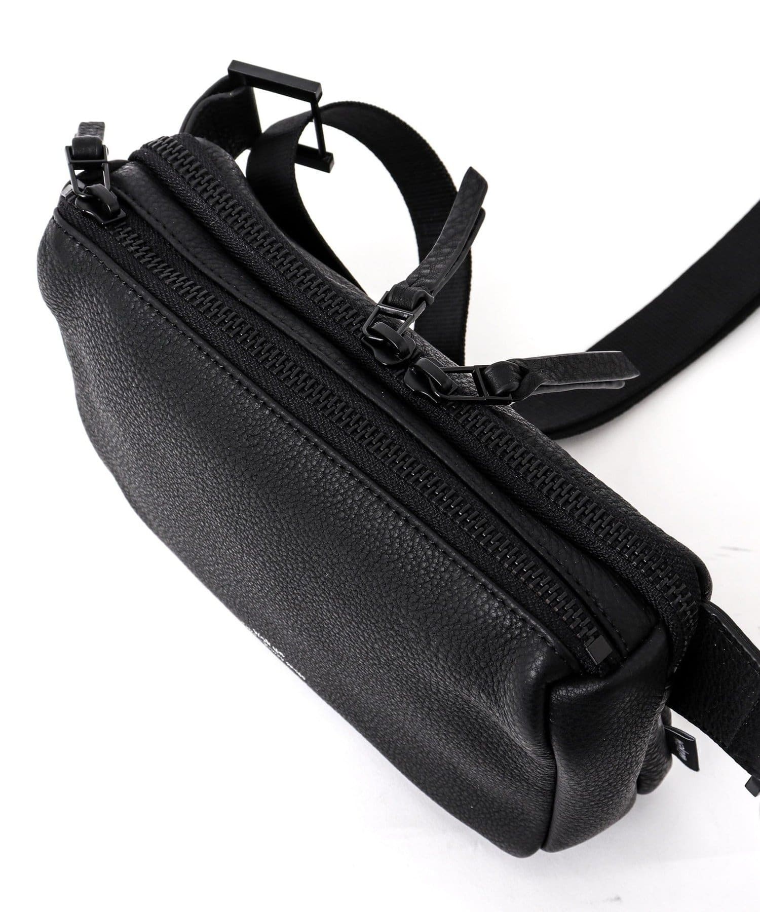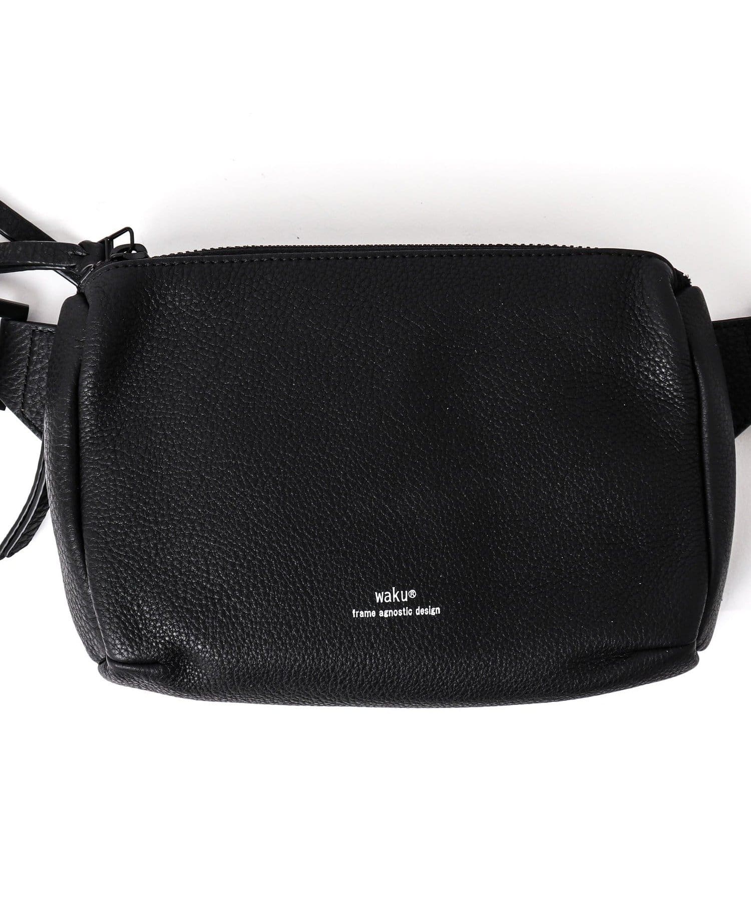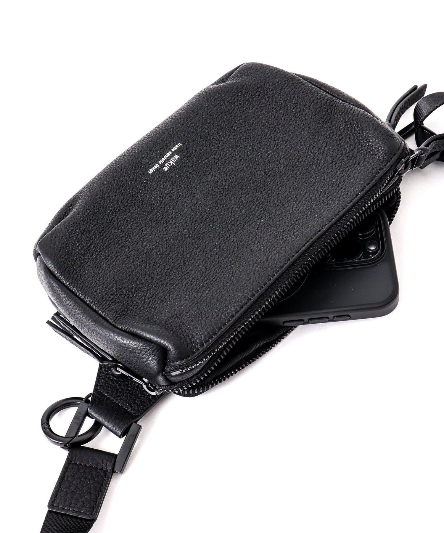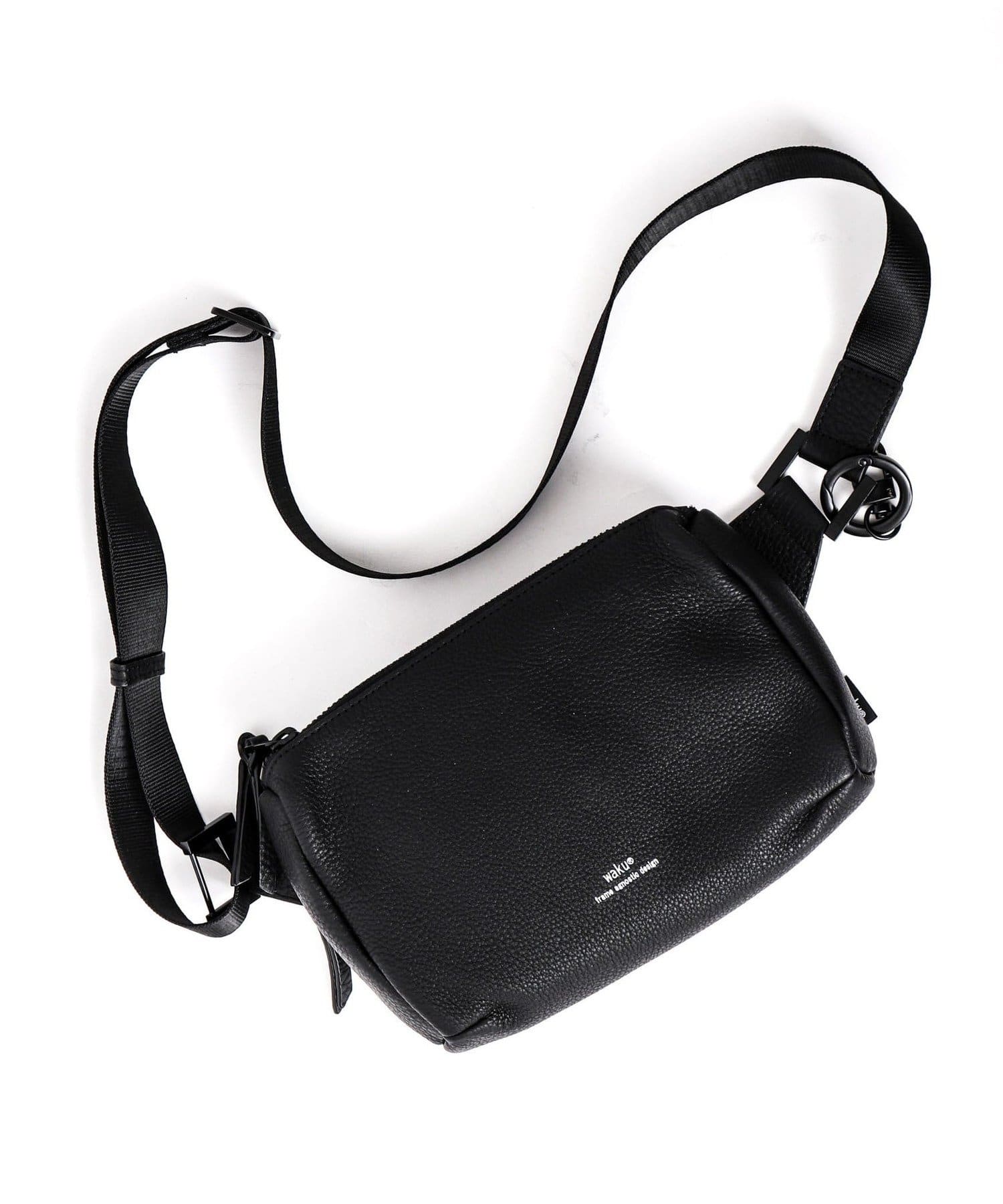 wakuの「KURO」シリーズから、ちょっとしたお出かけに最適な小さめなサイズ感。ダブルジップ仕様で仕分けも出来て機能面も充実。取り外し可能なキーリングが付属されています。