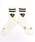 シンプルコーデに犬柄ソックスで遊び心をプラス。
