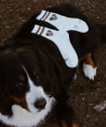 ・【DOGモチーフ】ワンポイントで愛嬌たっぷりの犬柄を配置。足元からユーモアを演出。