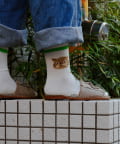 靴下ひとつで気分が変わる、コーディネートが変わる、そんなデザイナーが生まれ育った環境やフィーリングをデザインに落とし込んでいます。