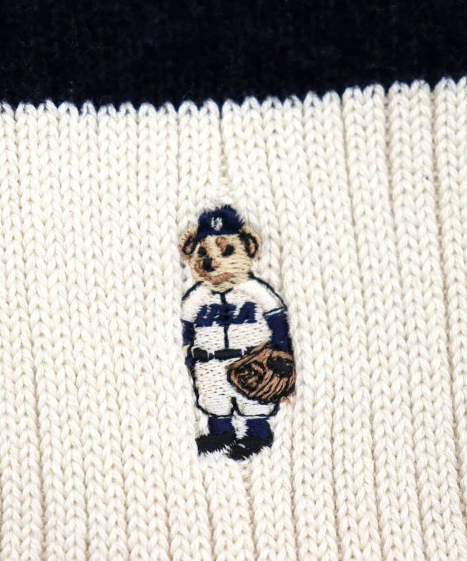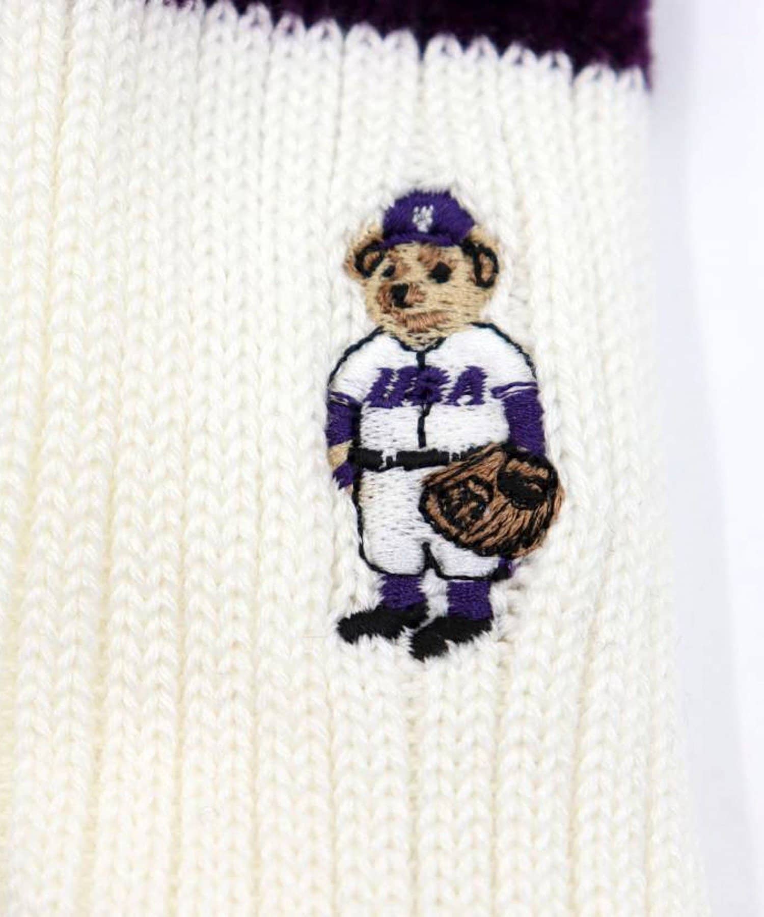 ・【刺繍デザイン】野球ユニフォーム姿のベアをワンポイントで刺繍。遊び心あるデザインで足元のアクセントに。