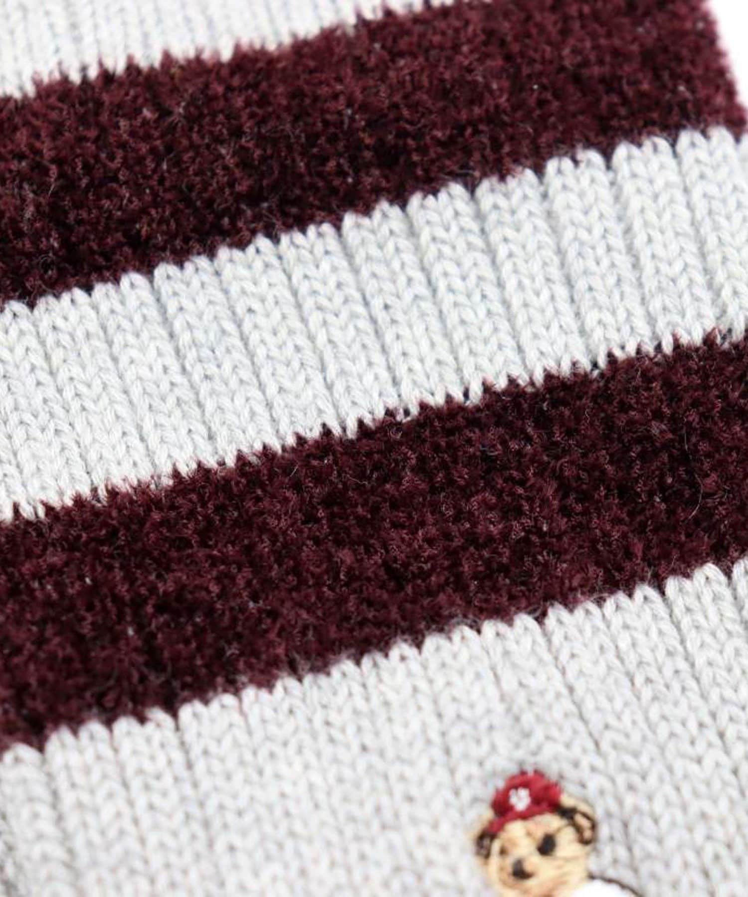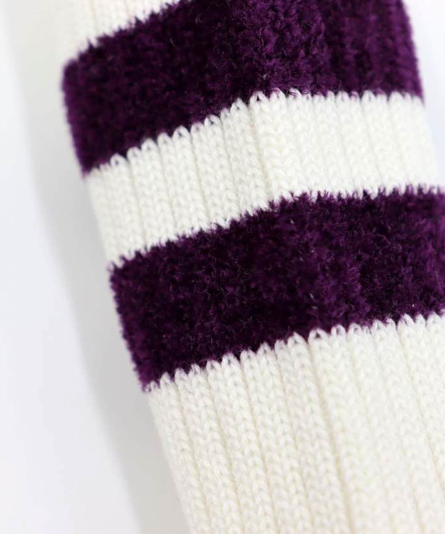 ・【カラーライン】リブ部分のボーダーはブークレー調の糸を使用し、立体感とやわらかな表情をプラス。
