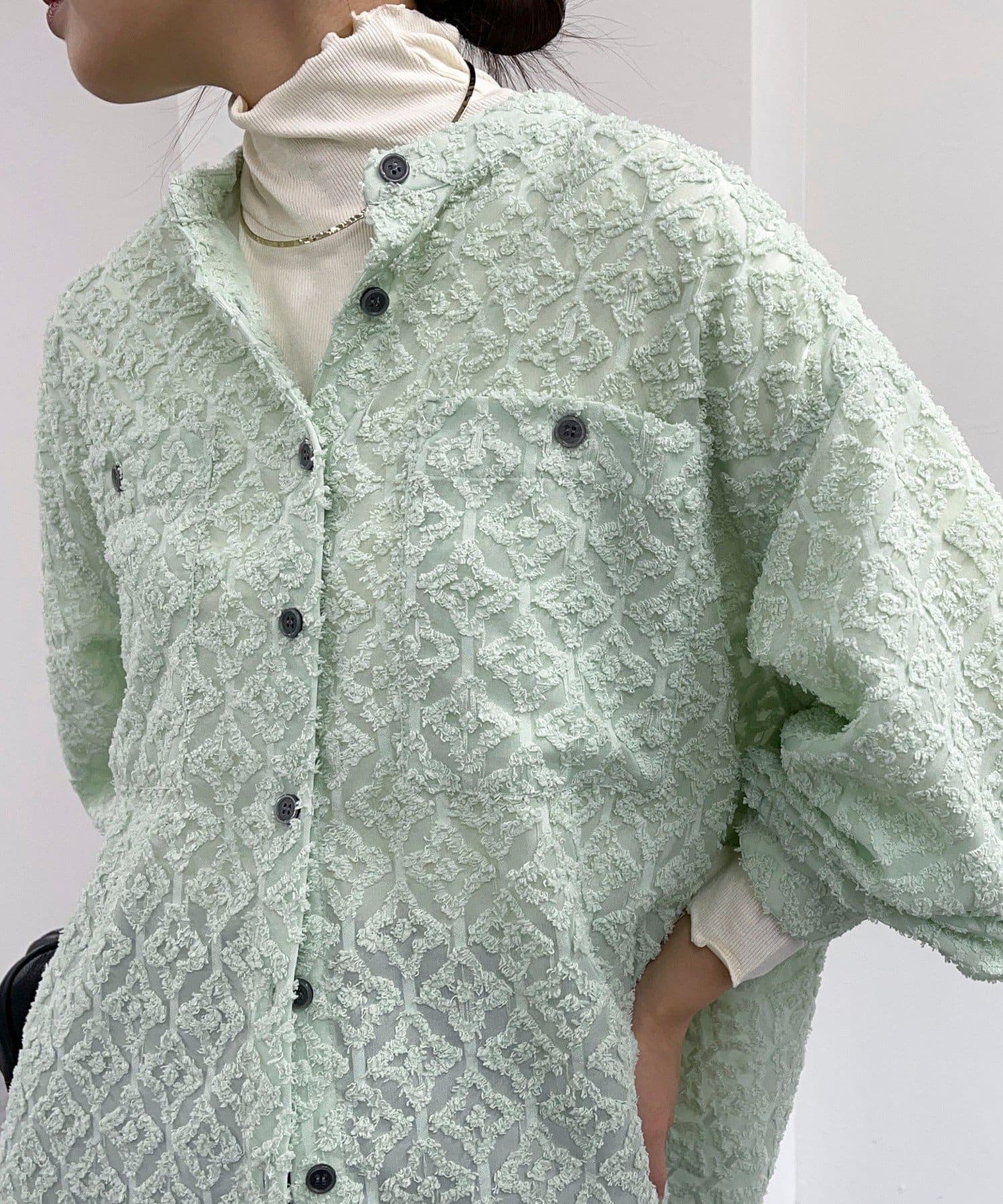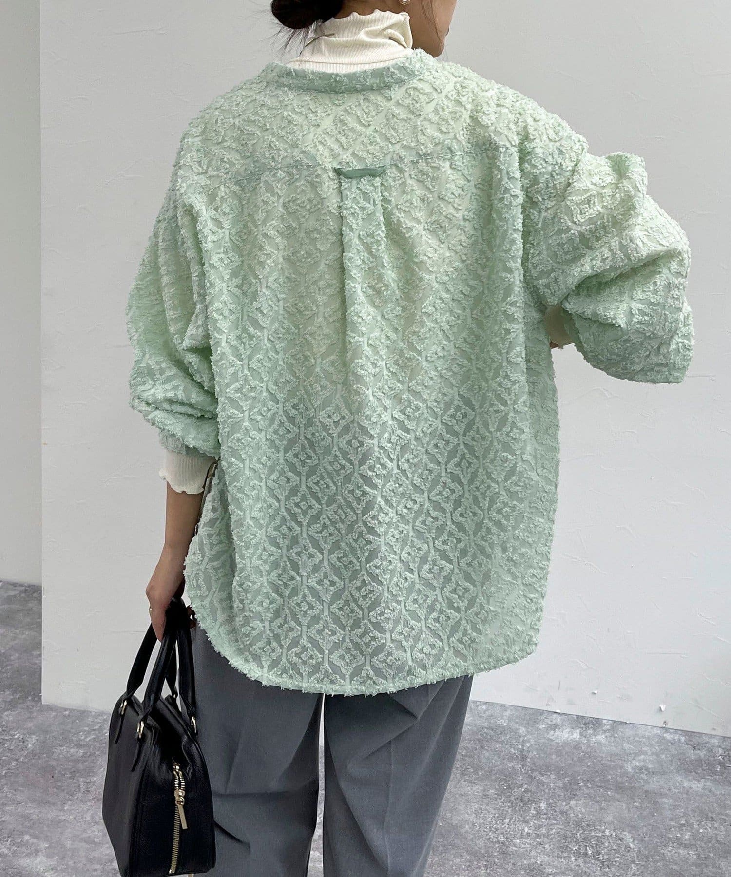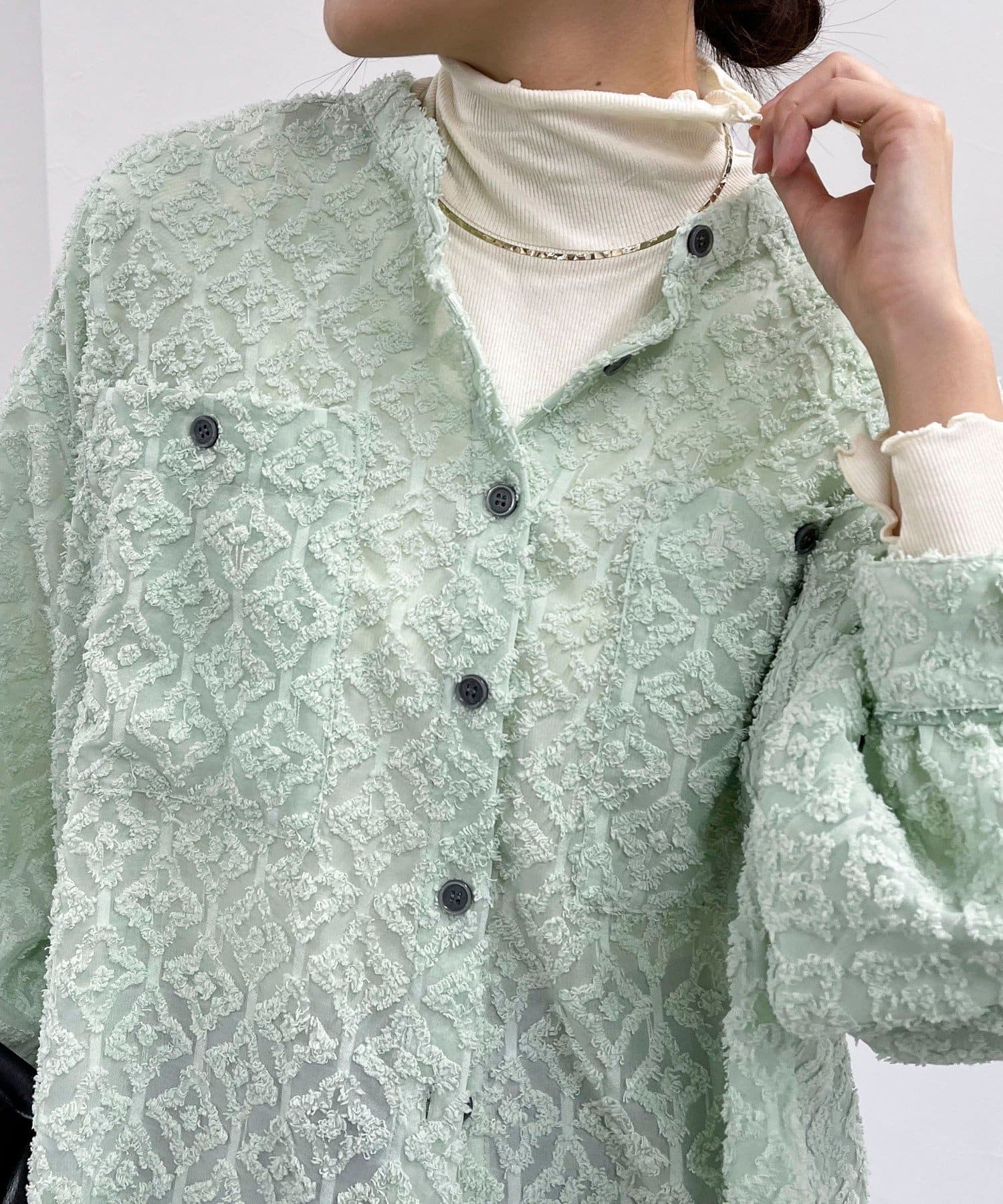 ・フリンジジャガードの表面が可愛い生地のシャツです