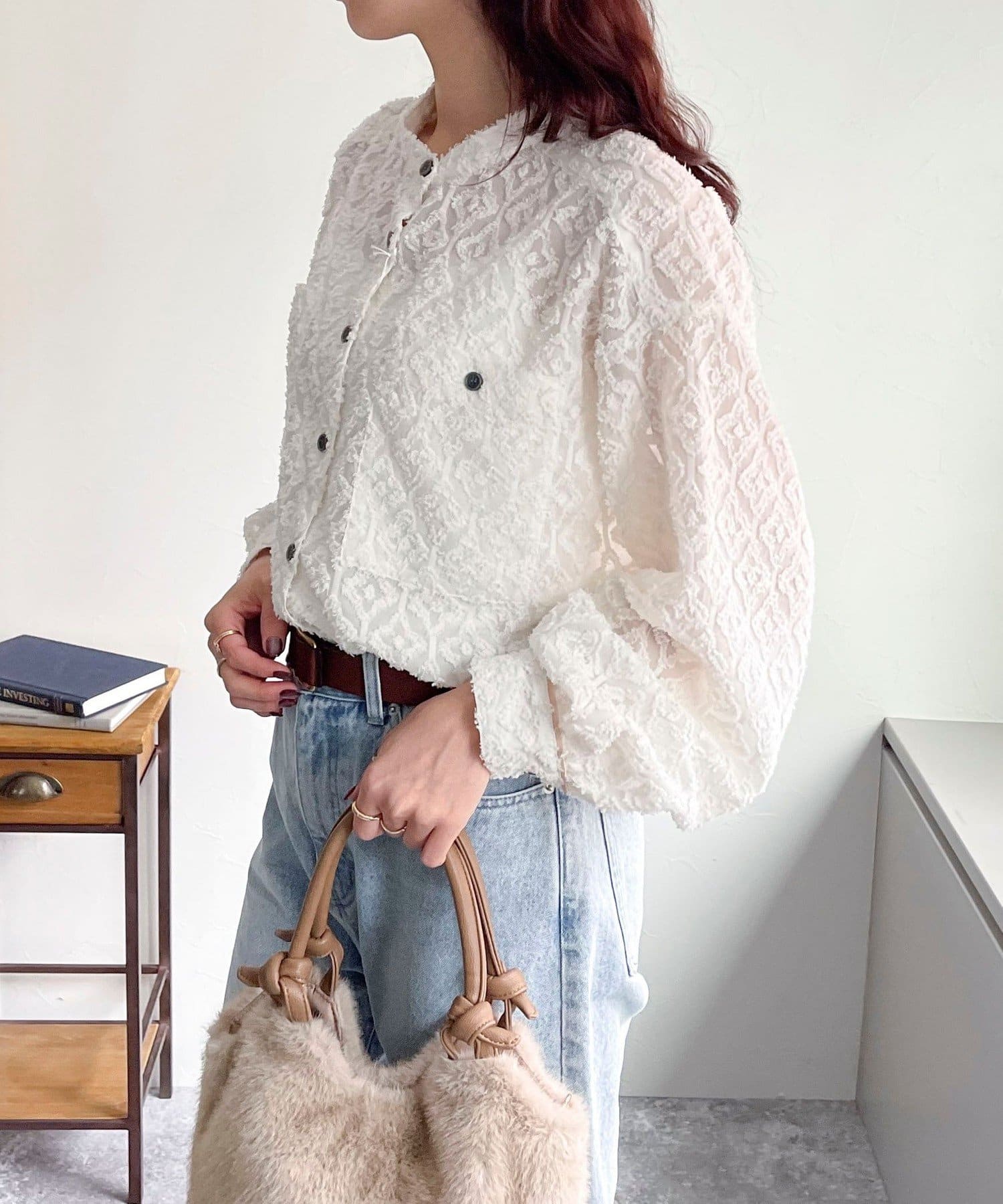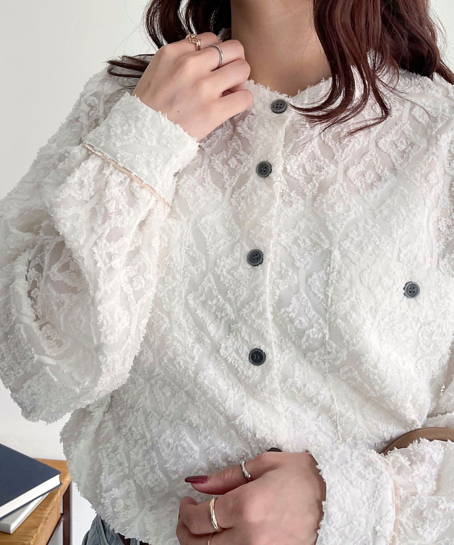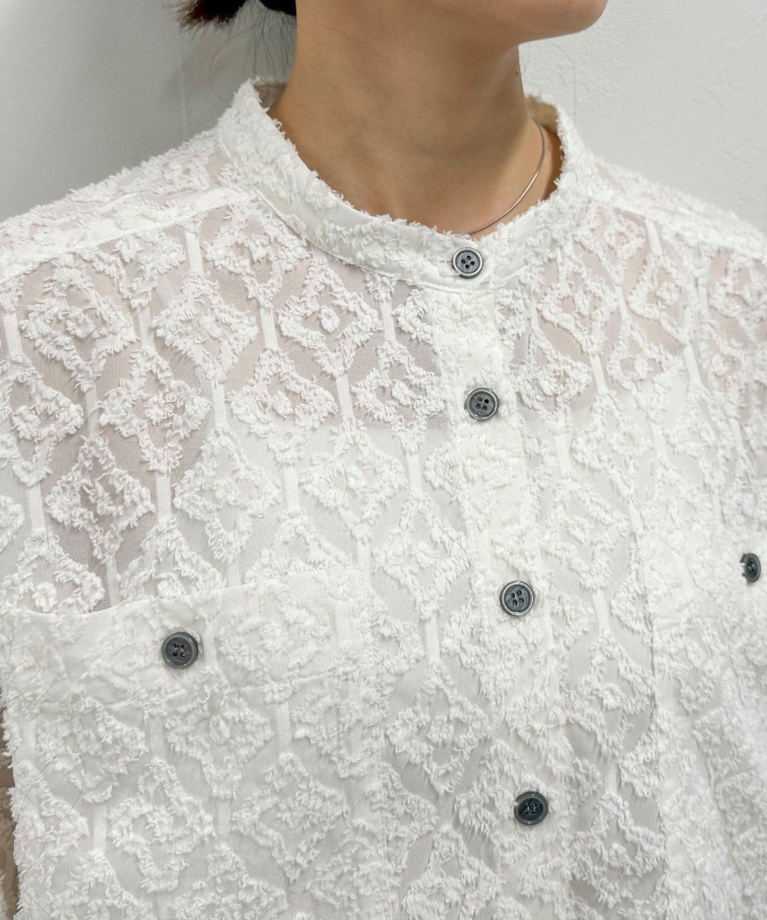 ・フリンジジャガードの表面が可愛い生地のシャツです