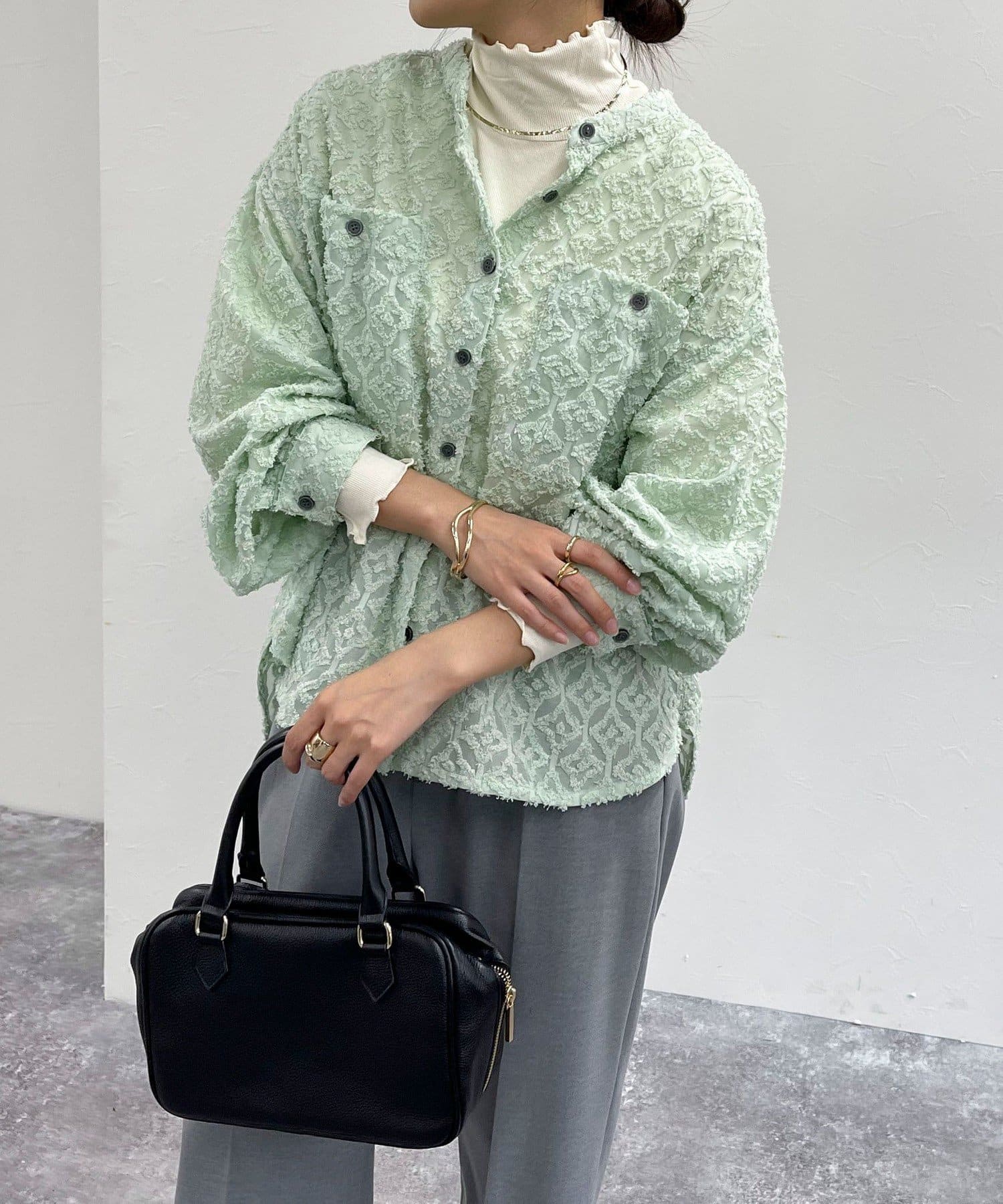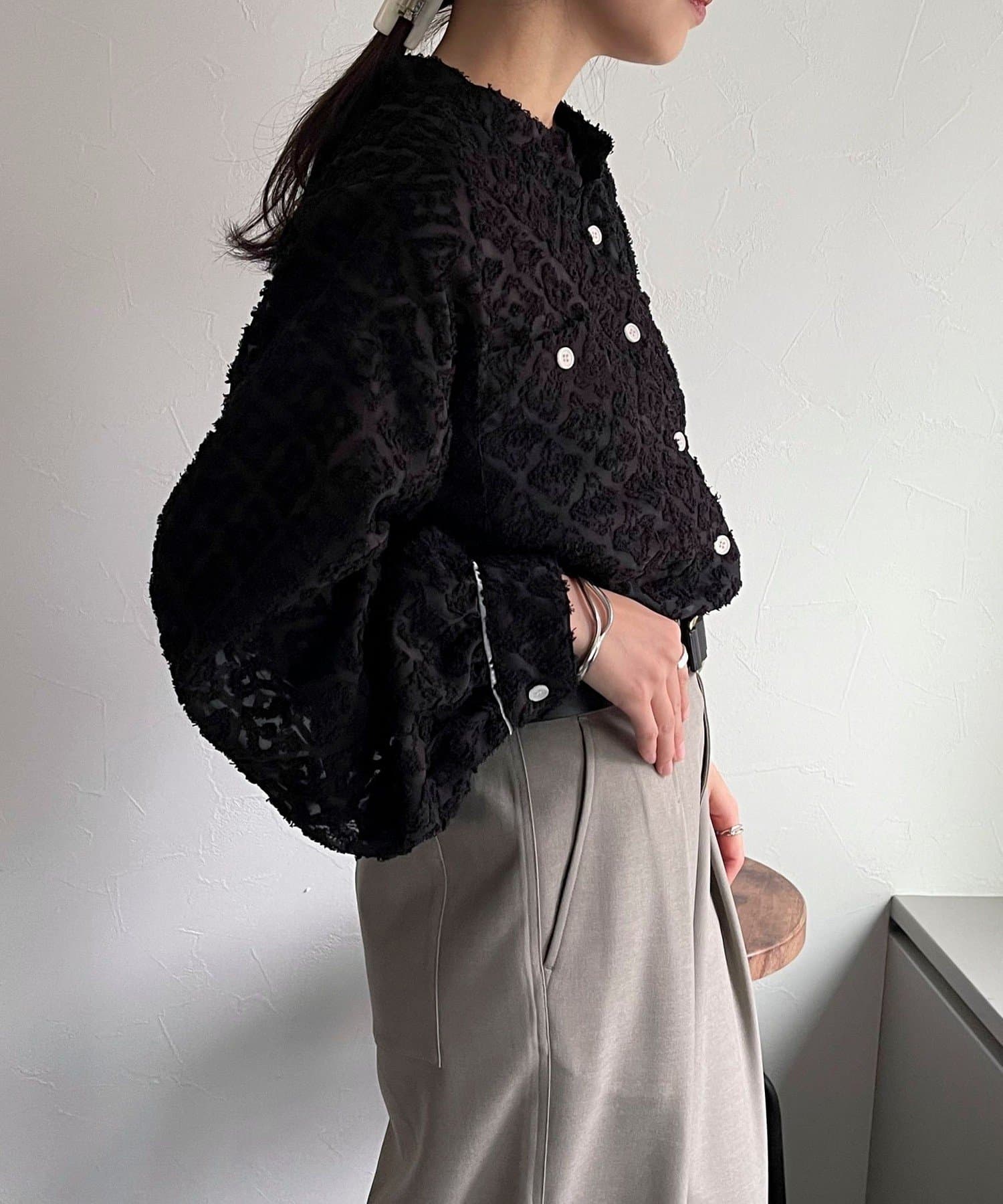 ・前を閉めてブラウスっぽく着ても映えるディティール◎