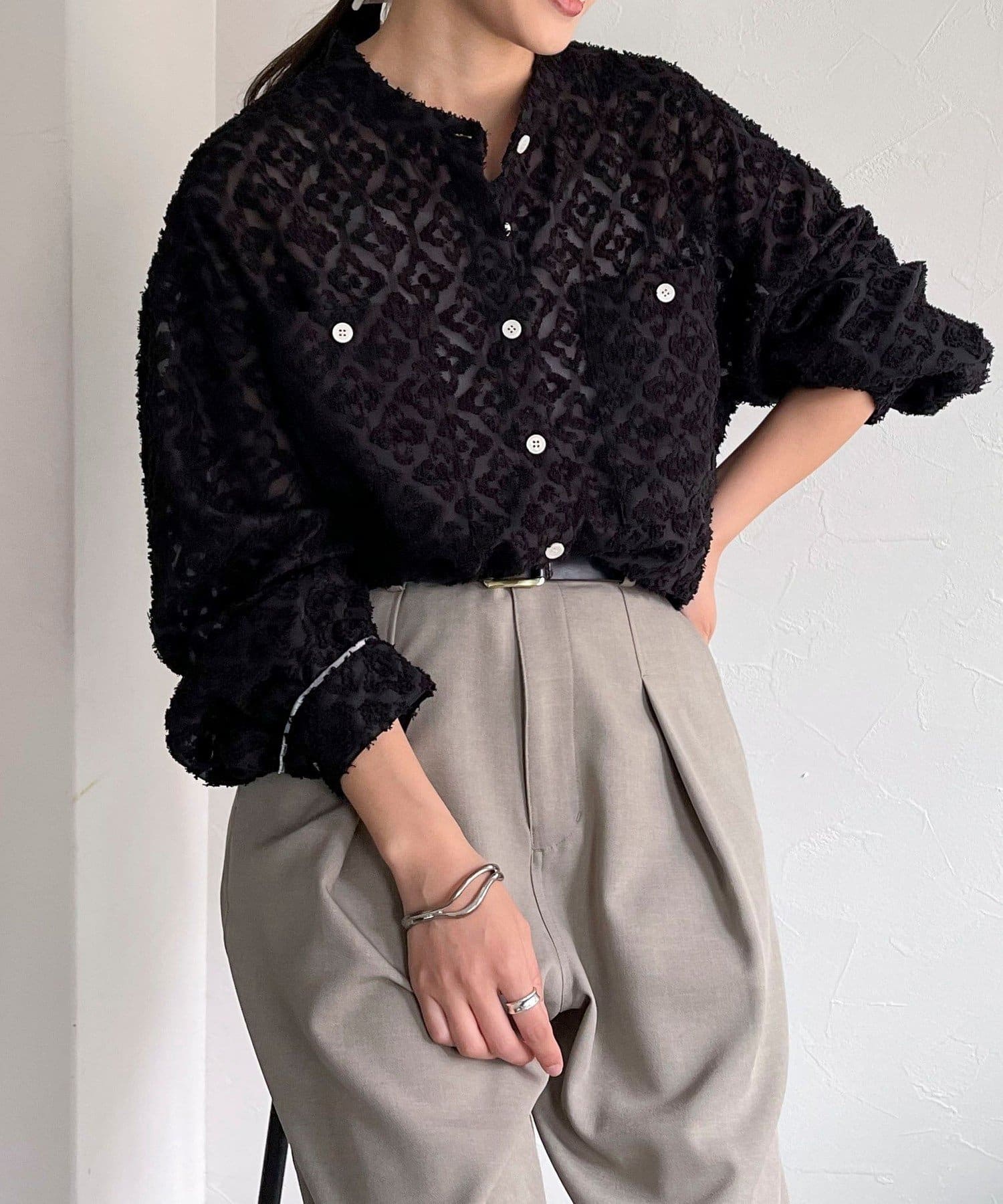 フリンジジャガードが華やかな着こなしを演出するシャツ