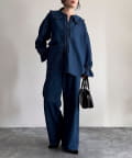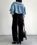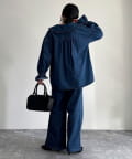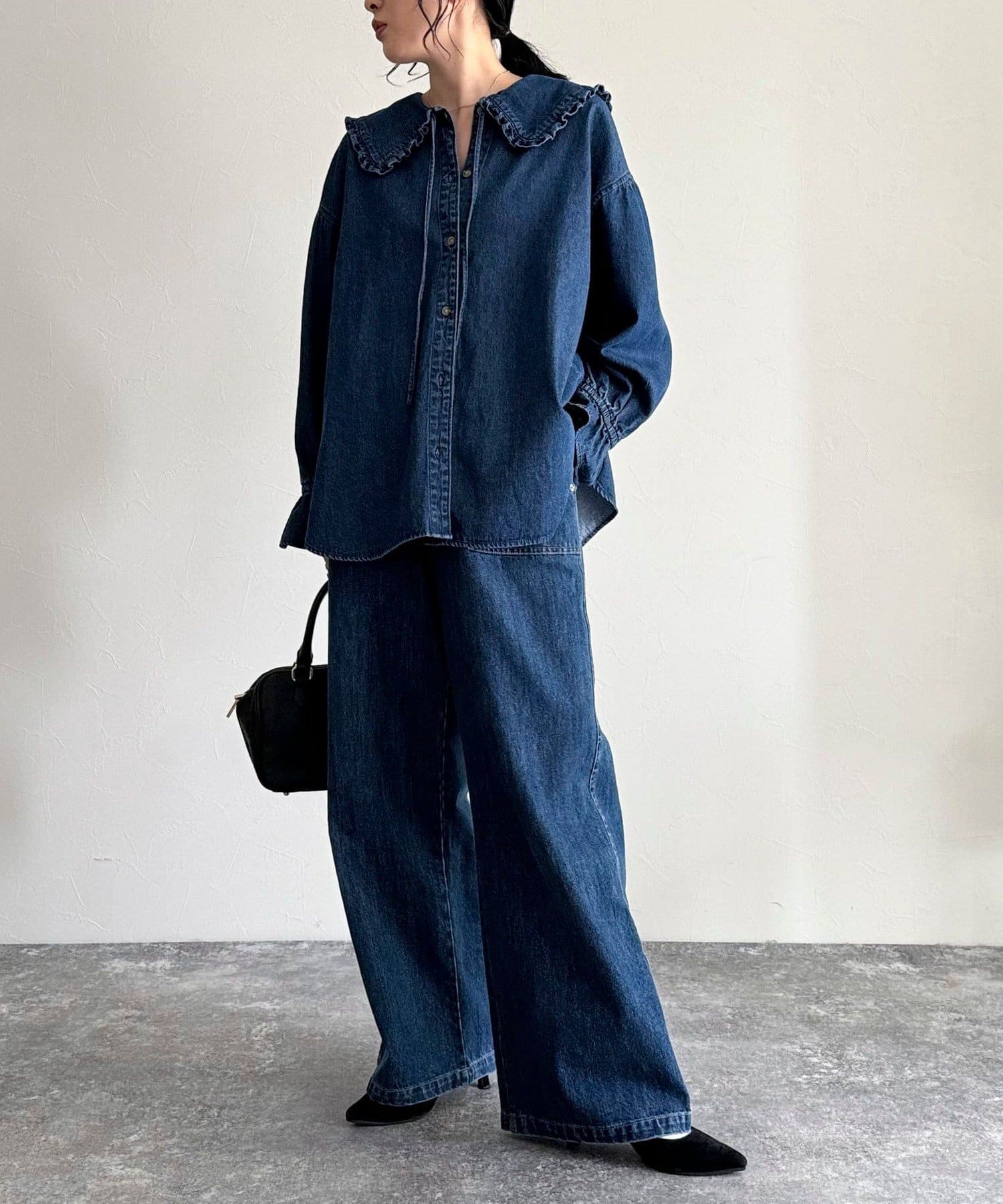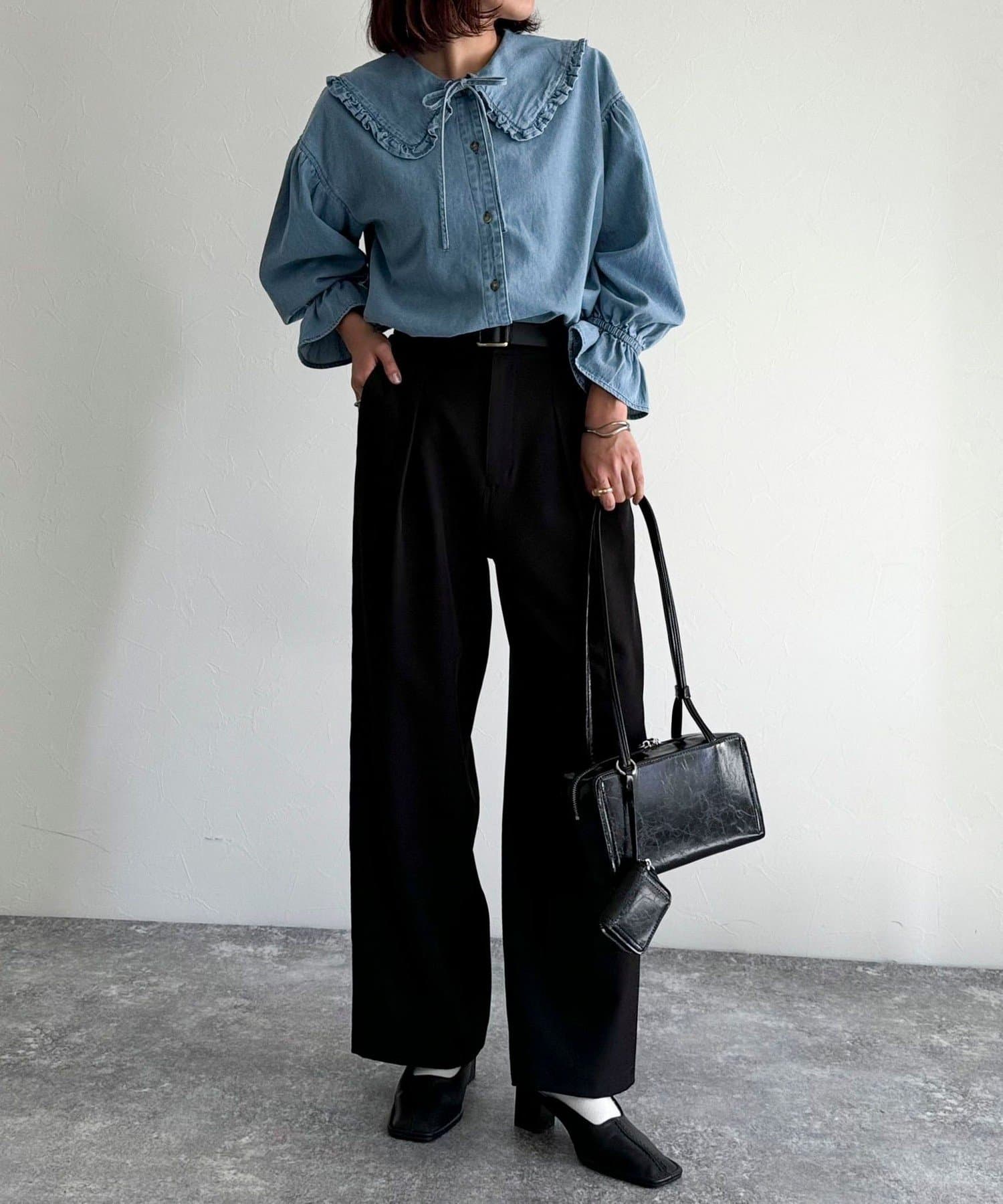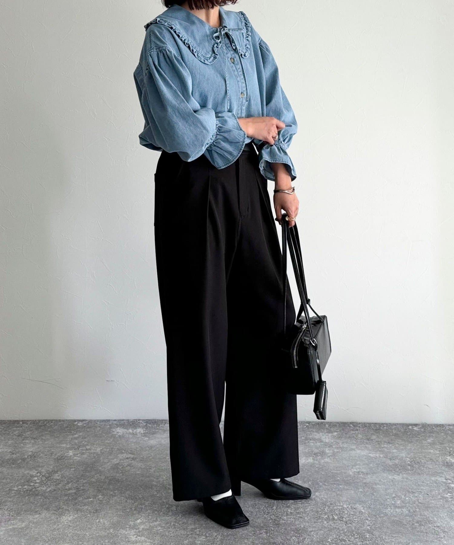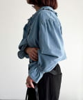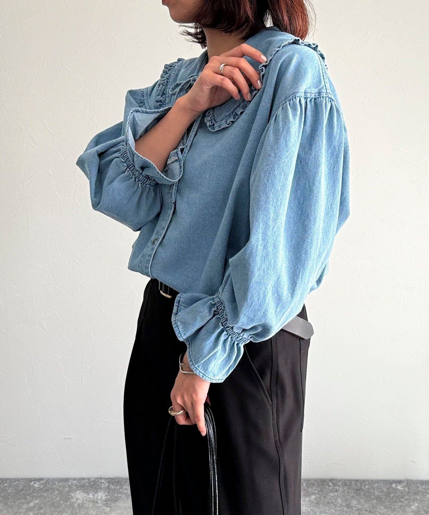 ・大き目のステンカラーがポイントのデニム素材のブラウスです