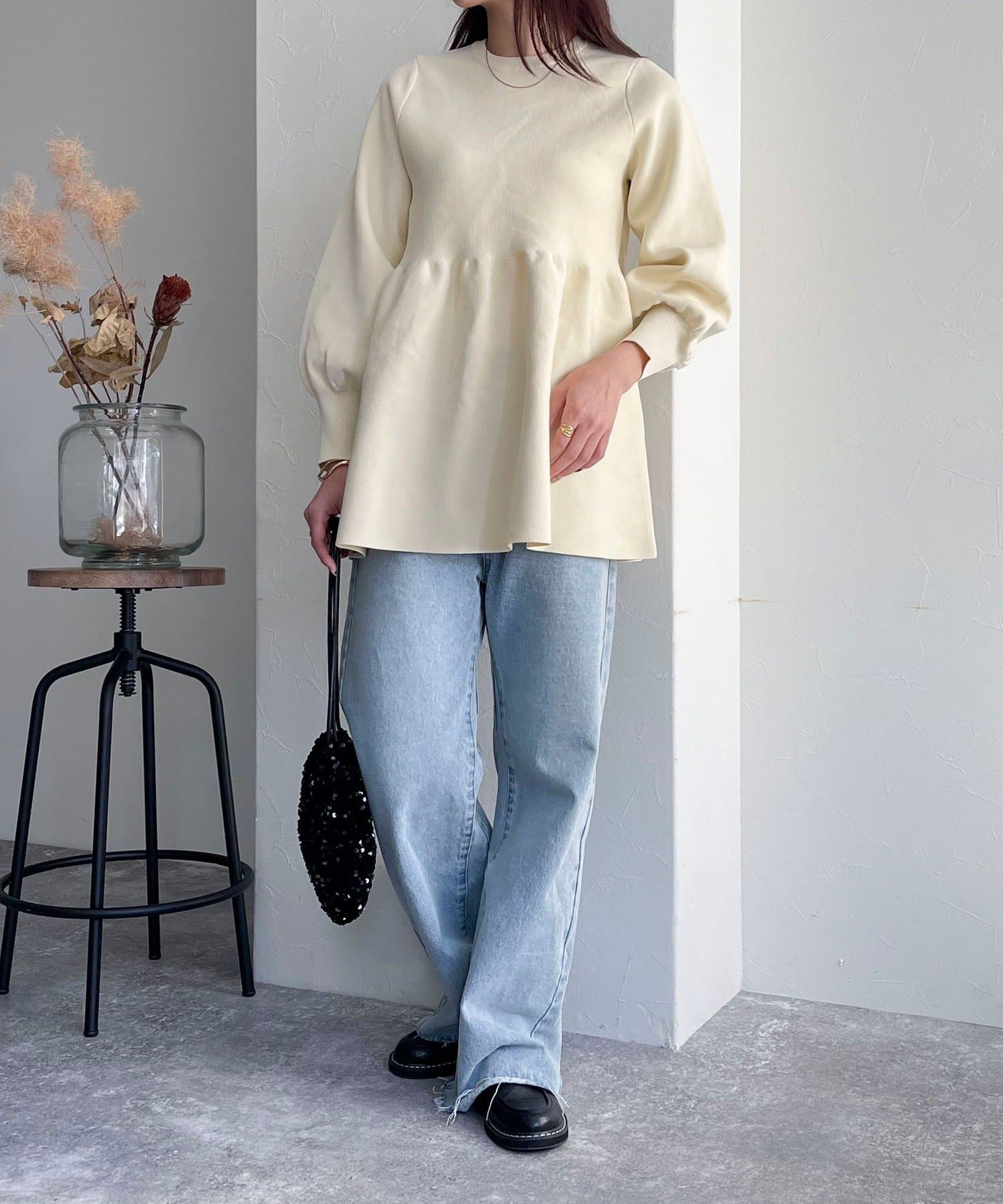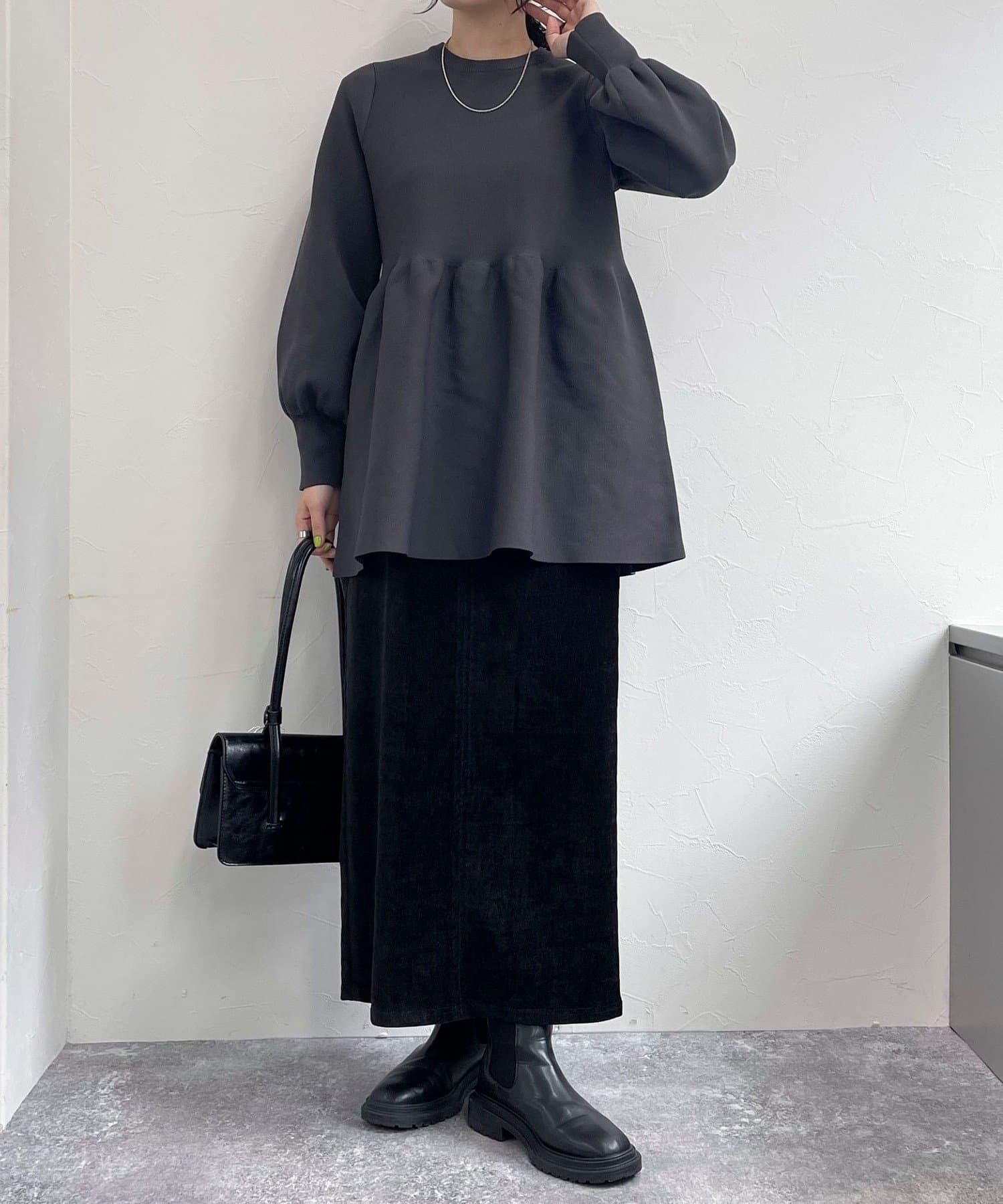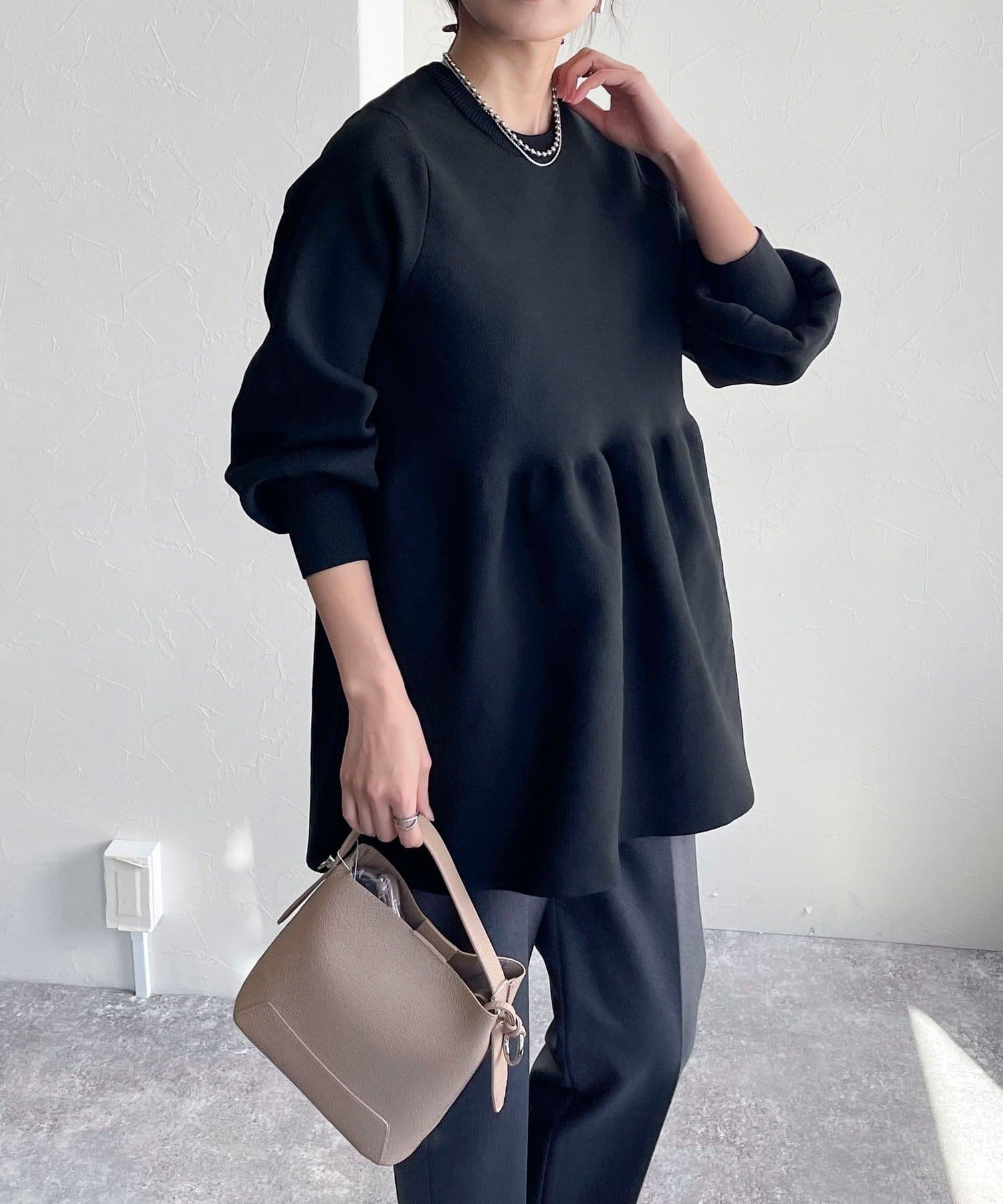 ・ポリエステル100%のシーズンレスで使えるペプラムシルエットのプルオーバーです