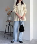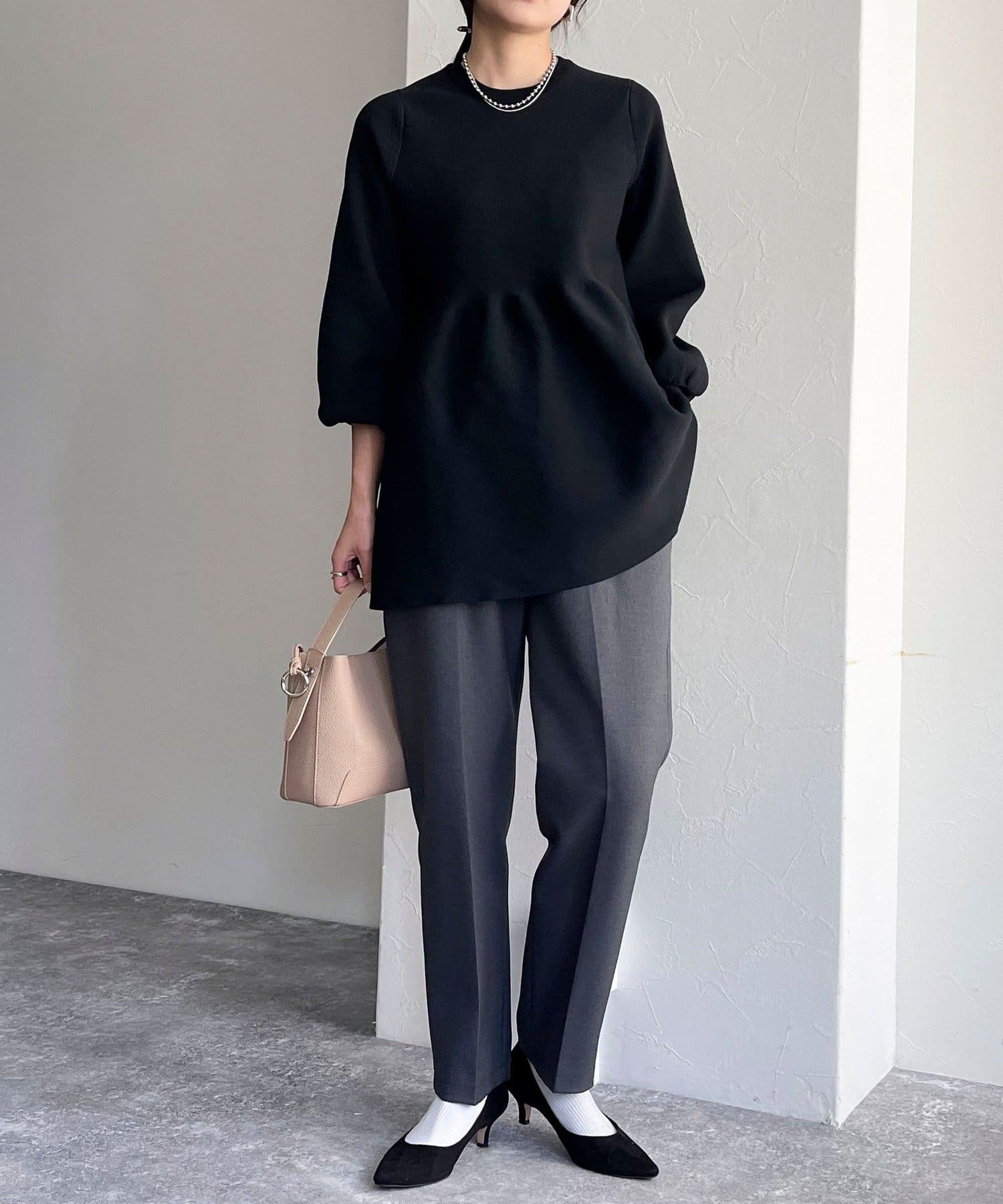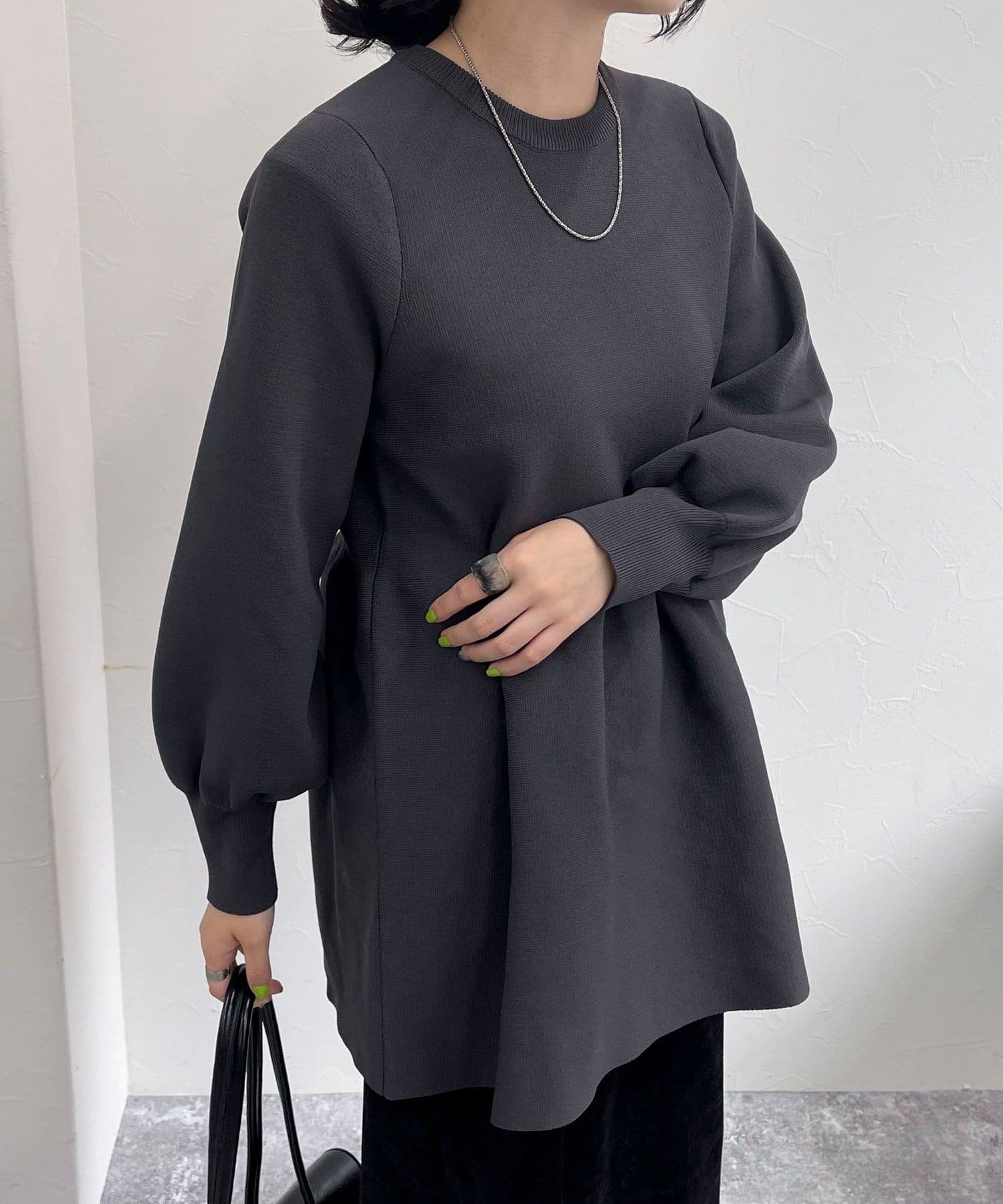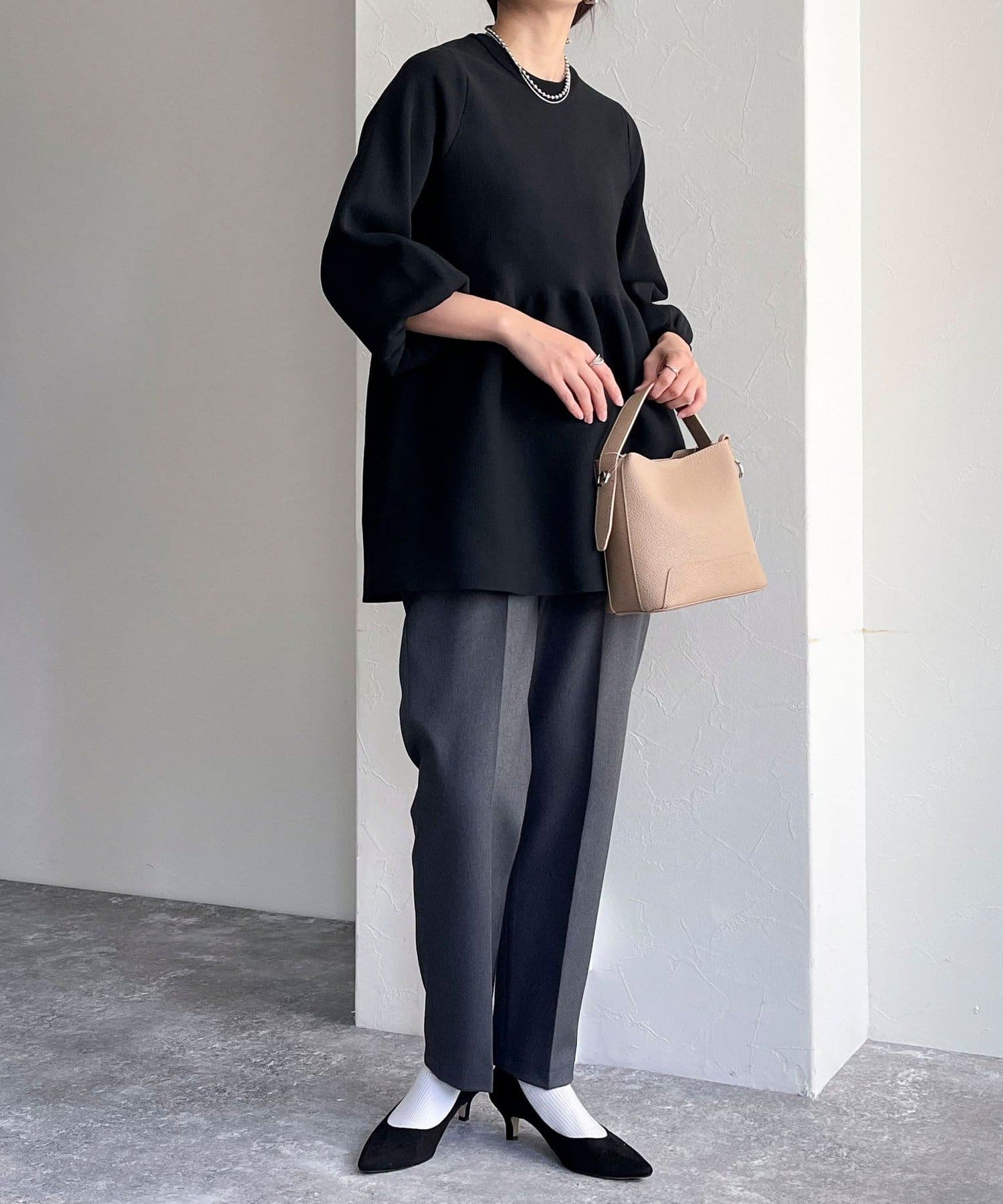 ・ポリエステル100%のシーズンレスで使えるペプラムシルエットのプルオーバーです