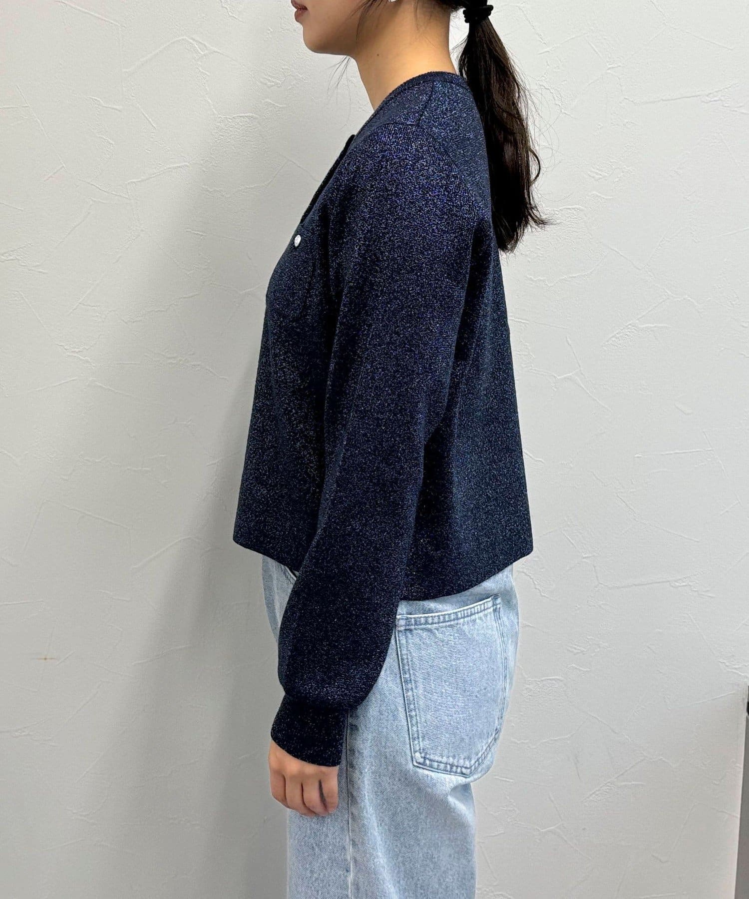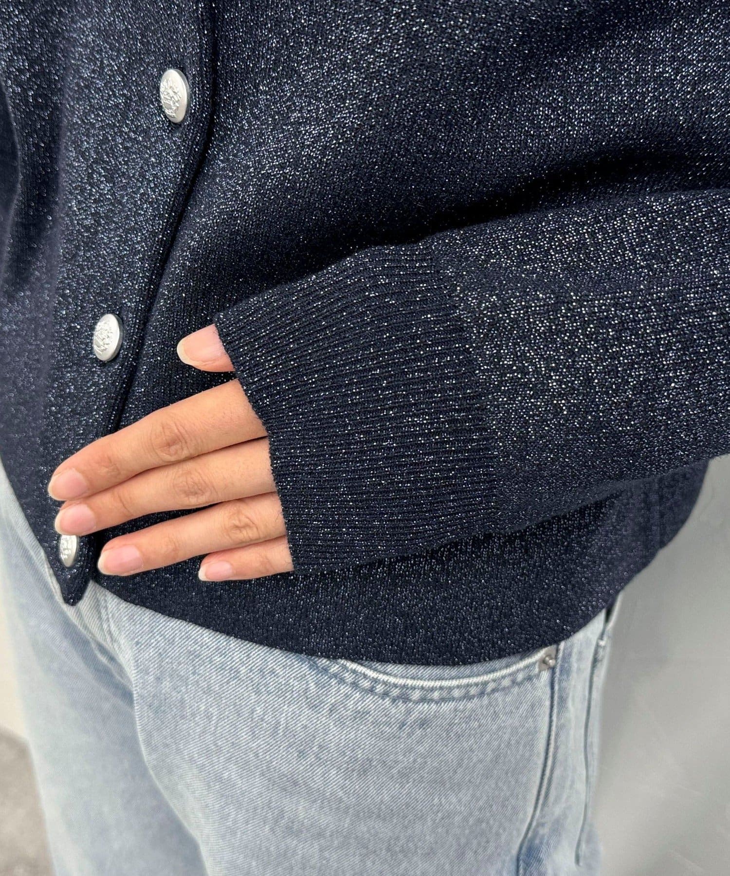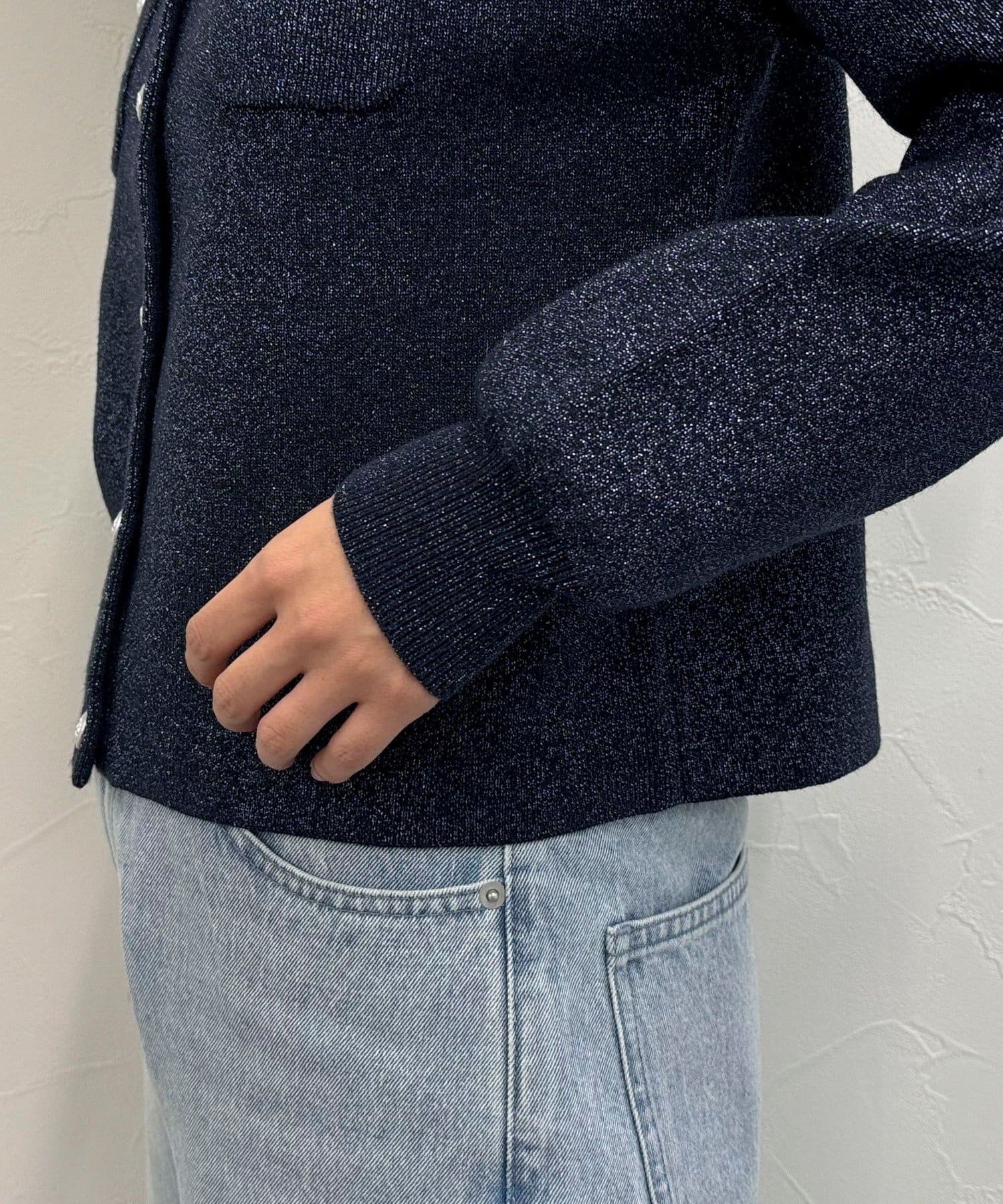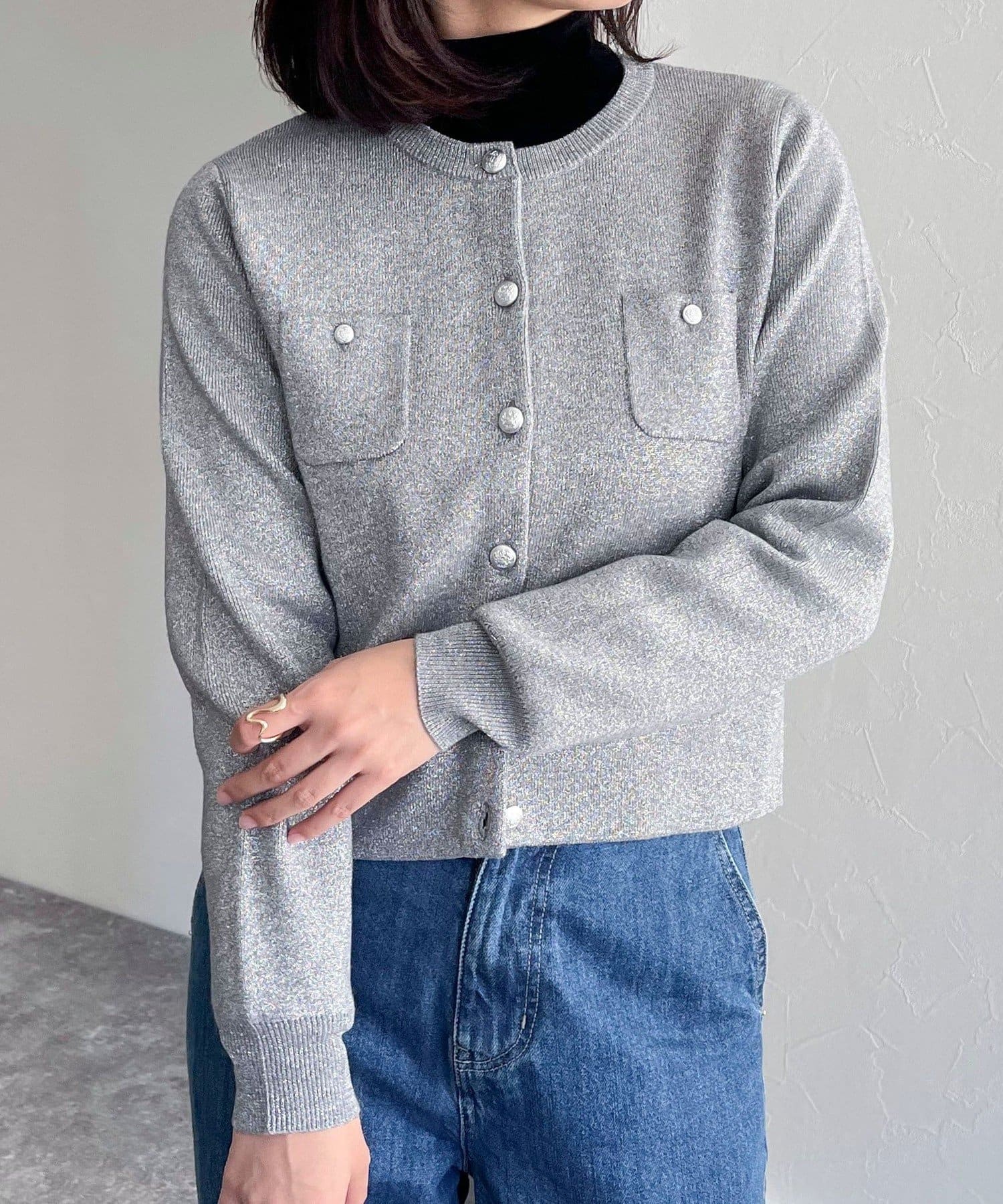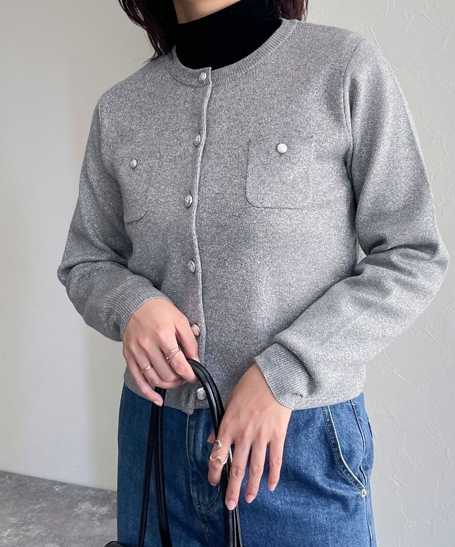 ・ギラギラすぎない繊細なラメ糸をMIXした編地のカーディガンです