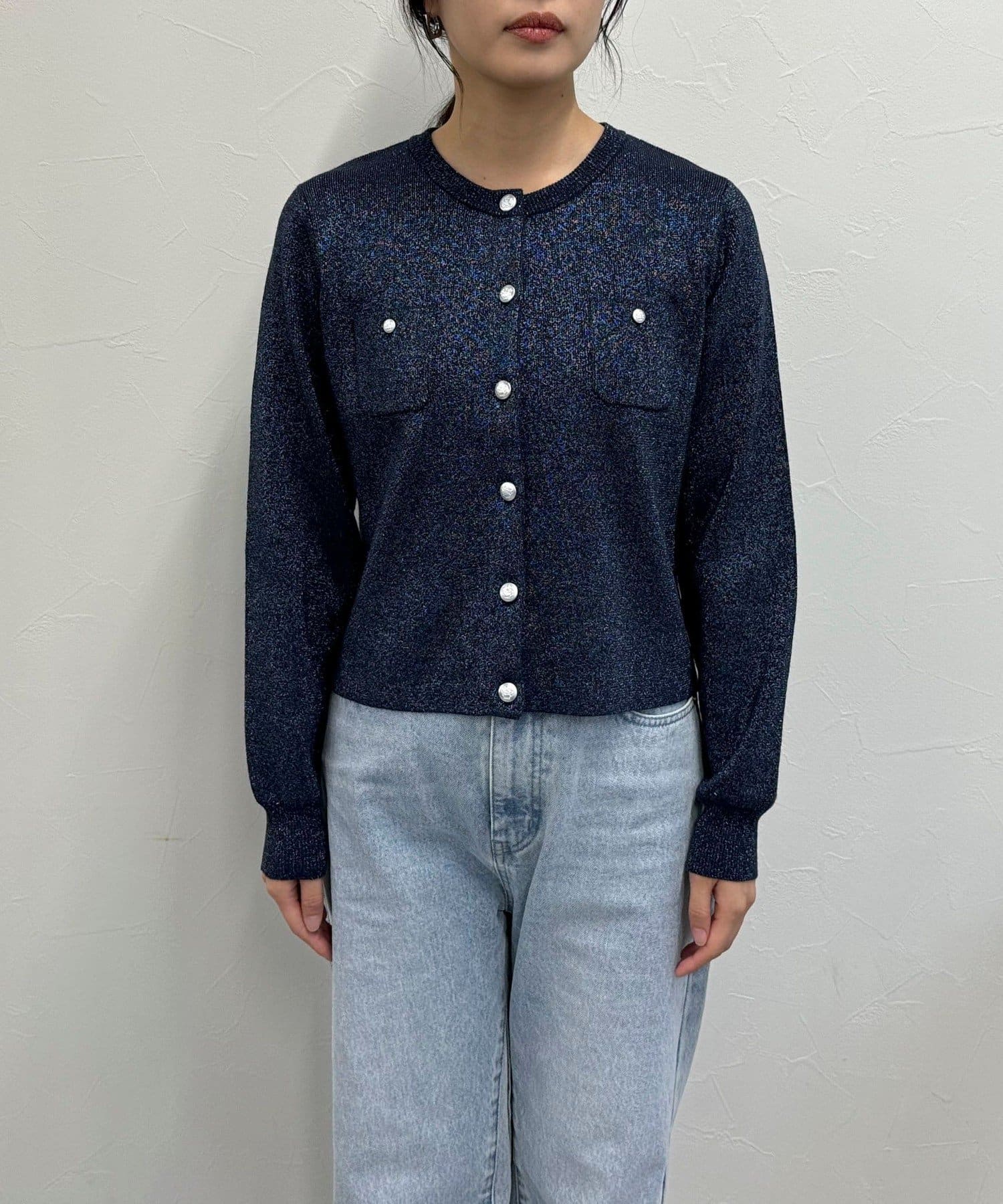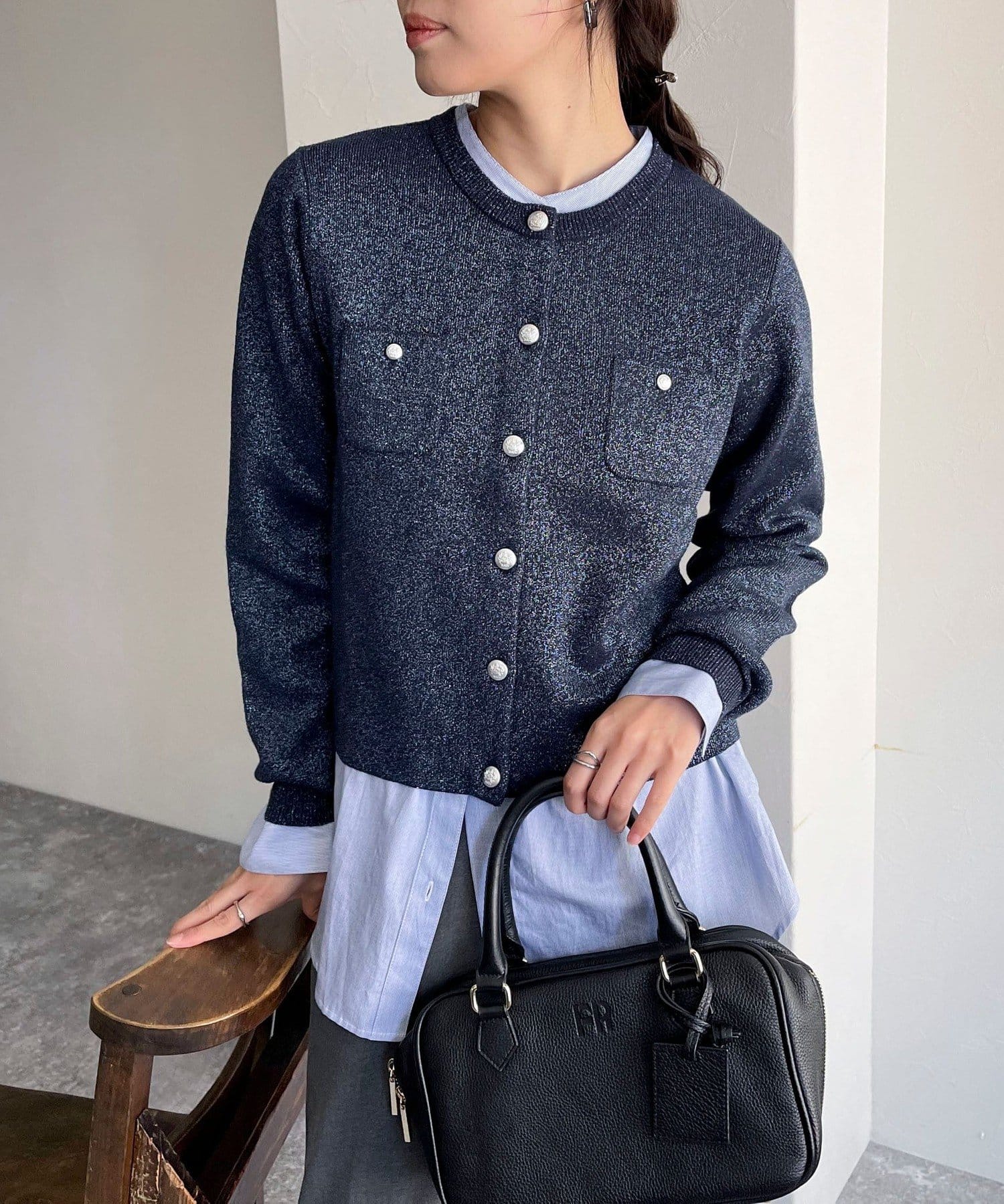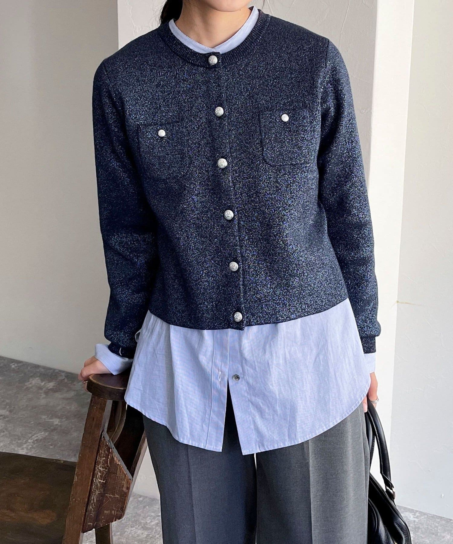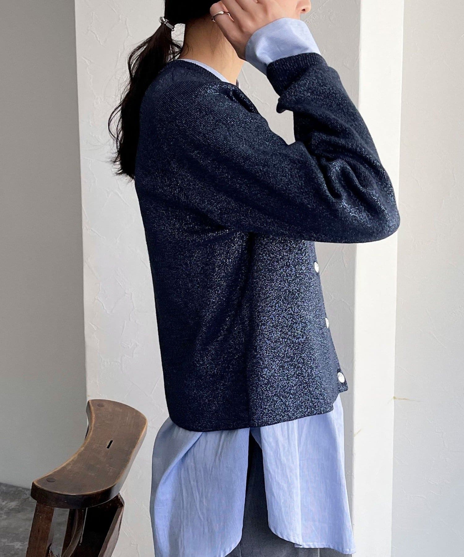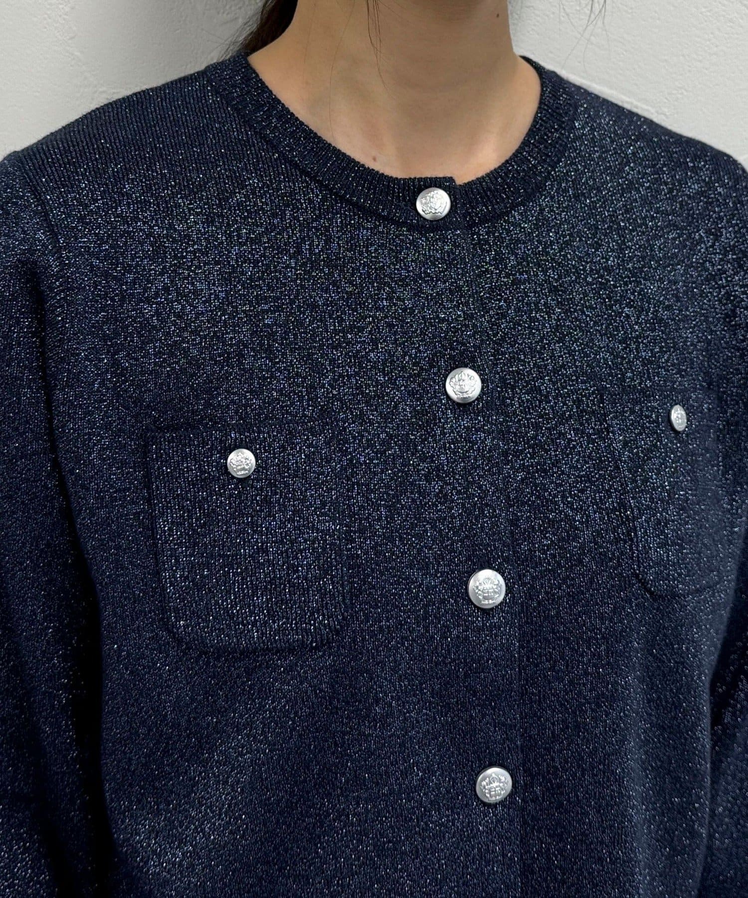 ・ギラギラすぎない繊細なラメ糸をMIXした編地のカーディガンです