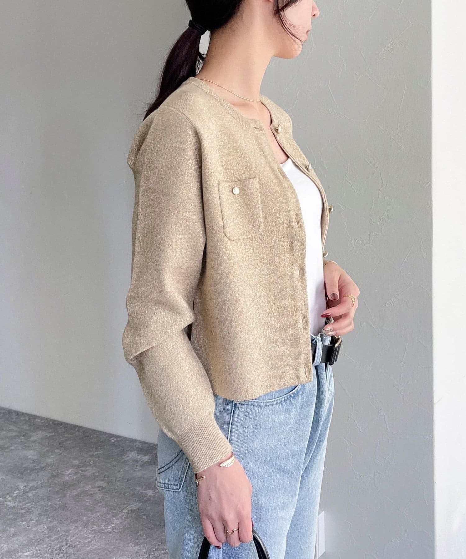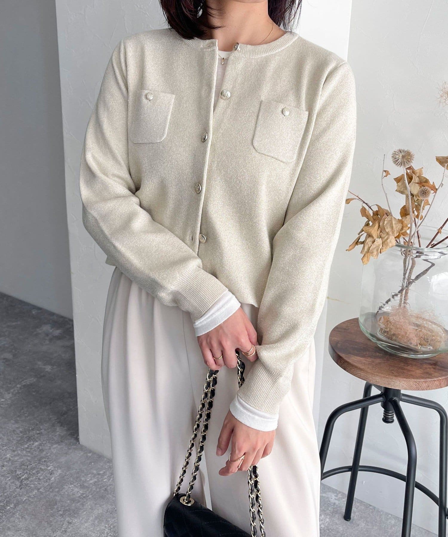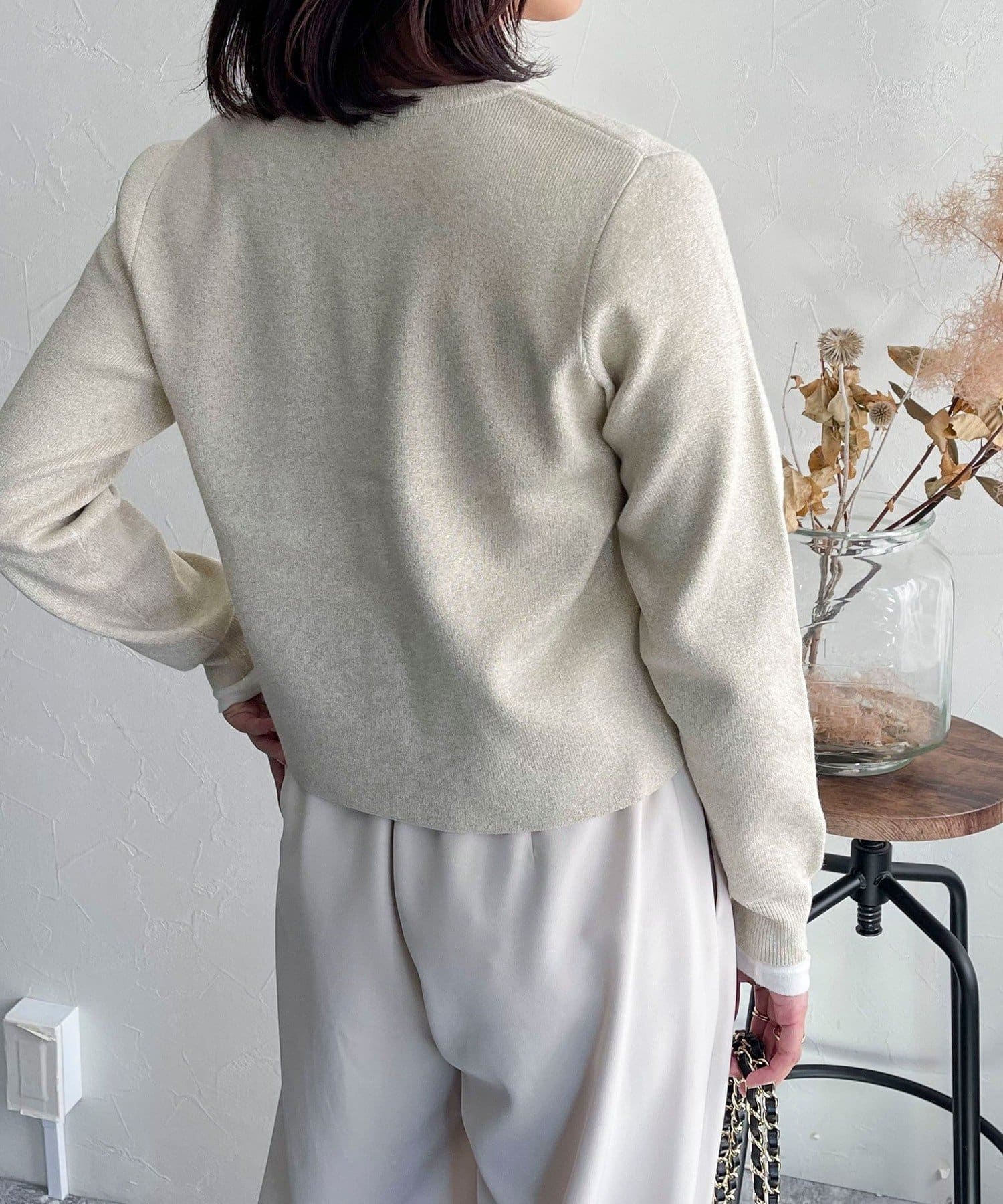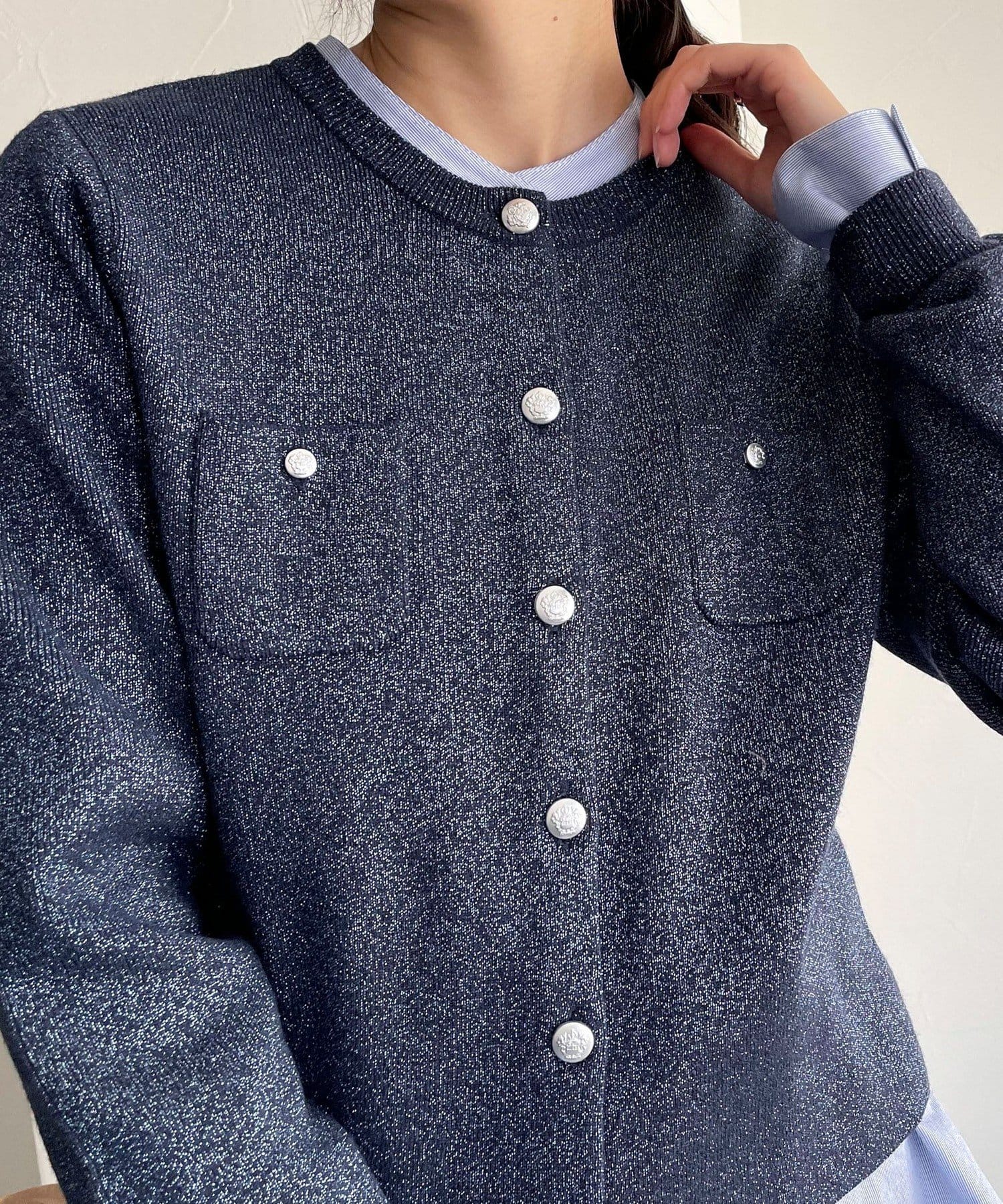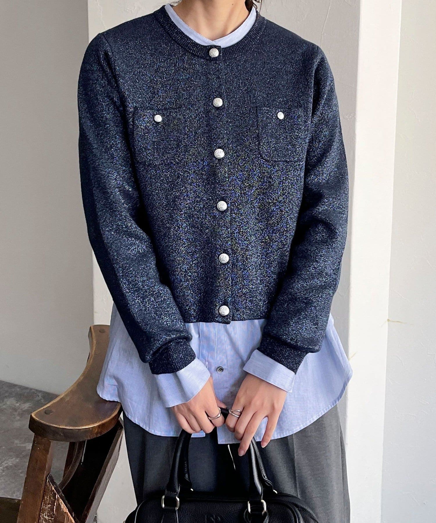 ・ギラギラすぎない繊細なラメ糸をMIXした編地のカーディガンです