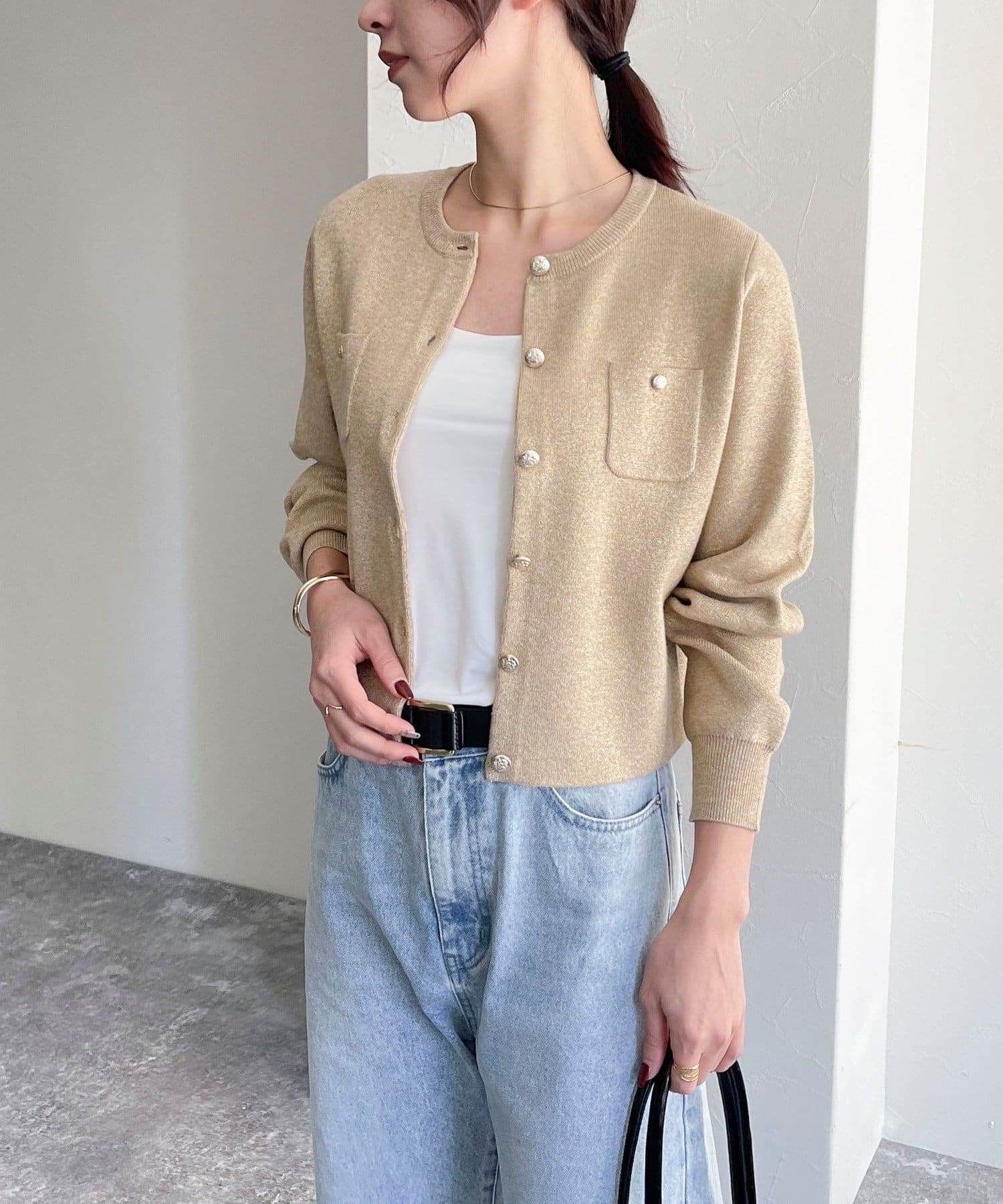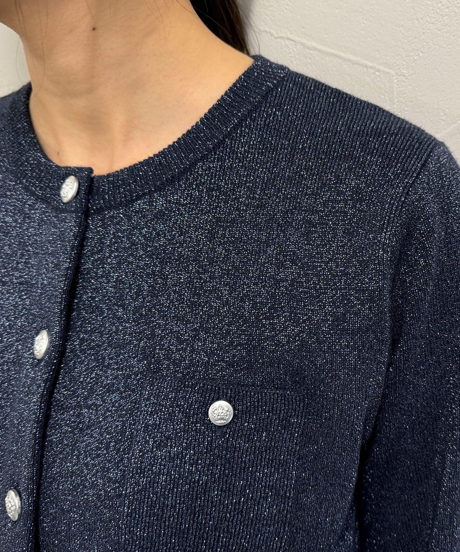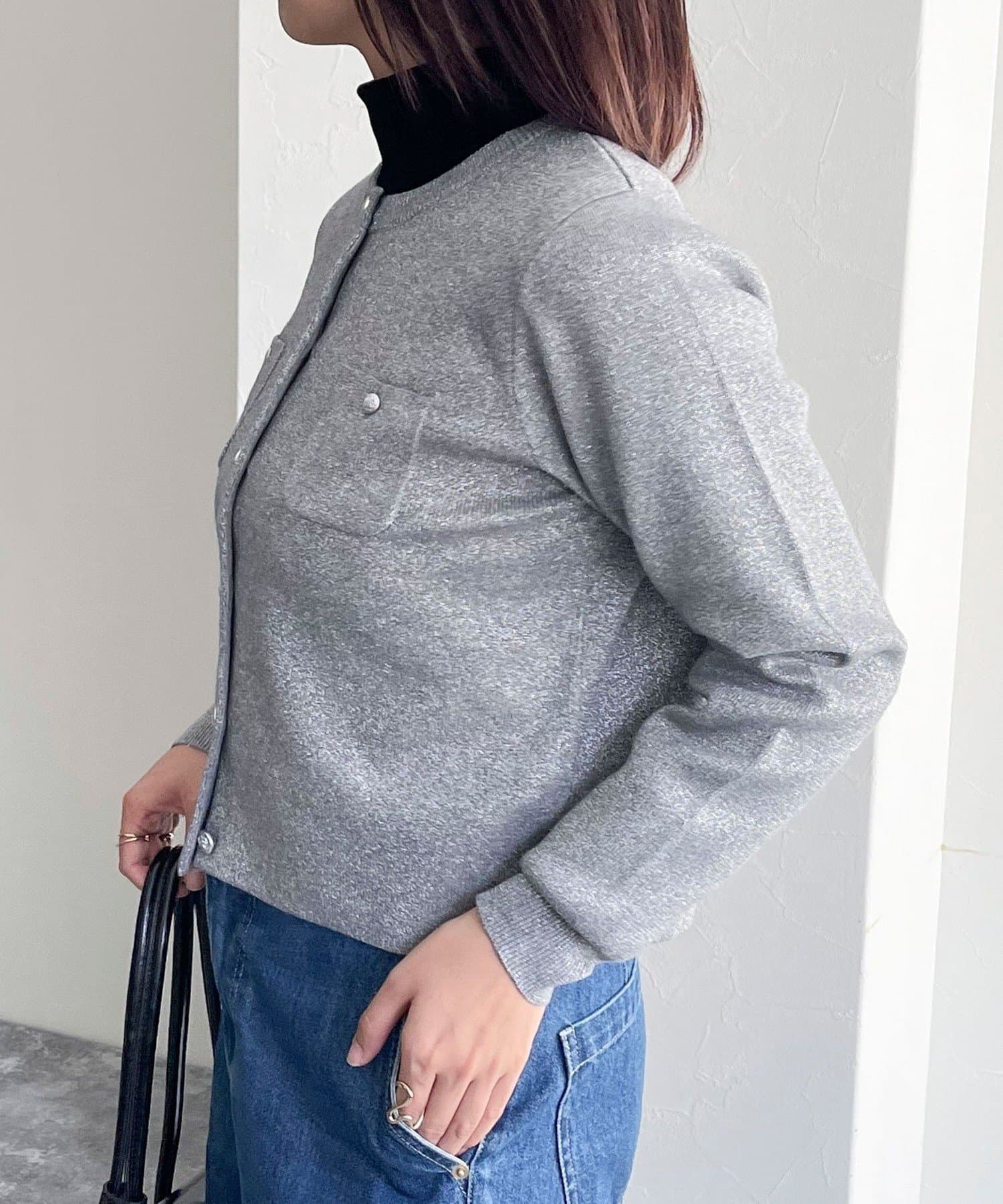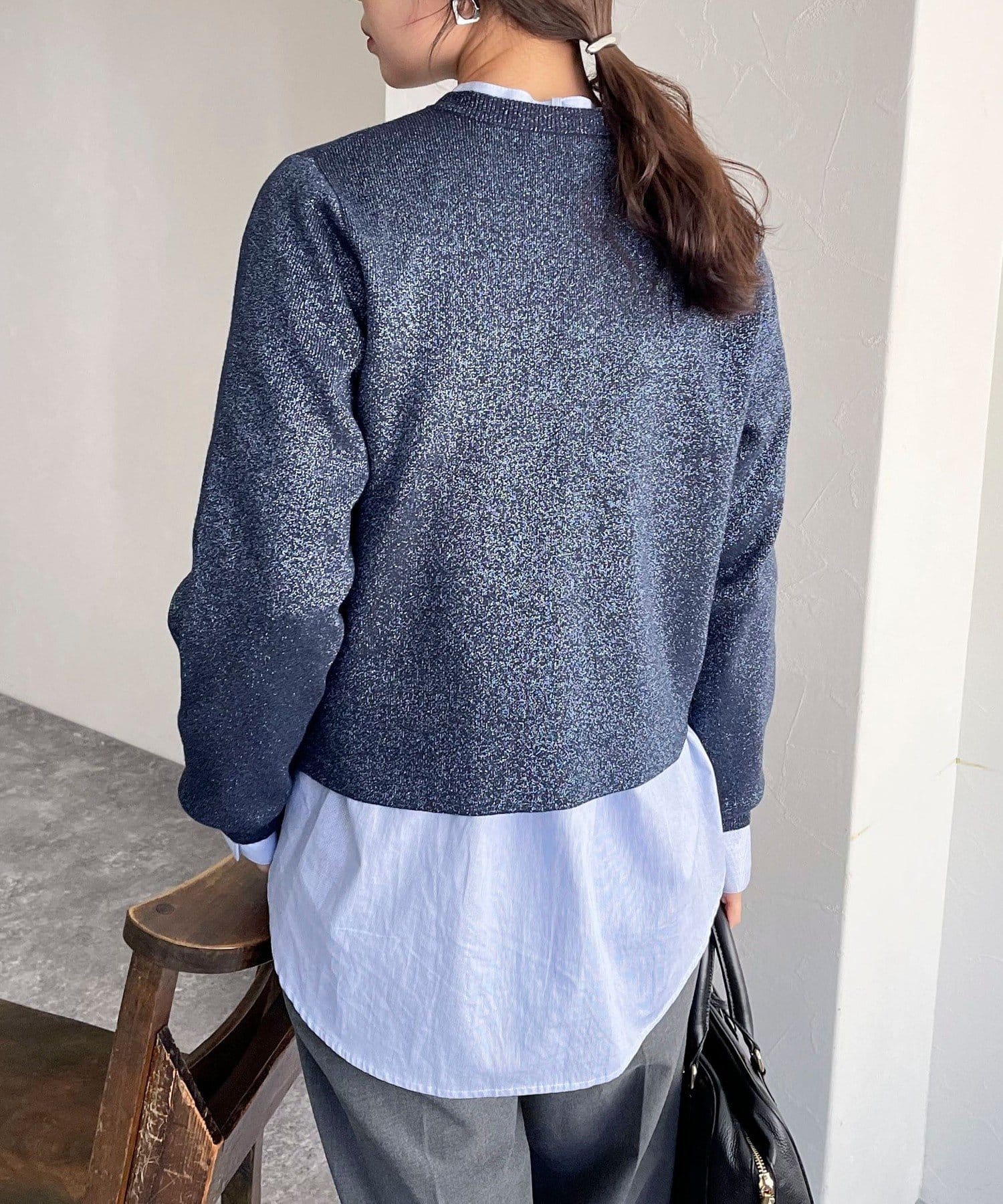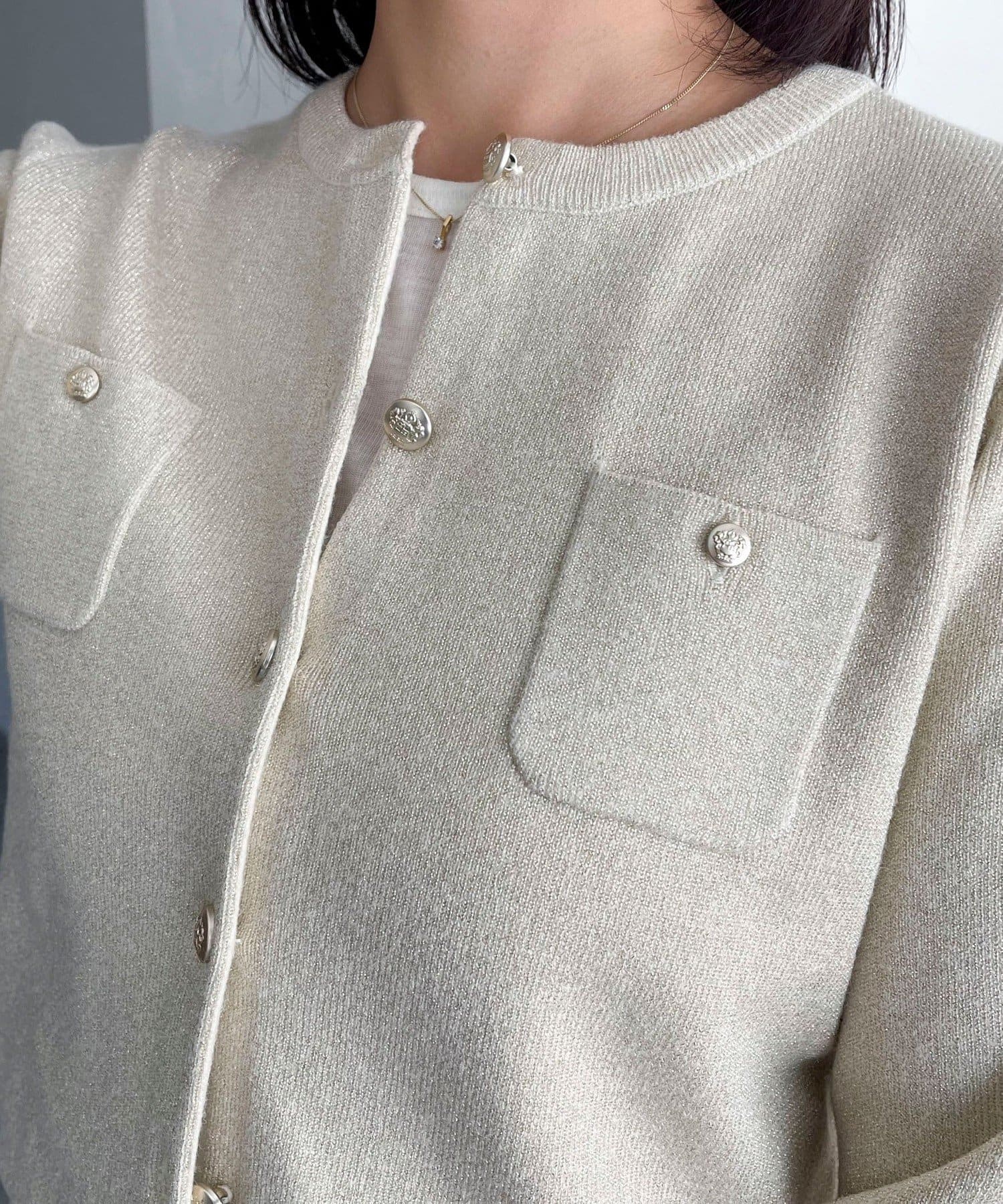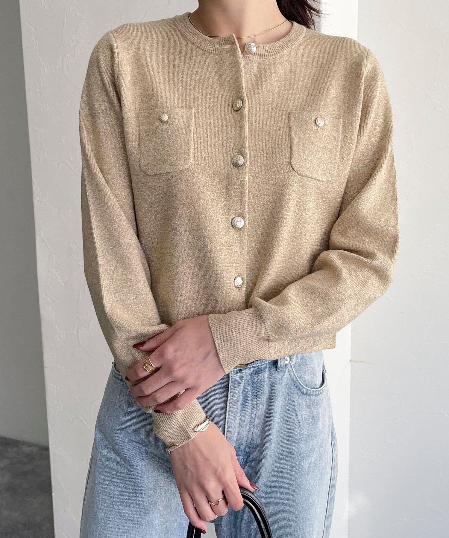 ・ギラギラすぎない繊細なラメ糸をMIXした編地のカーディガンです