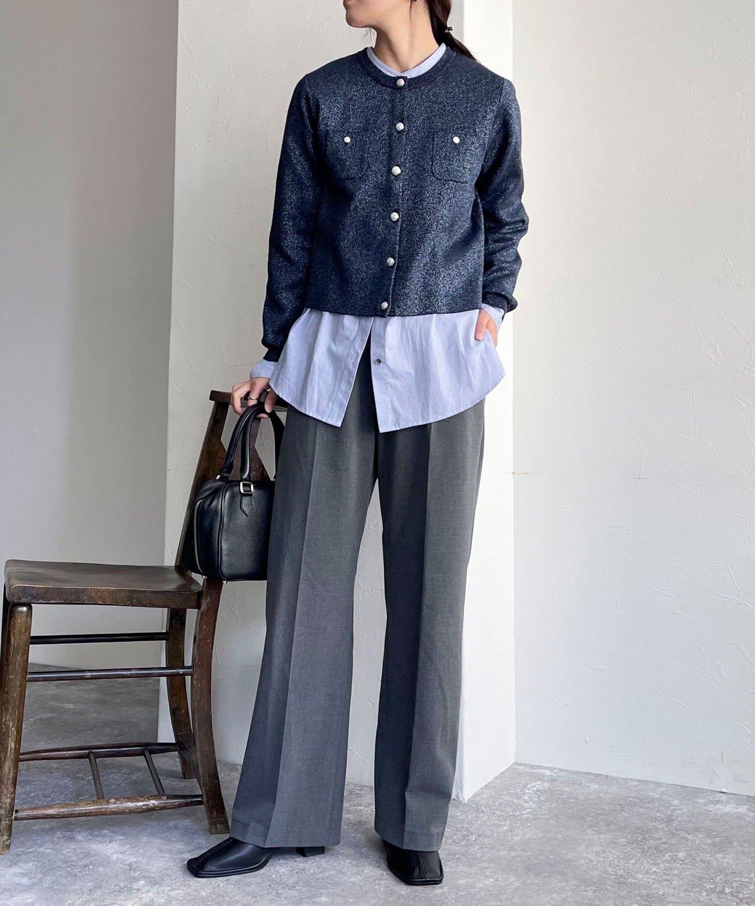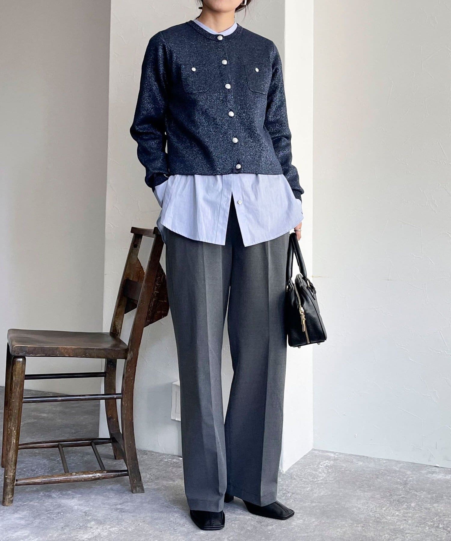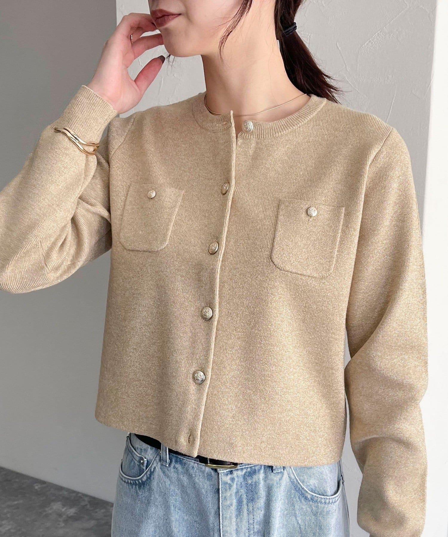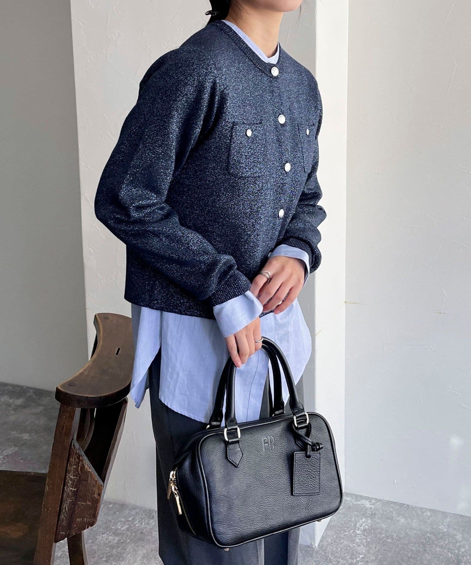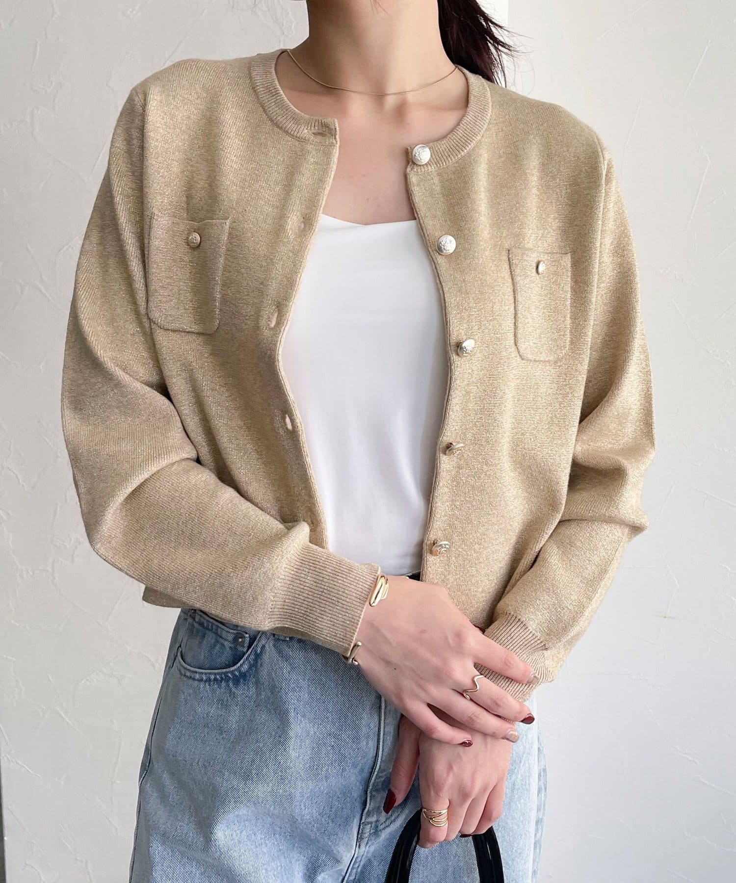 ・ギラギラすぎない繊細なラメ糸をMIXした編地のカーディガンです