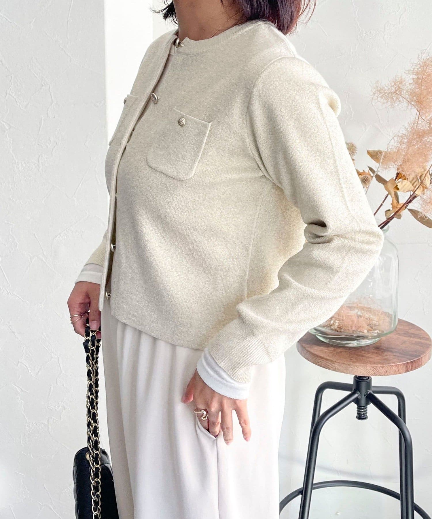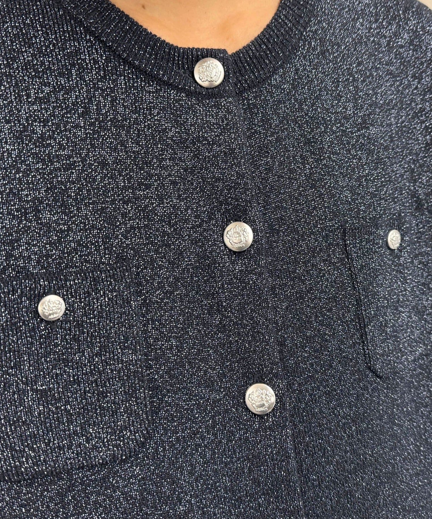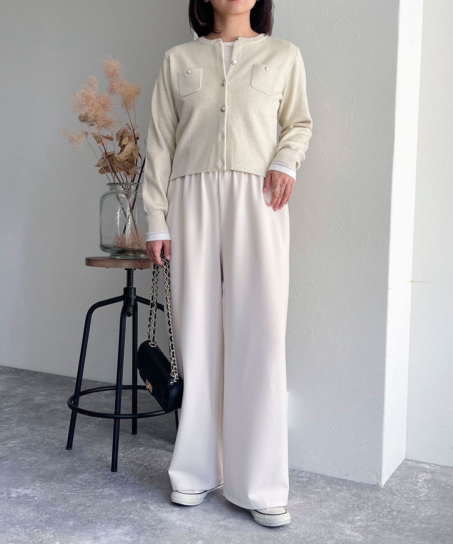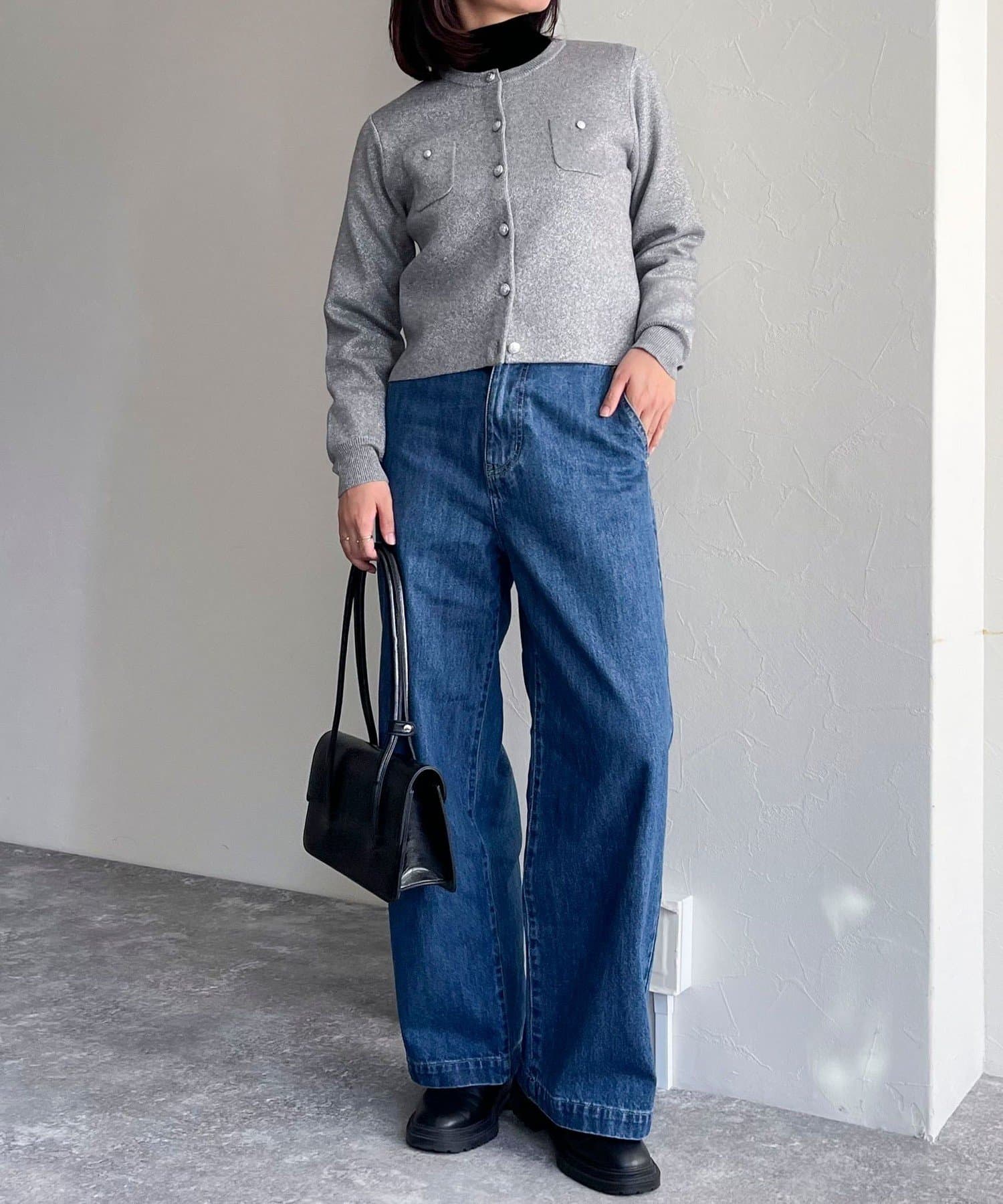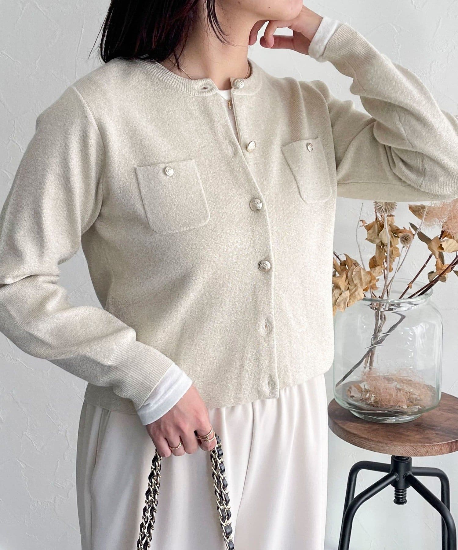 ・ギラギラすぎない繊細なラメ糸をMIXした編地のカーディガンです