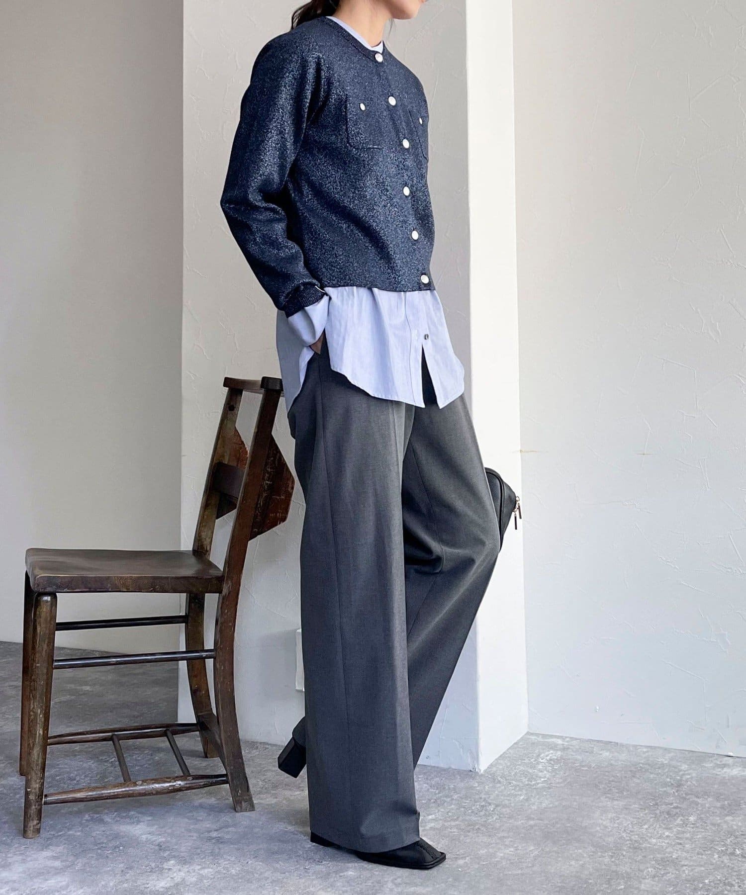 ・今っぽいコンパクトめなサイズ感が合わせやすく、オンオフ使える1枚です