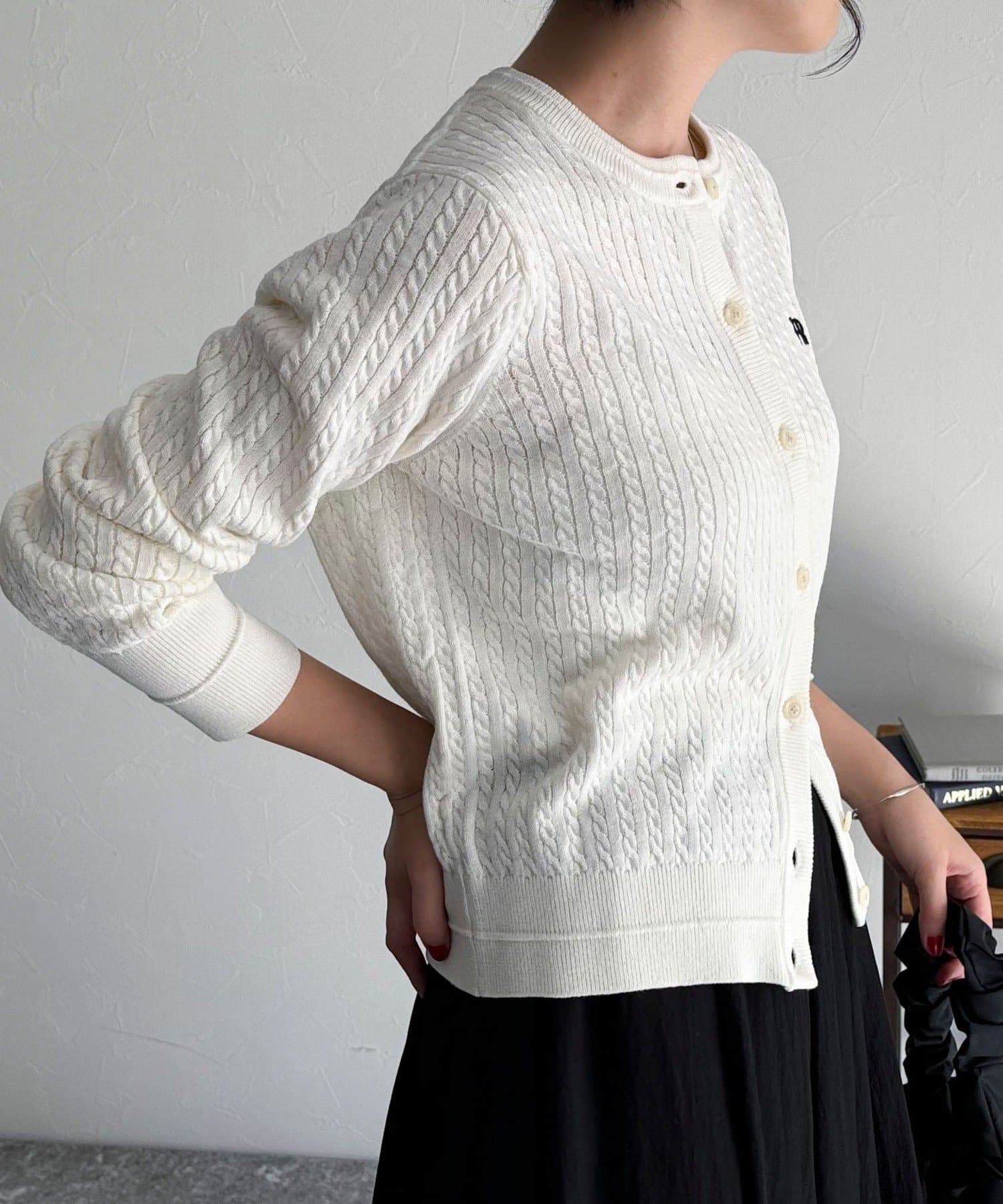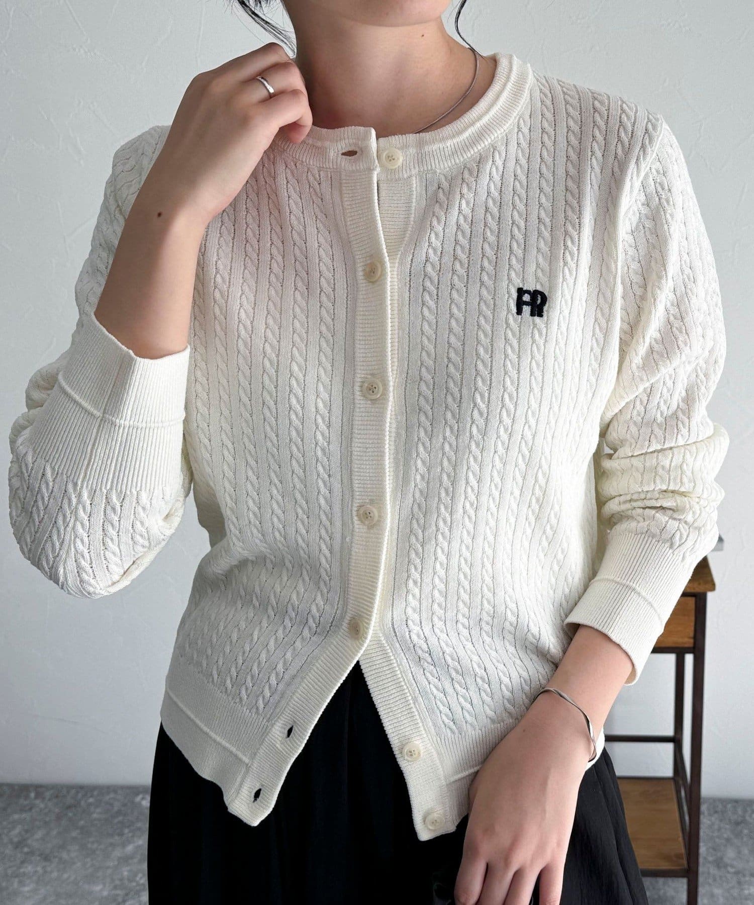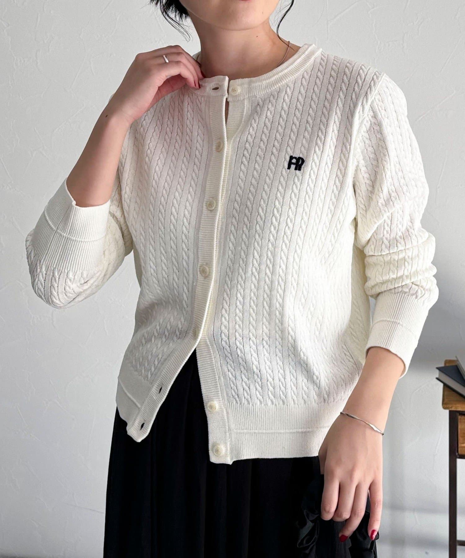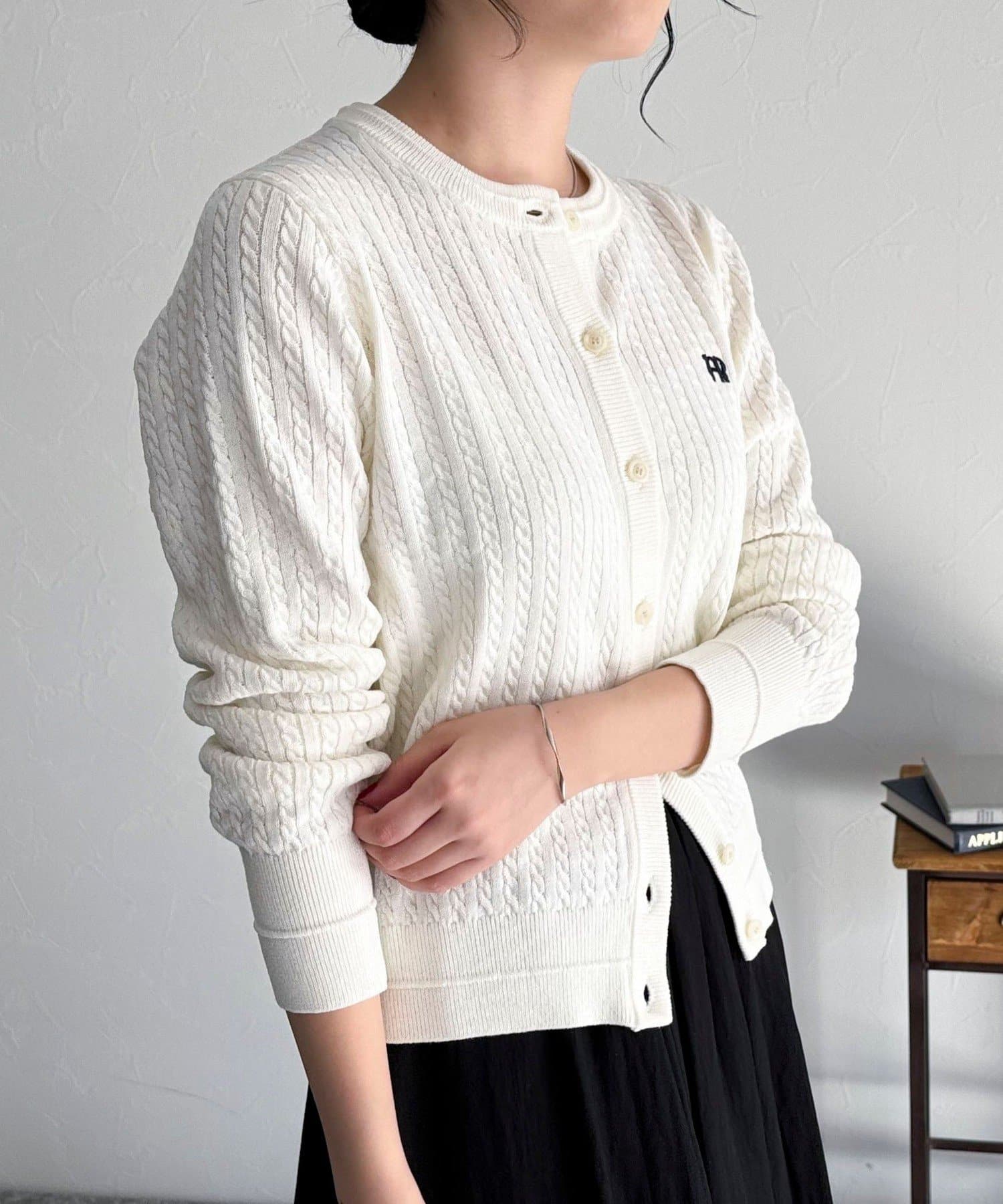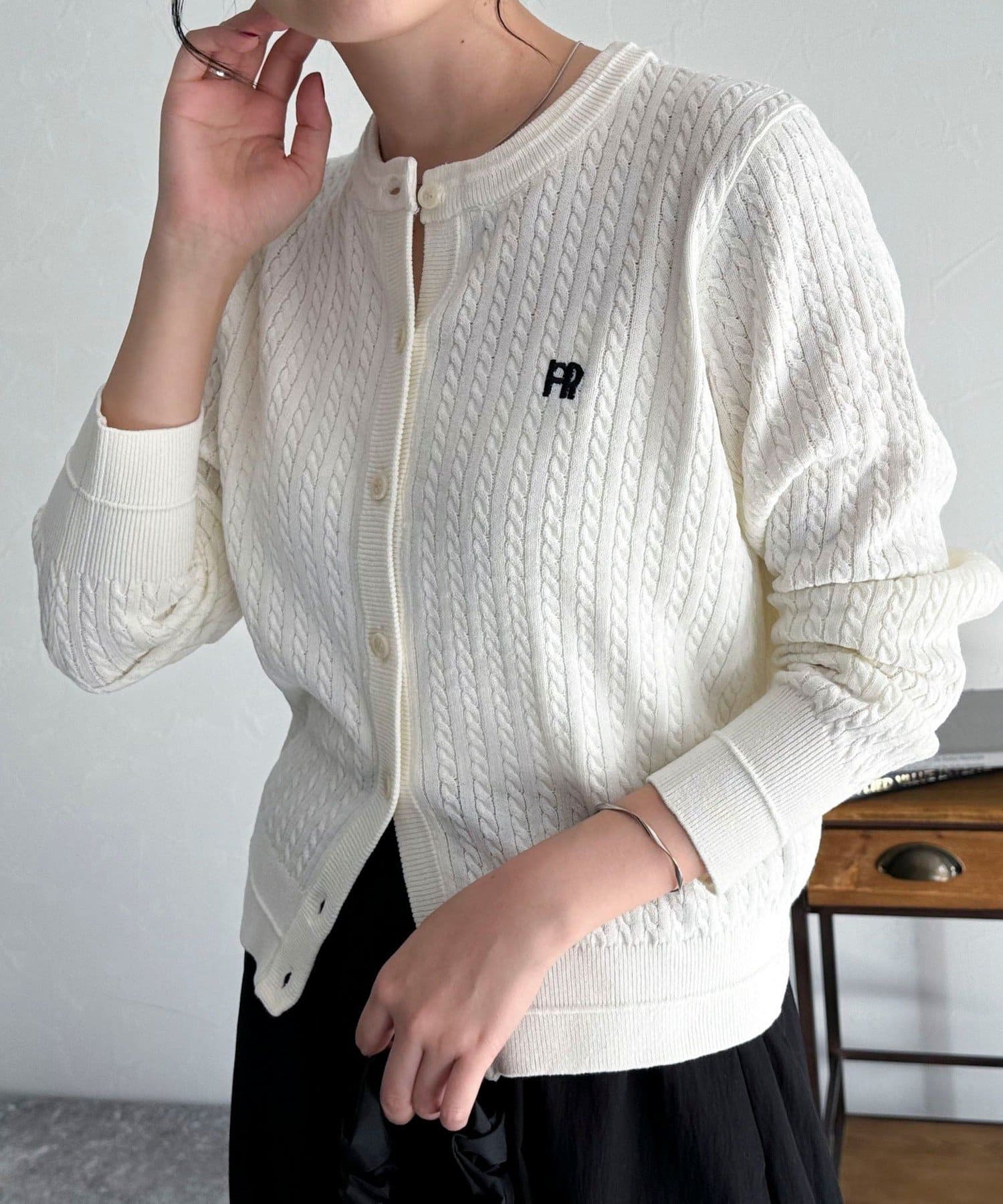 FR刺繍ミニケーブル柄カーディガン