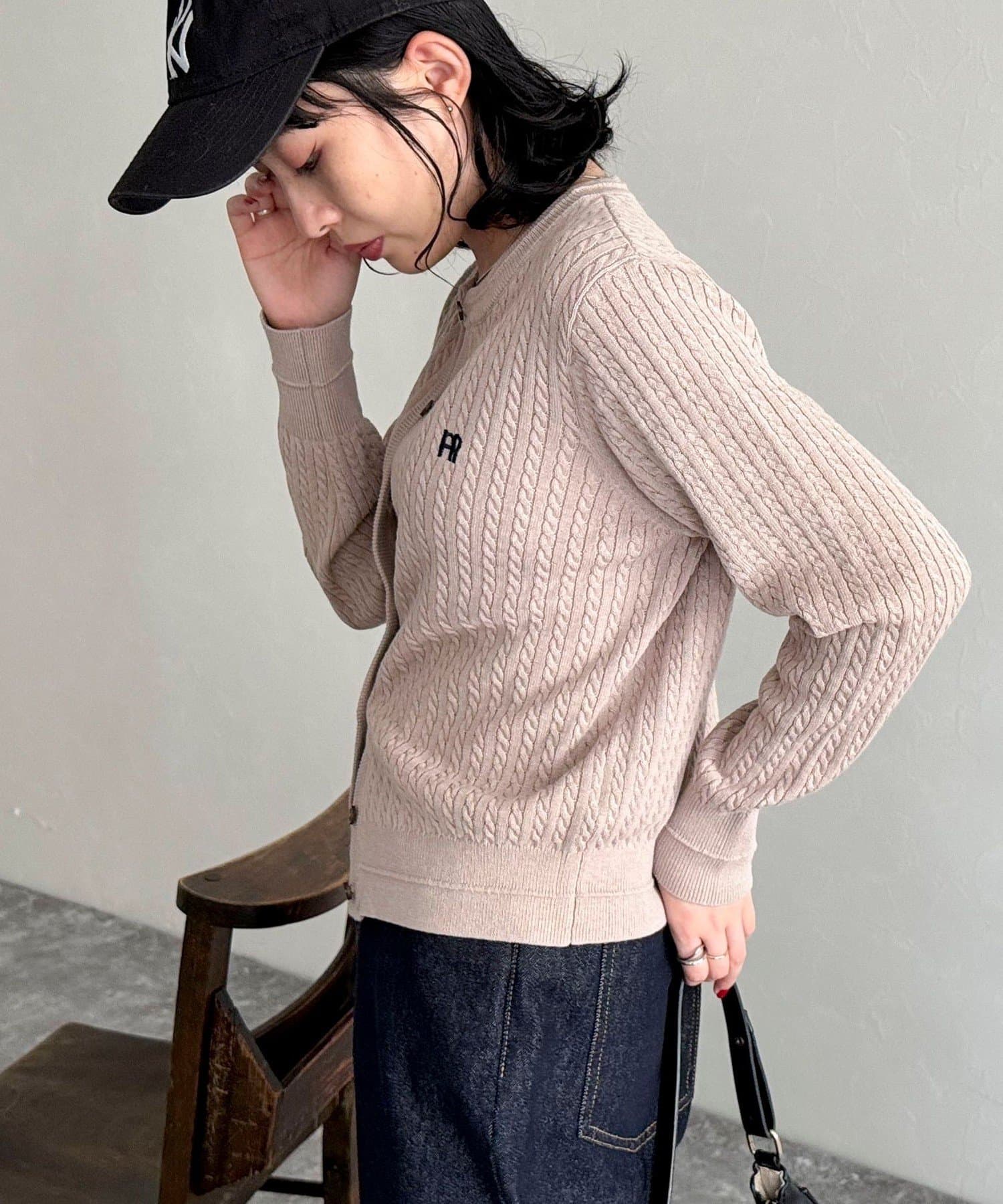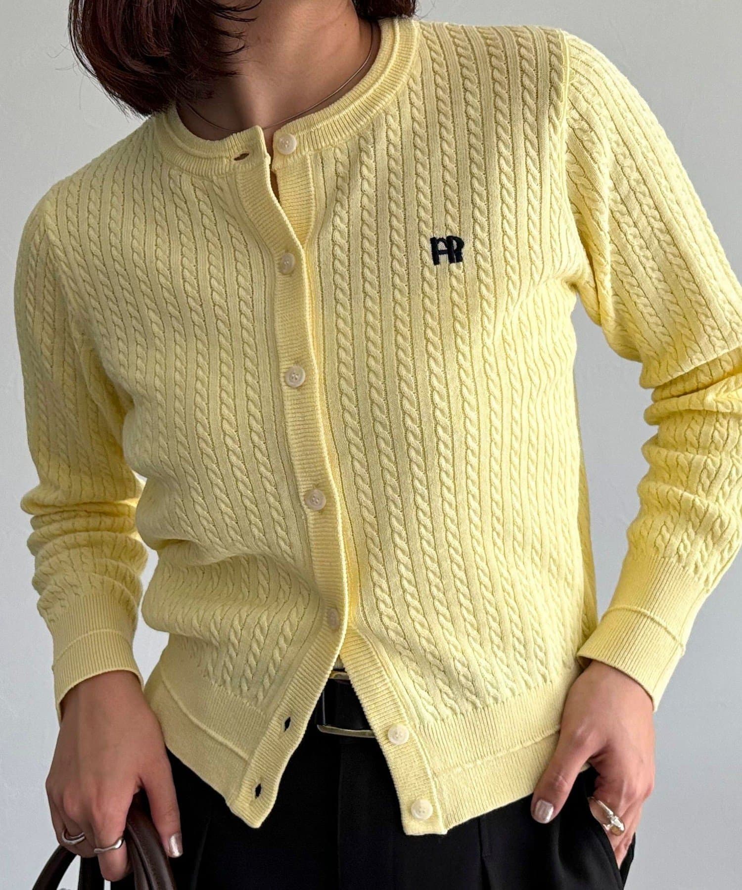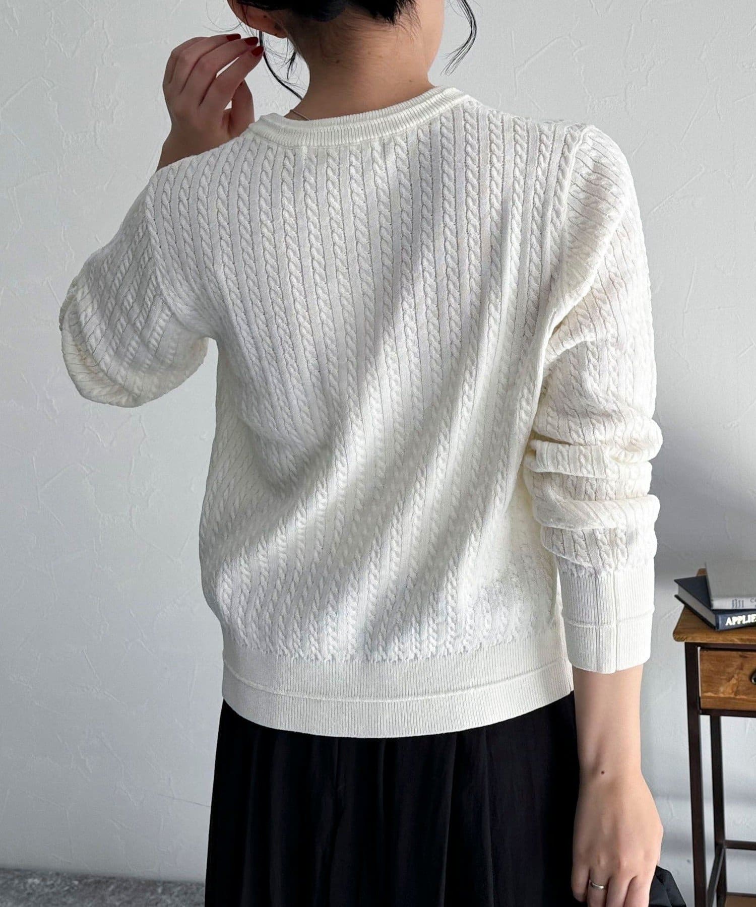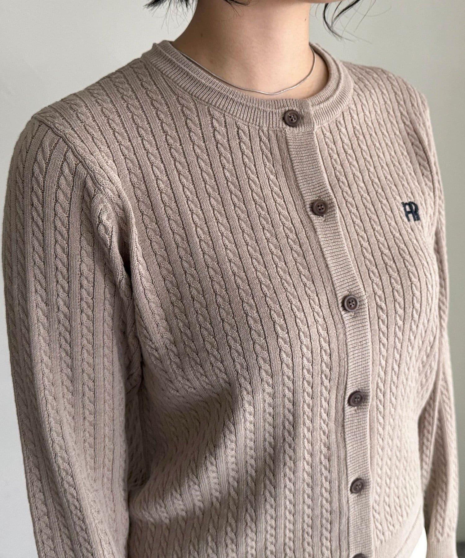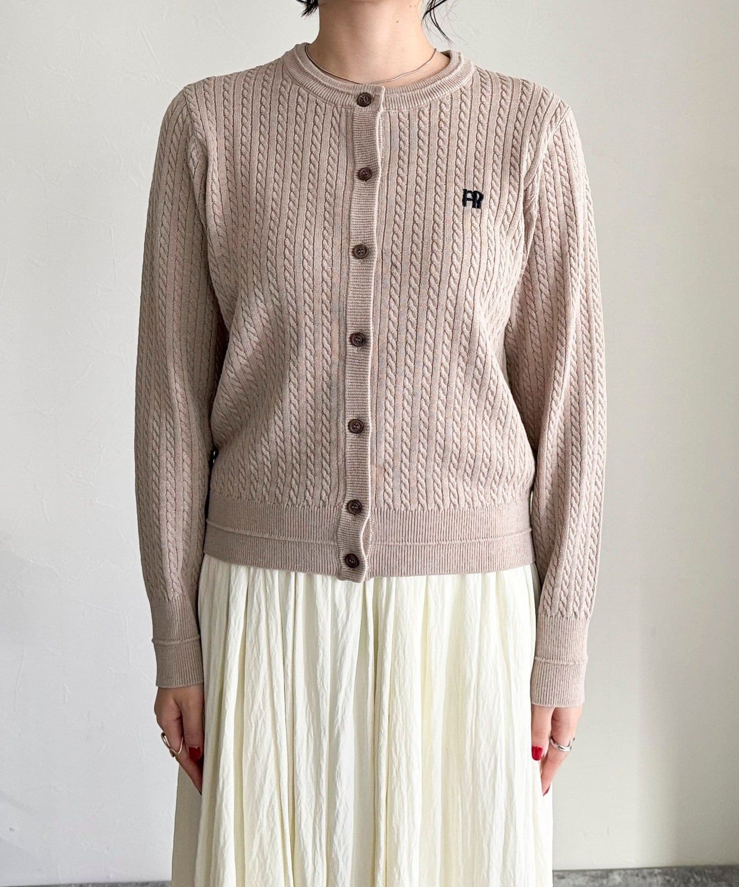 FR刺繍ミニケーブル柄カーディガン