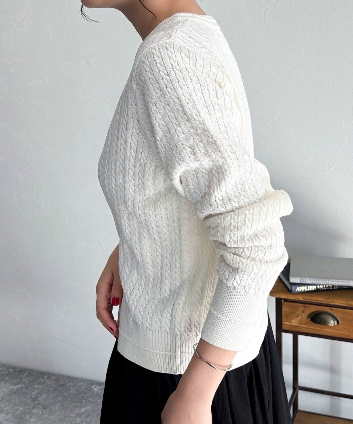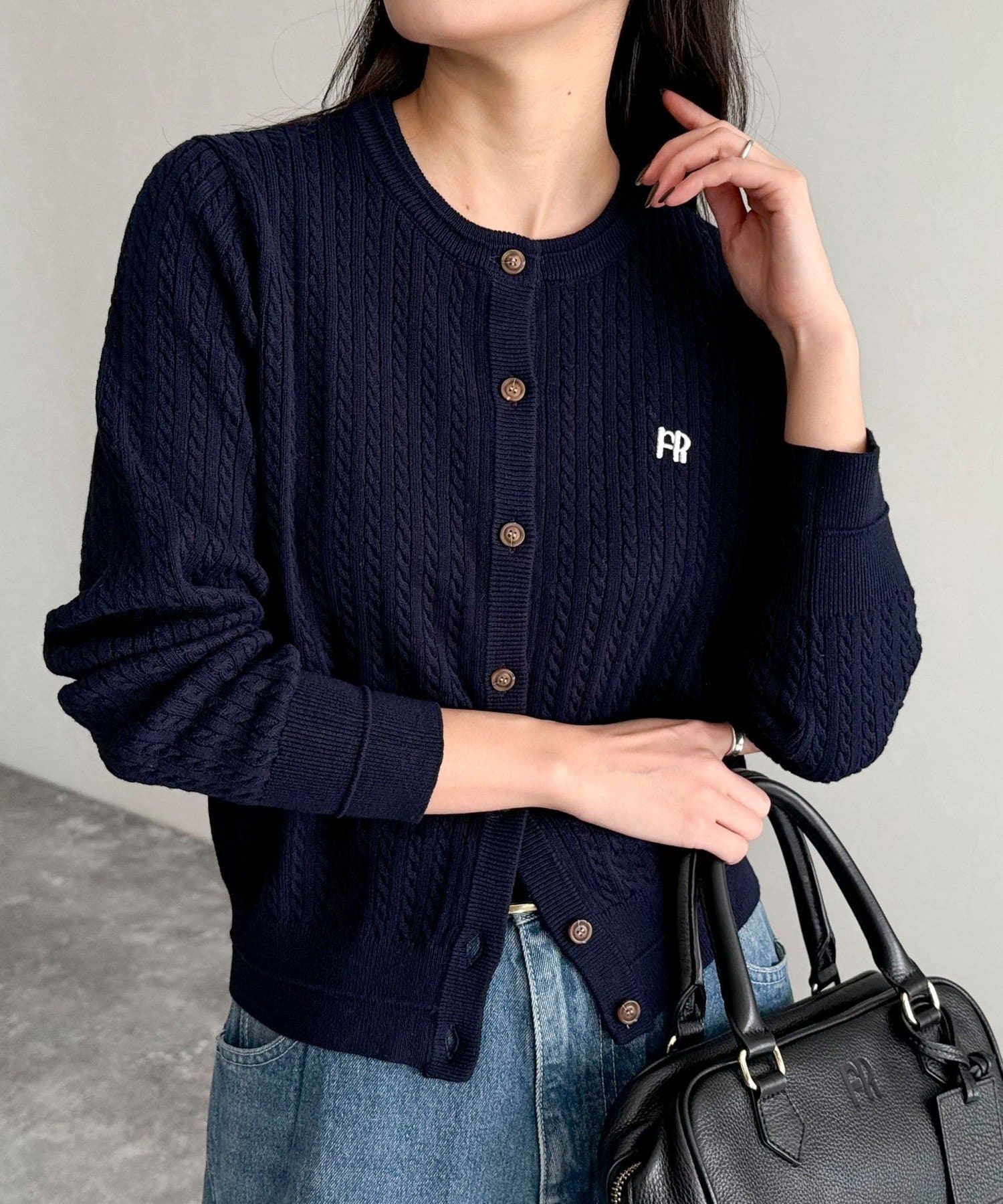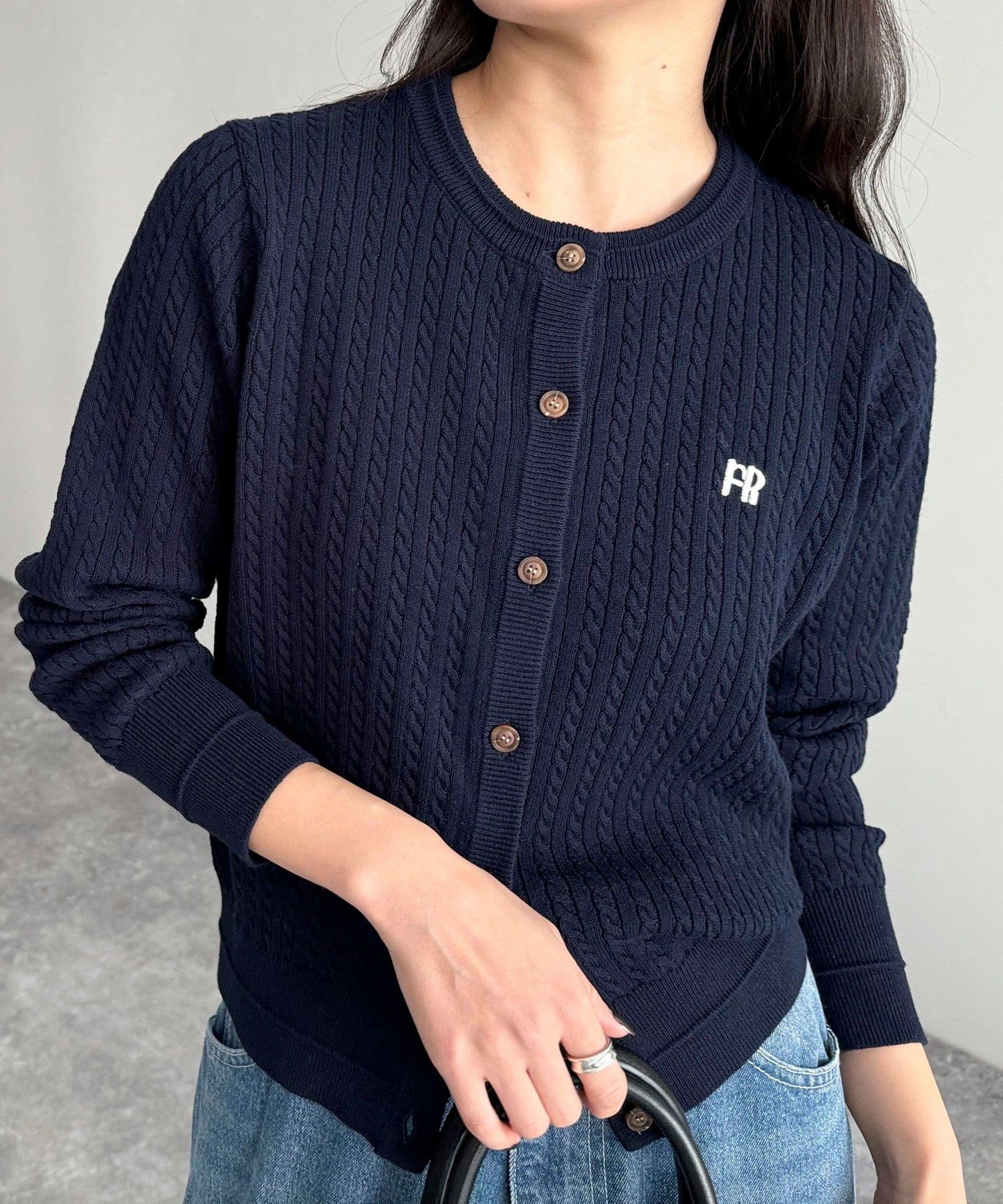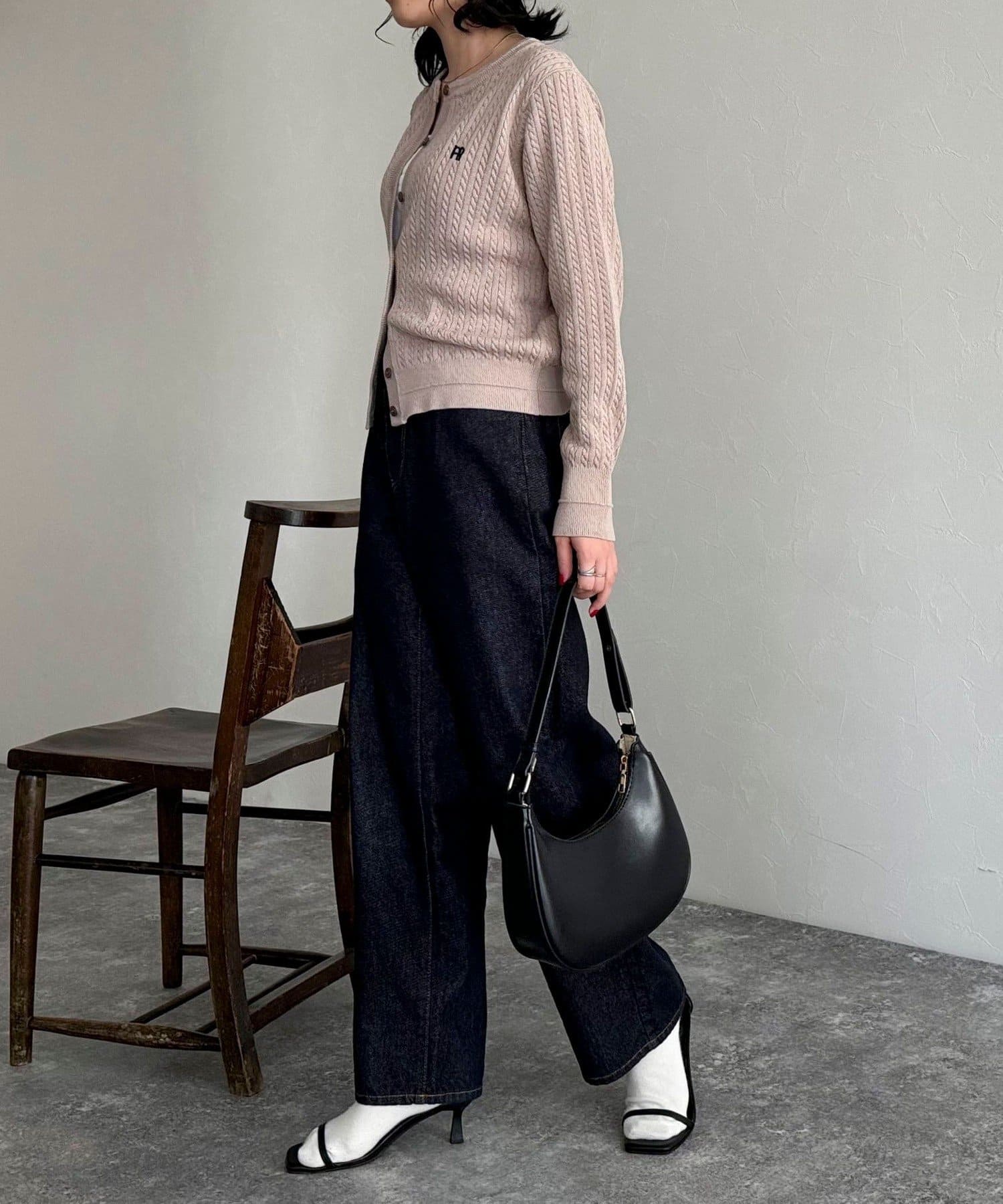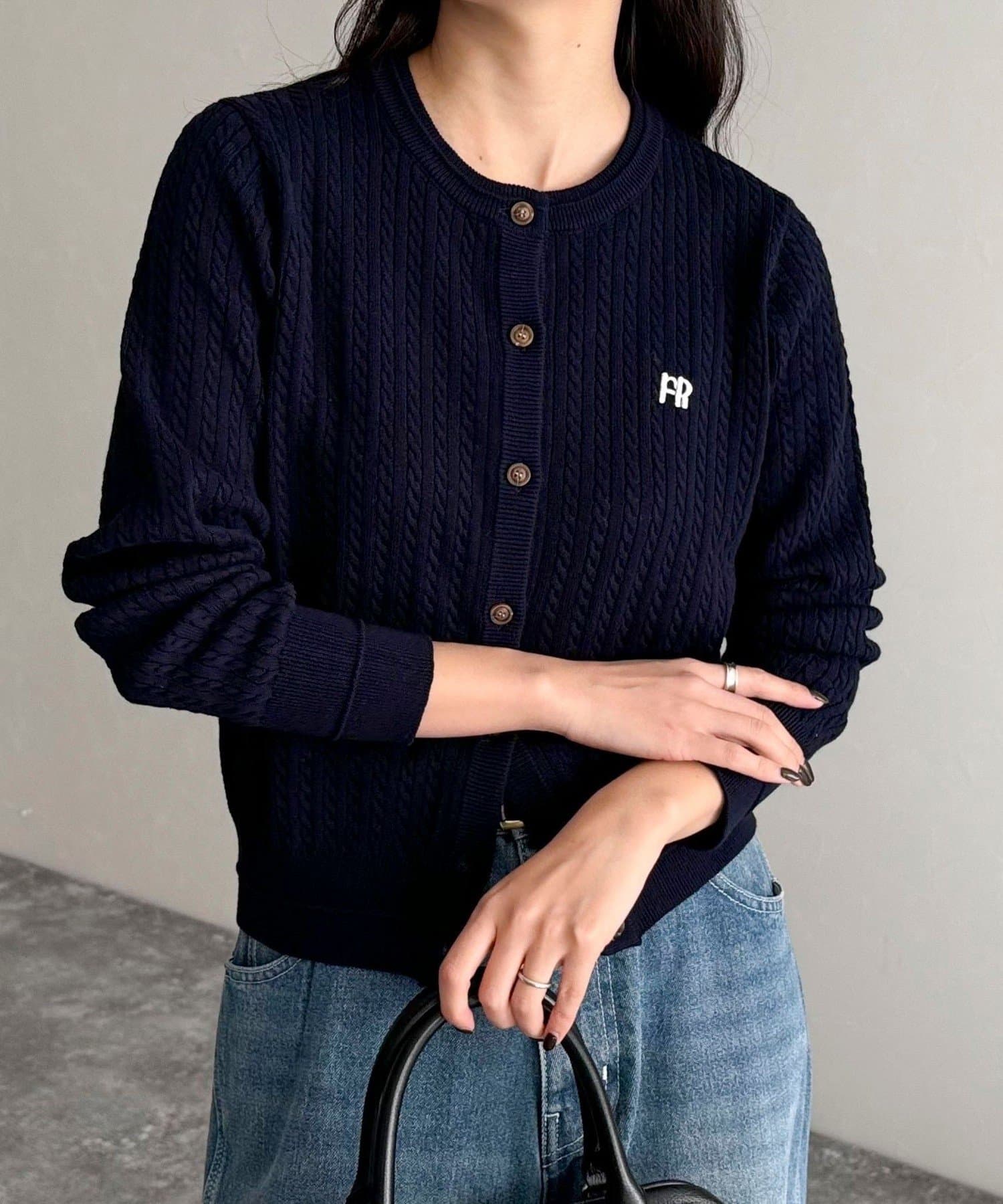 FR刺繍ミニケーブル柄カーディガン