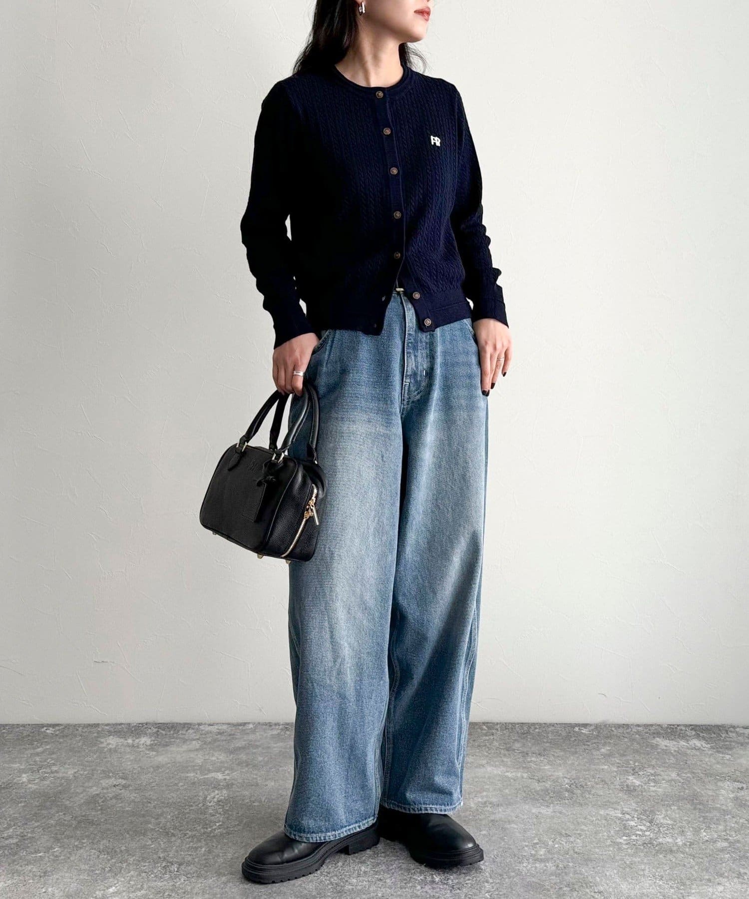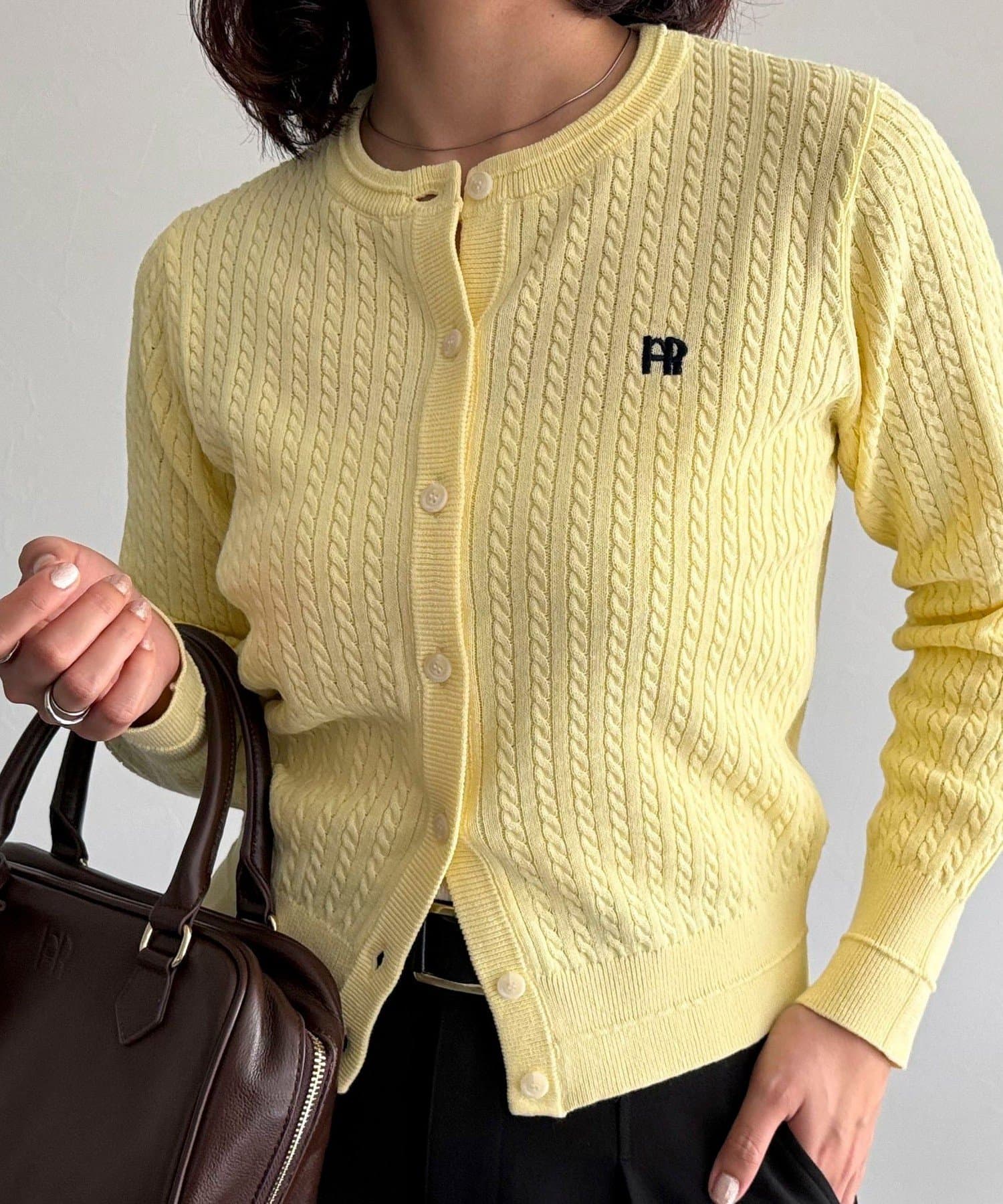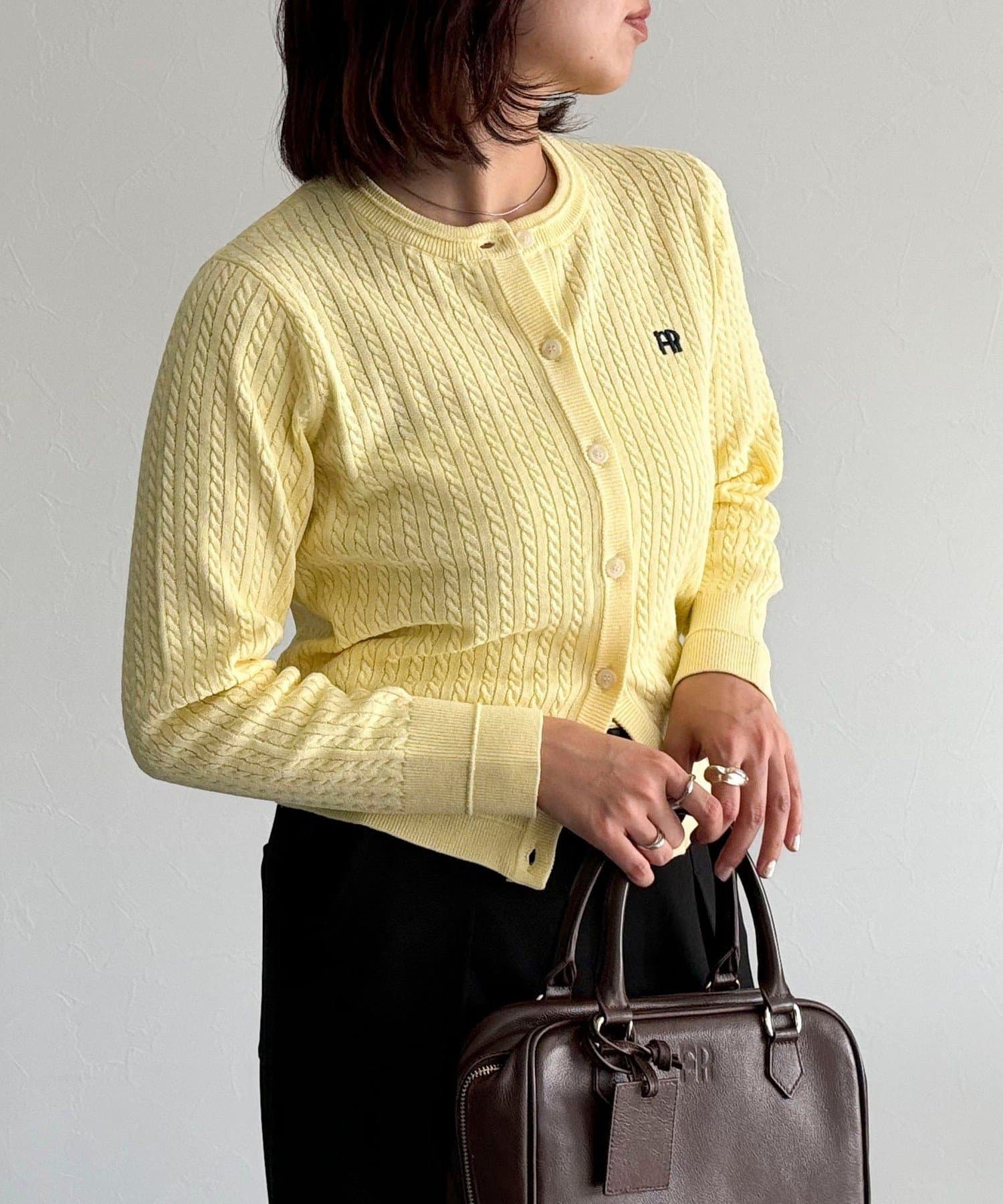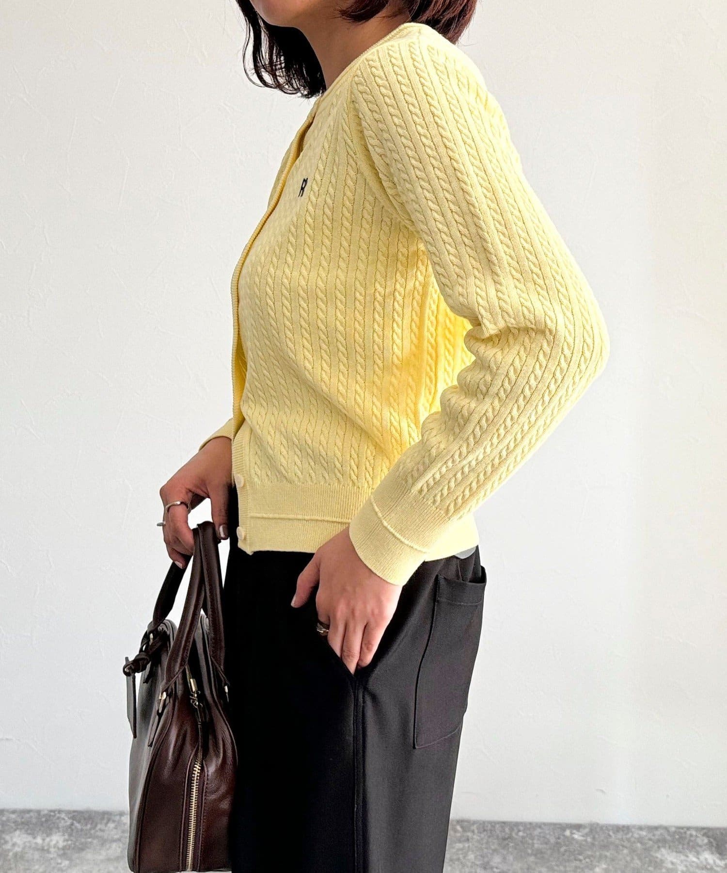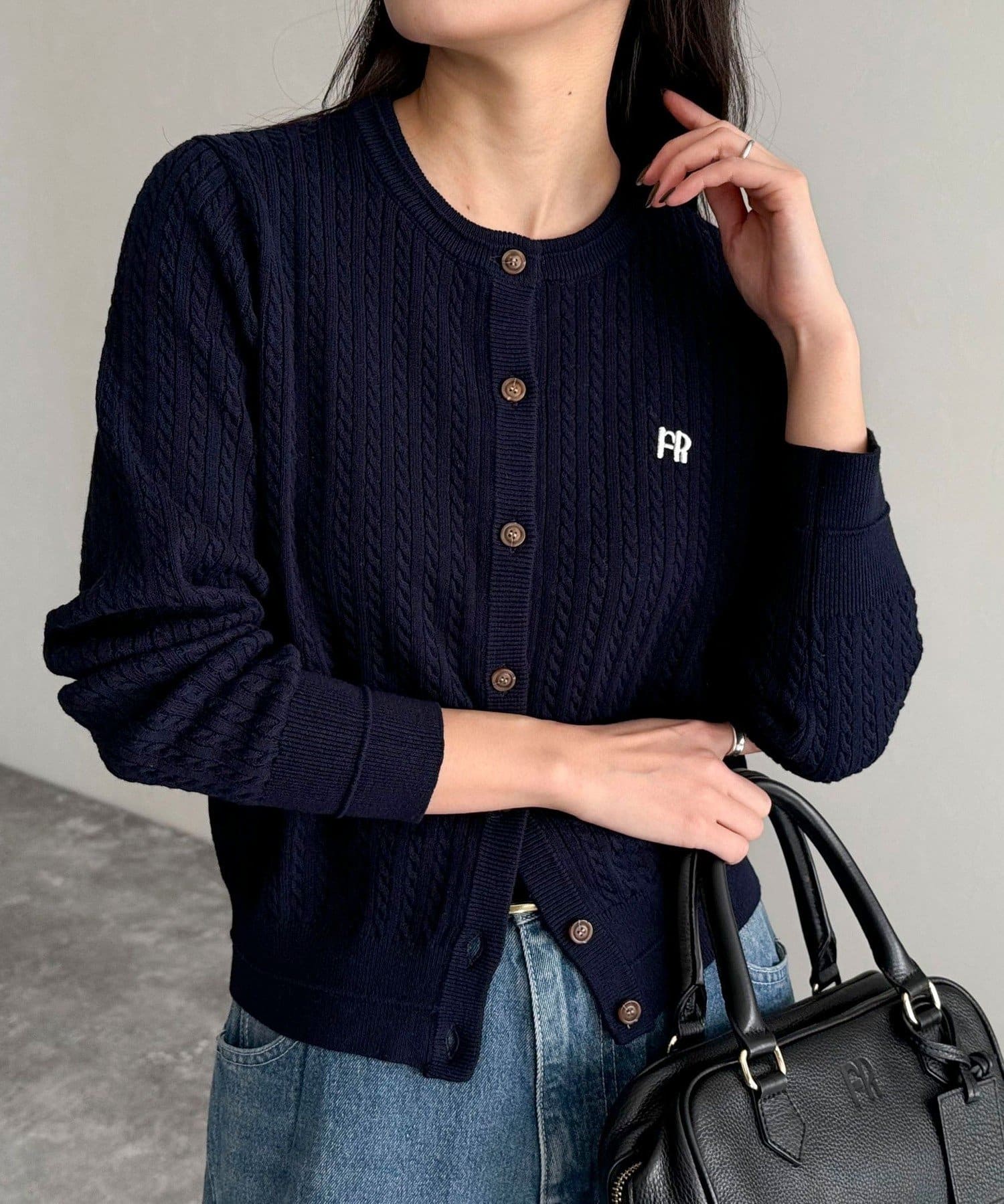 FR刺繍ミニケーブル柄カーディガン
