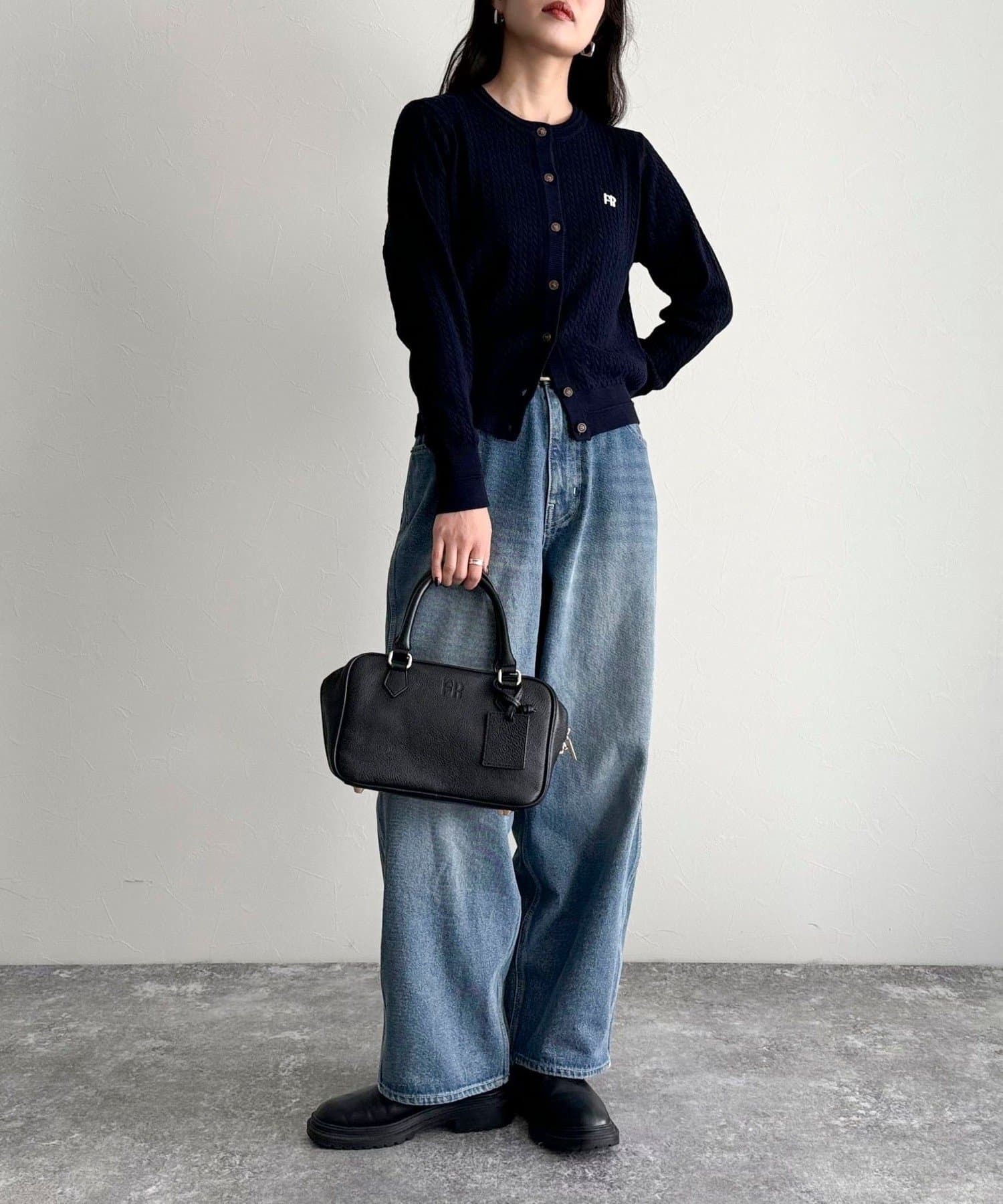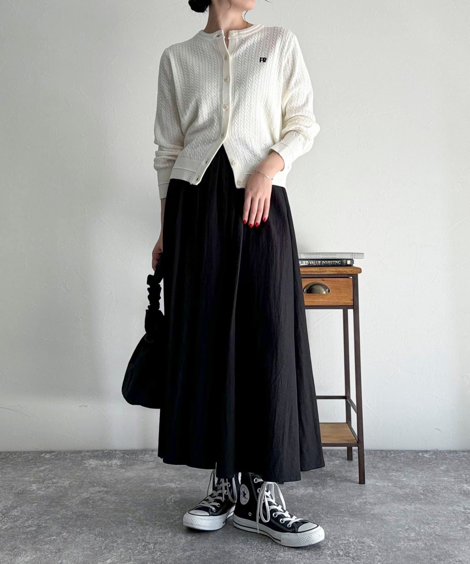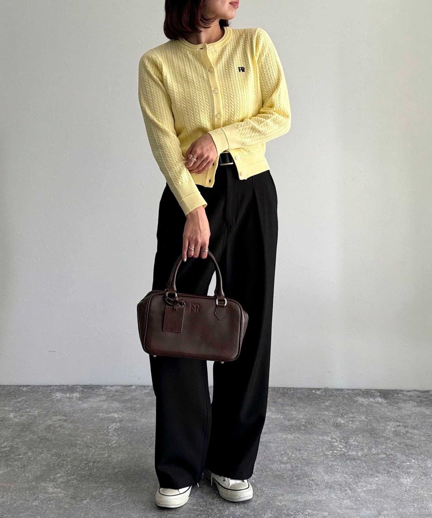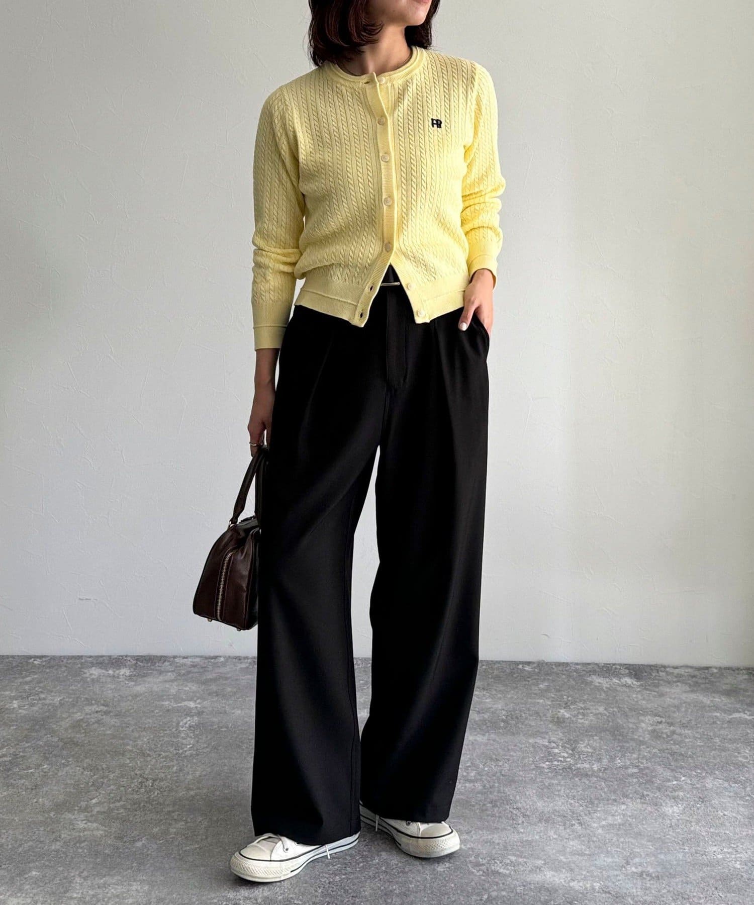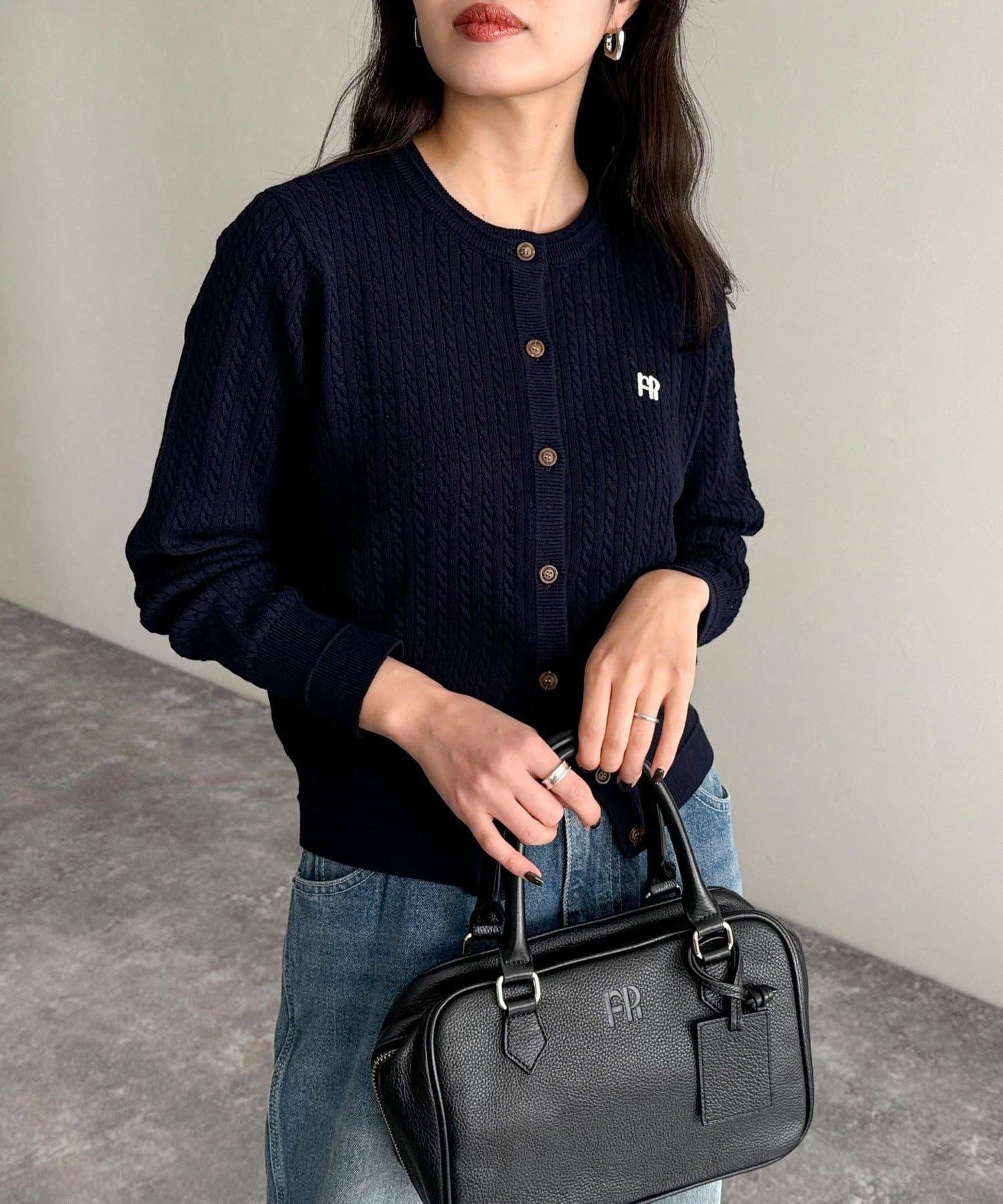 FR刺繍ミニケーブル柄カーディガン