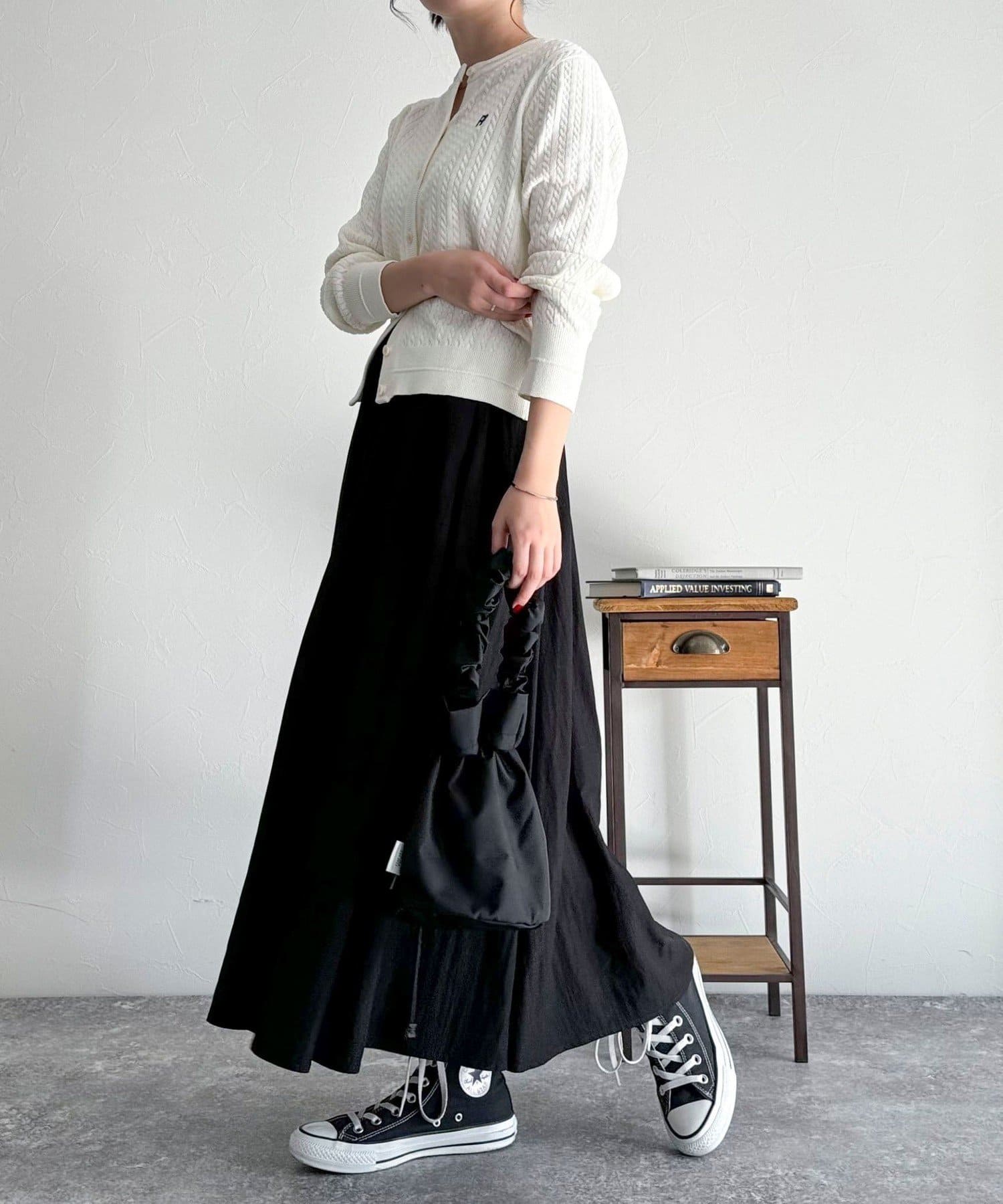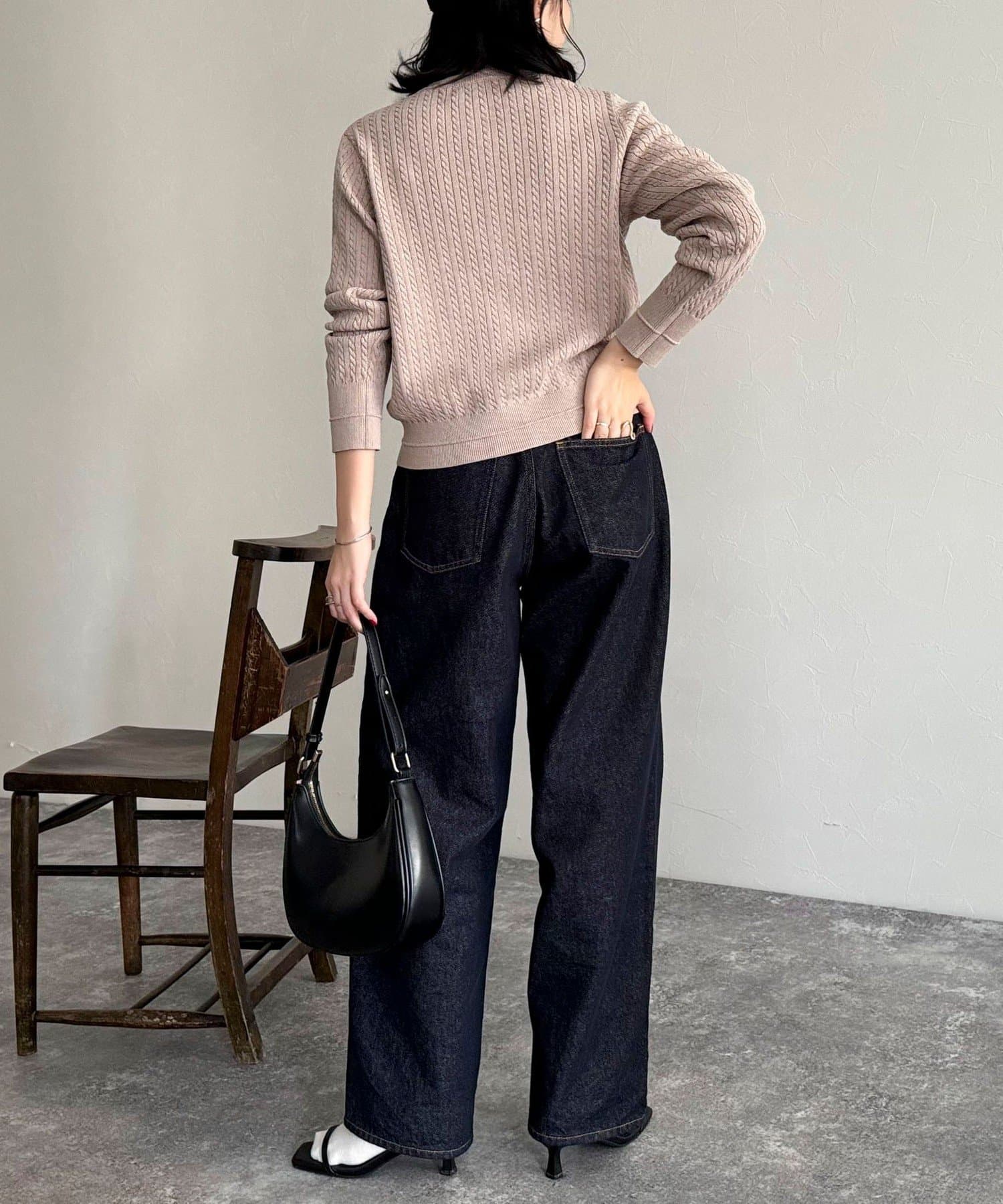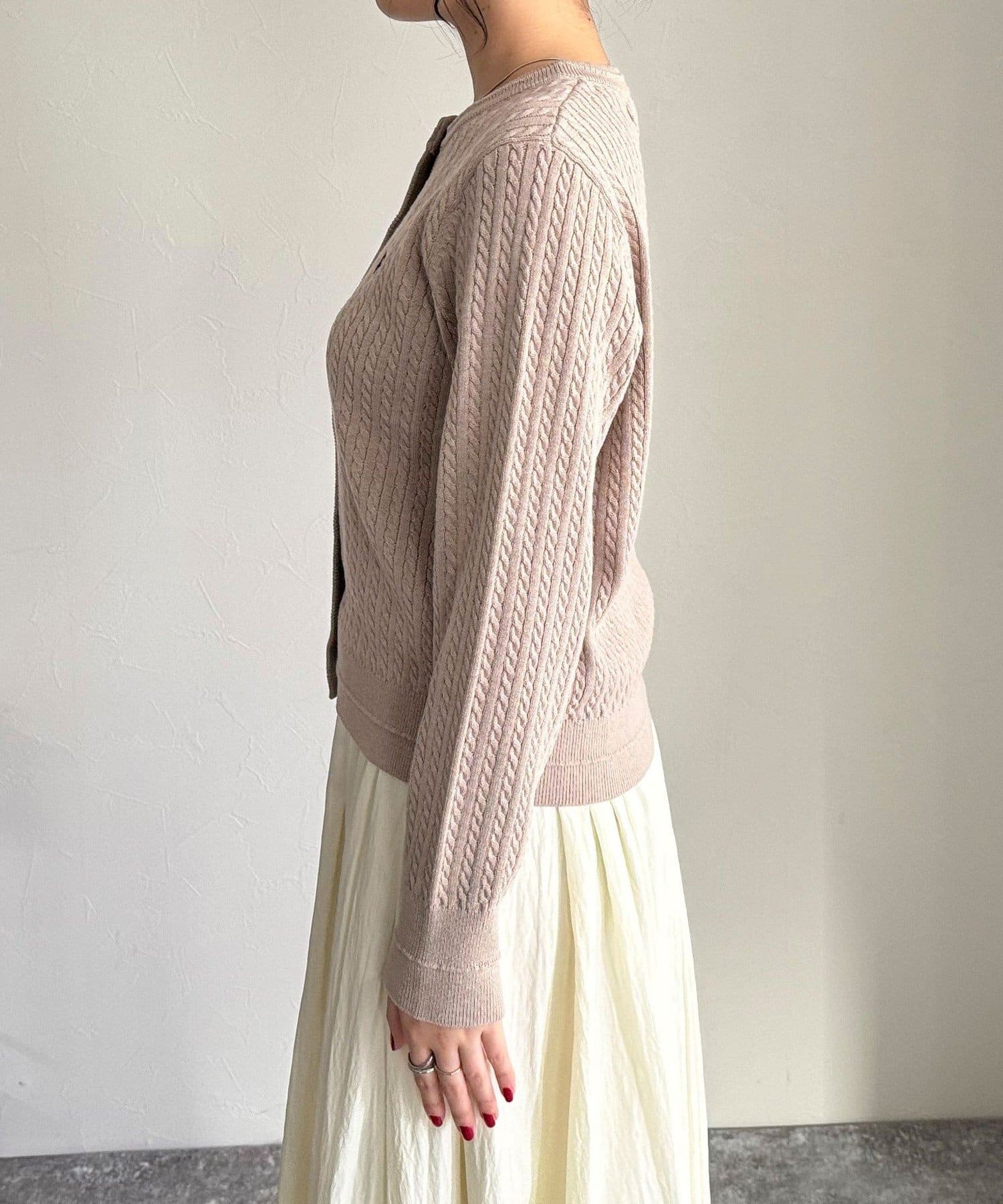 ミニサイズのケーブル編みが可愛いニットカーディガン