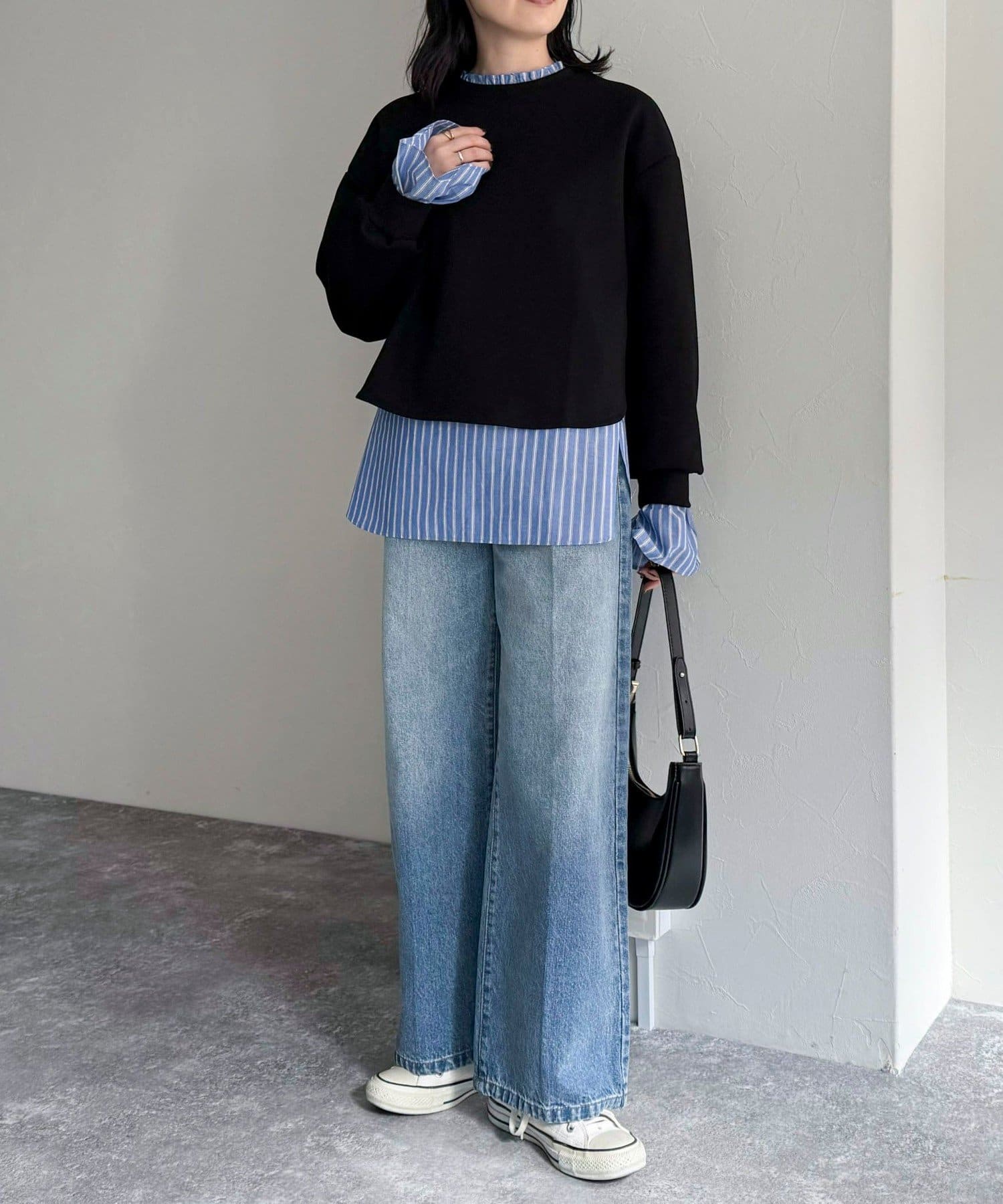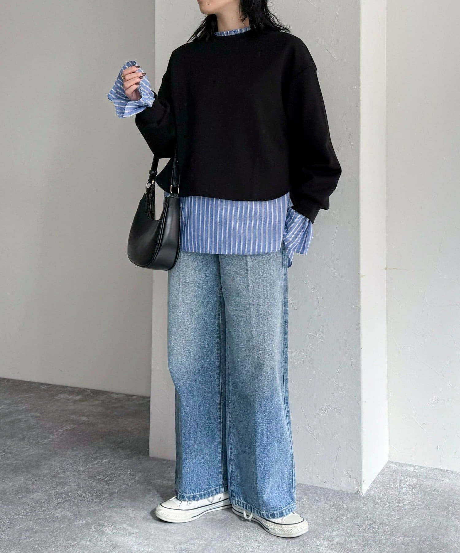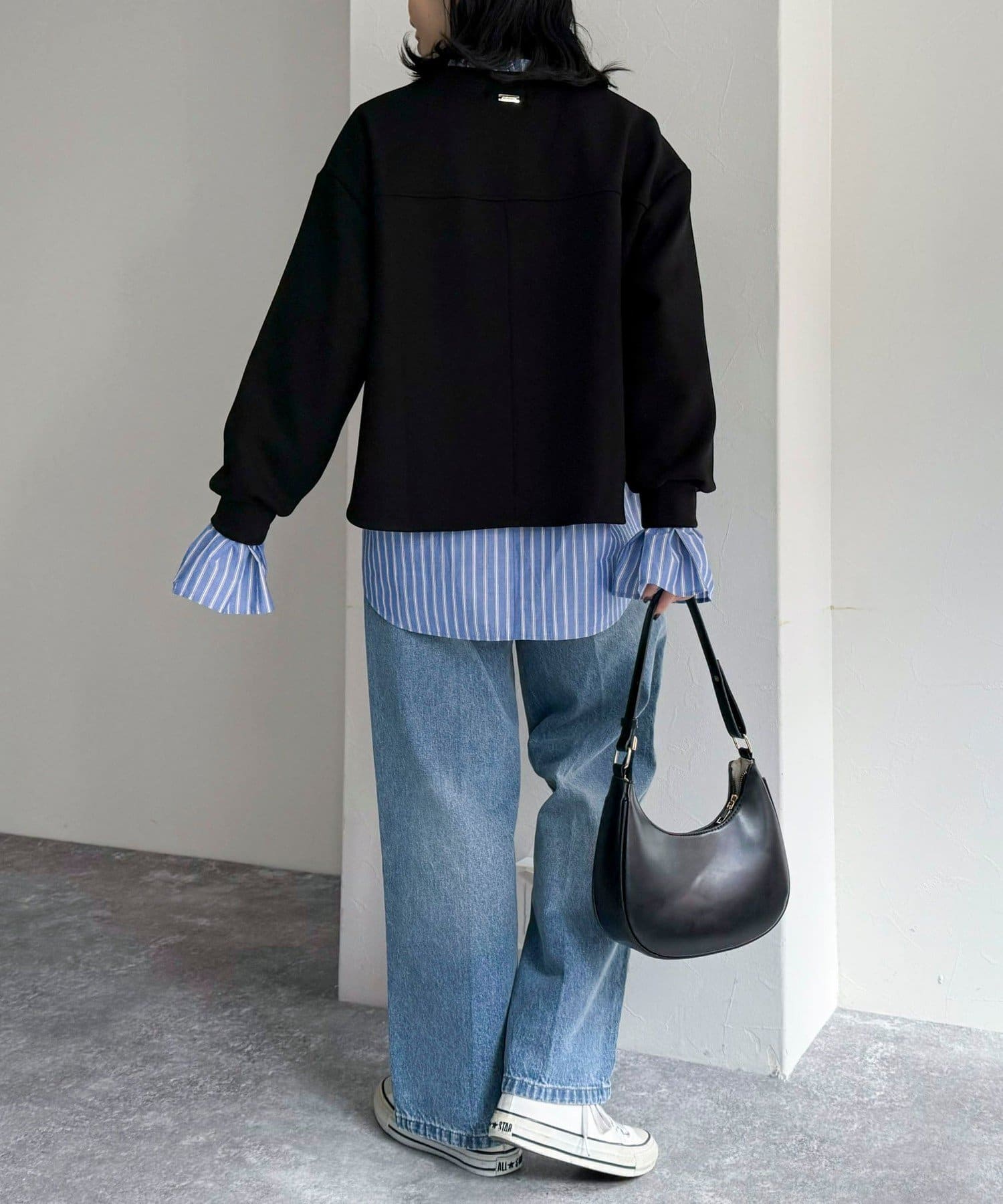 ・ゆったり目のサイズ感なので中にシャツなどを合わせたレイヤードコーデもオススメです