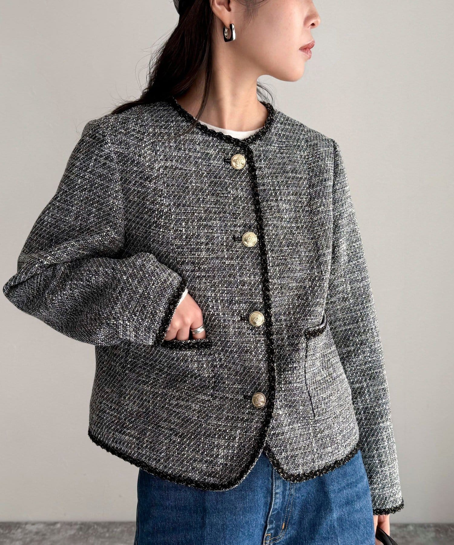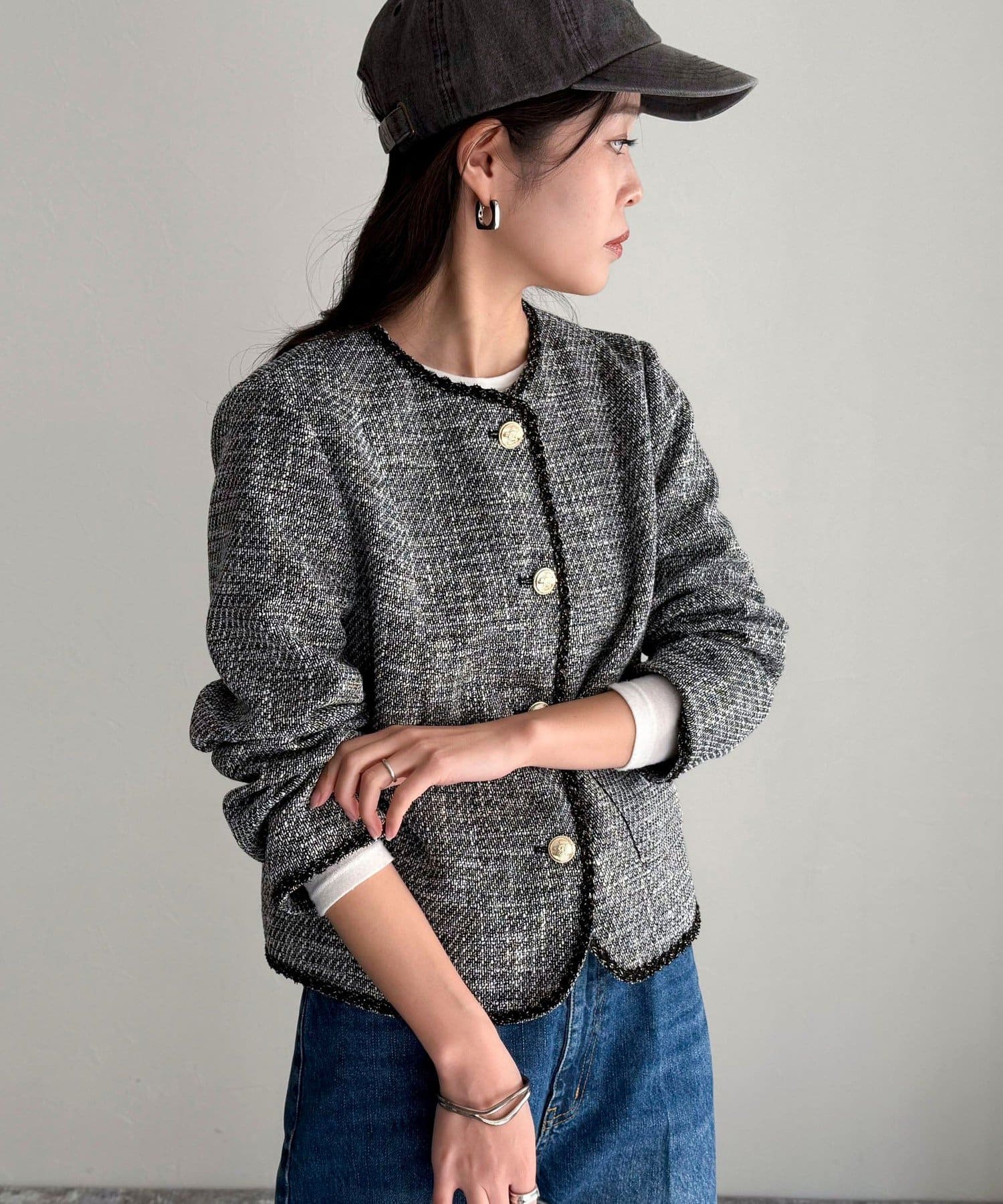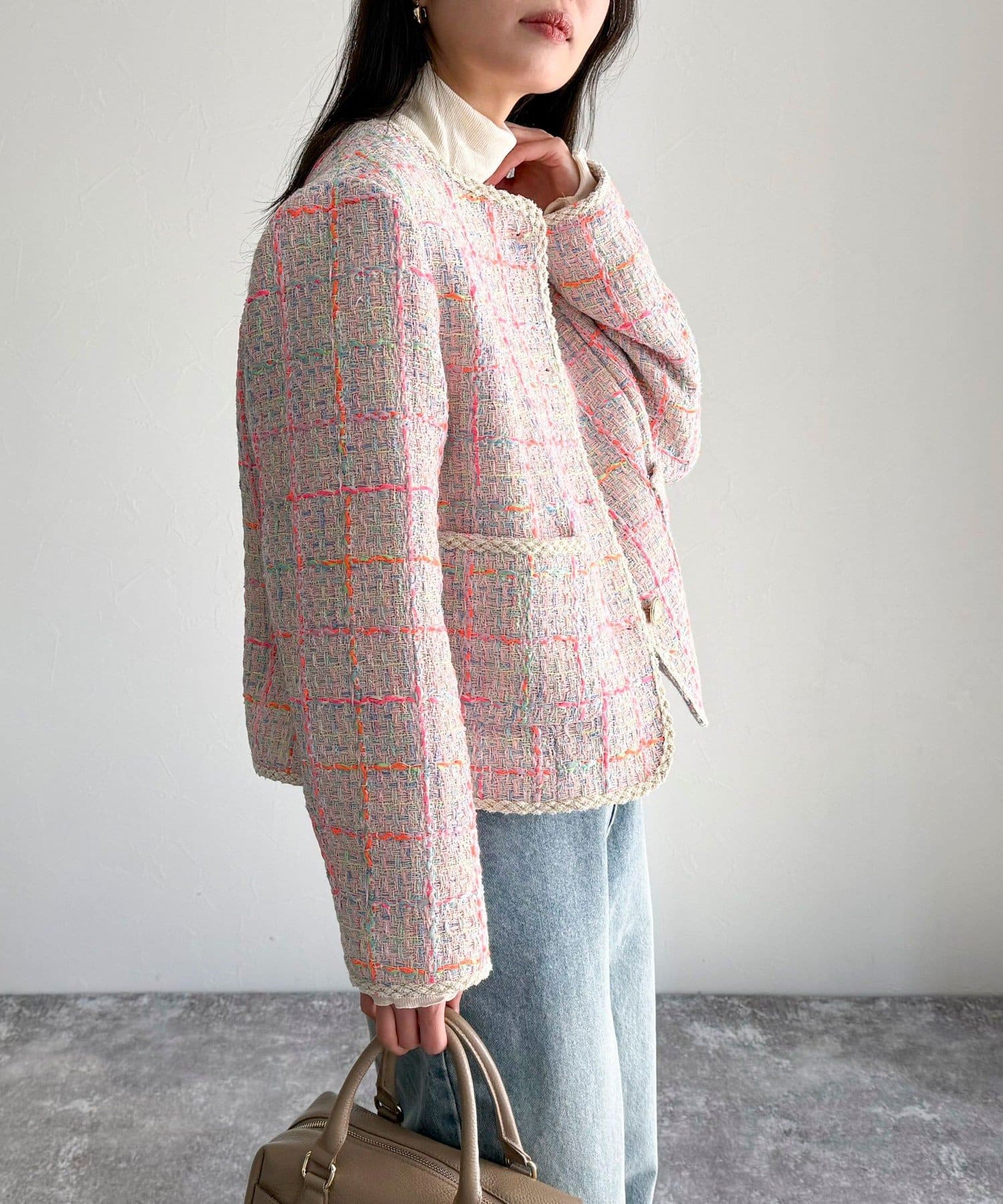 ・MIX感のあるツイードの1枚で着映えするジャケットです
