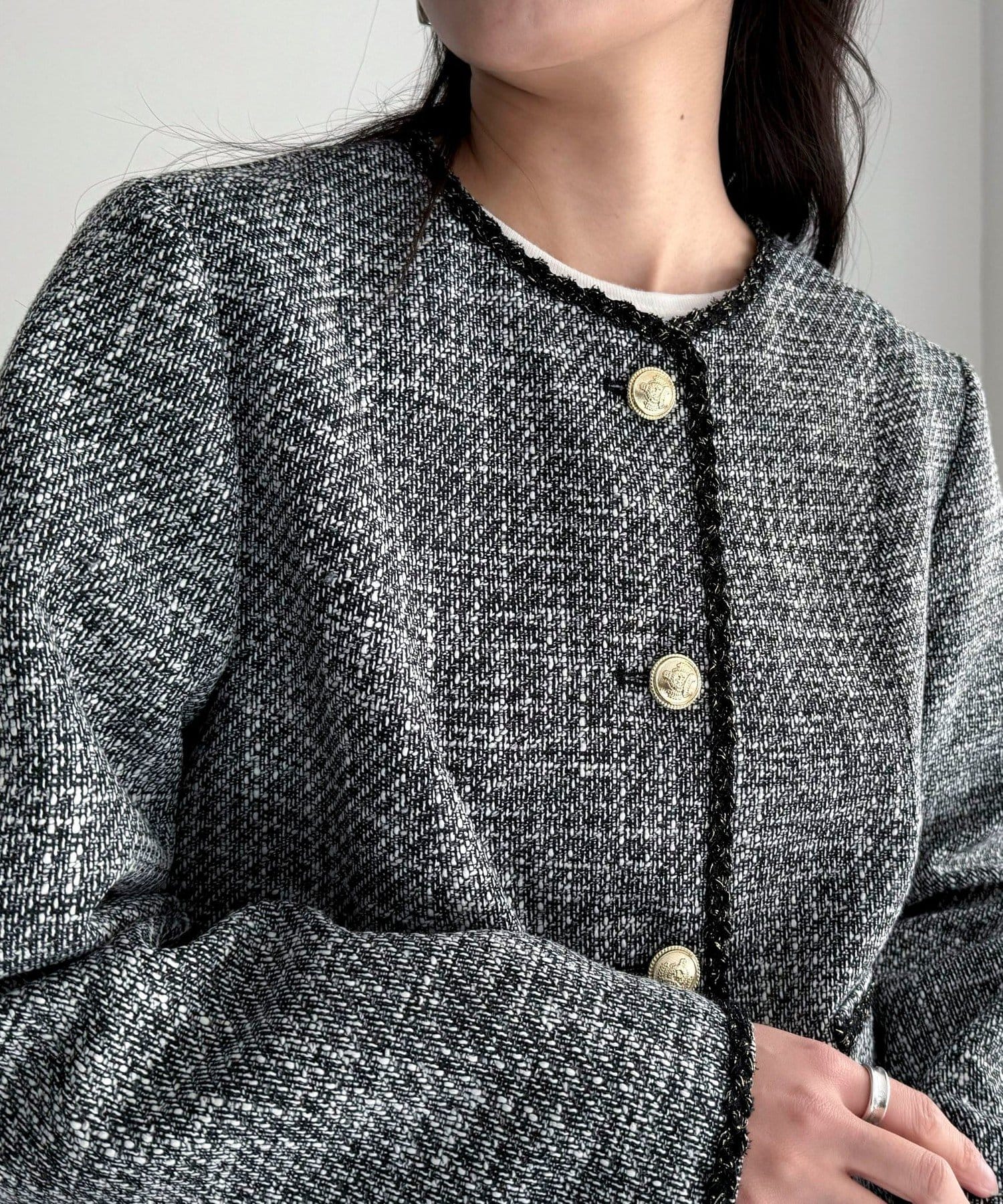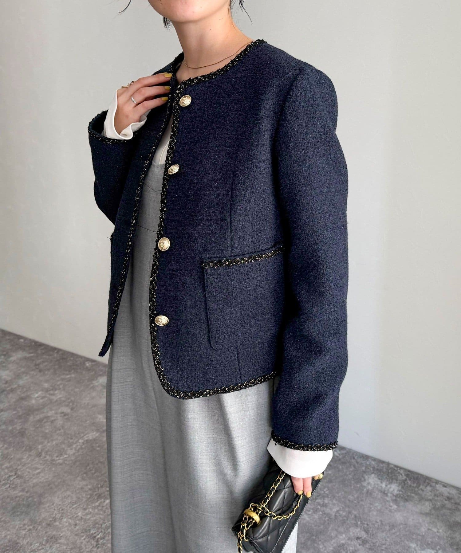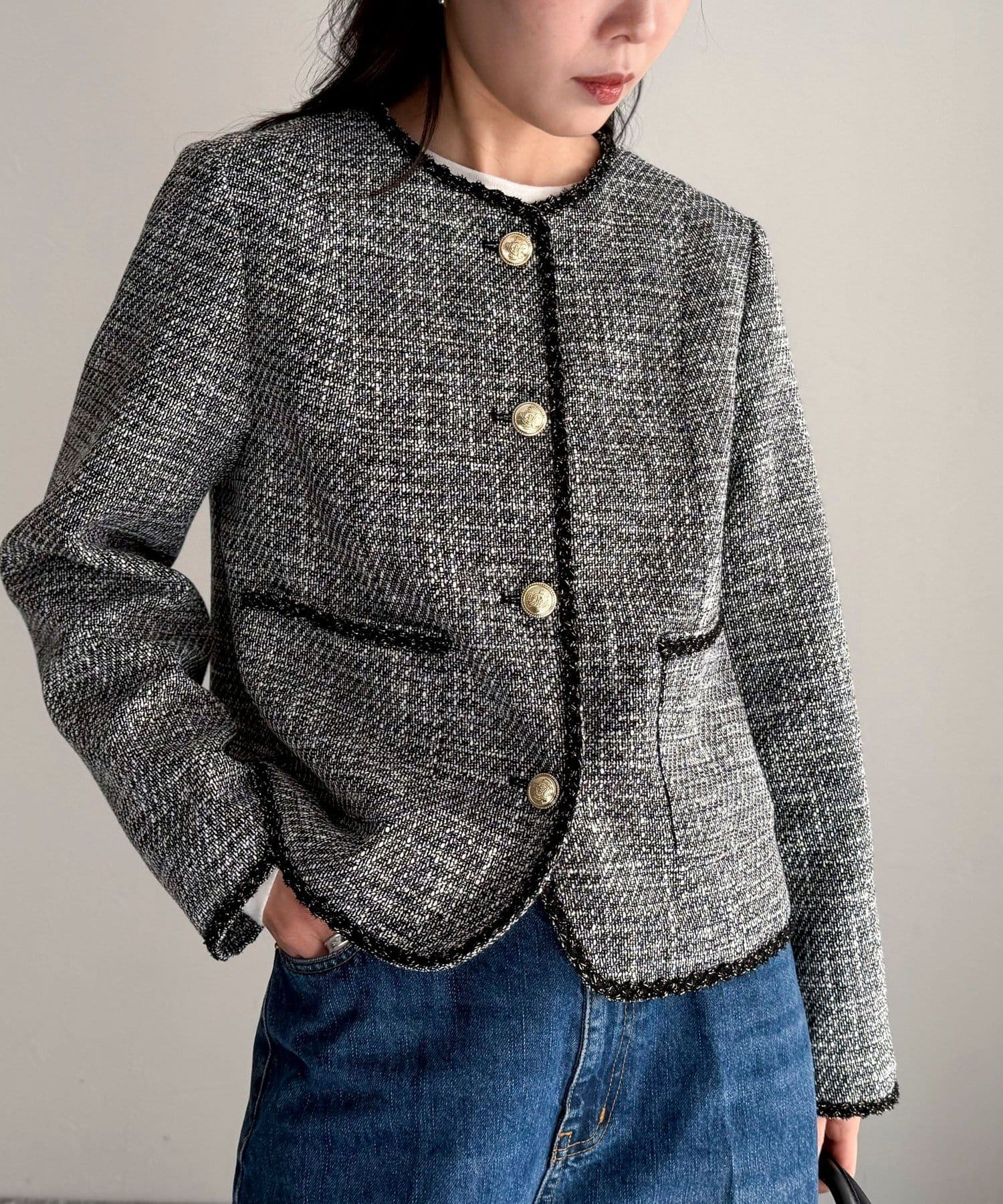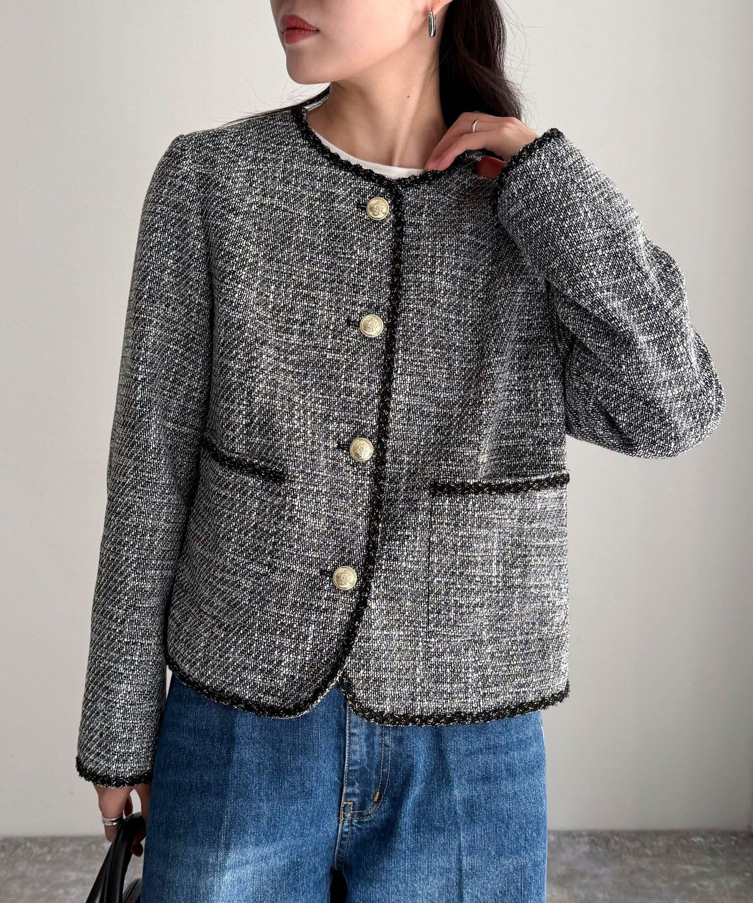 ・MIX感のあるツイードの1枚で着映えするジャケットです