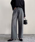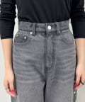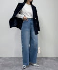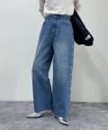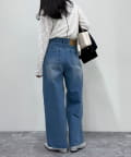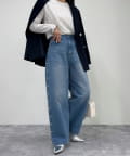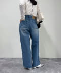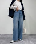 女性らしい着こなしが叶うパール付きセミワイドデニム