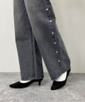 ・大人可愛いパールがプラスされたトレンド感満載のデニムパンツです