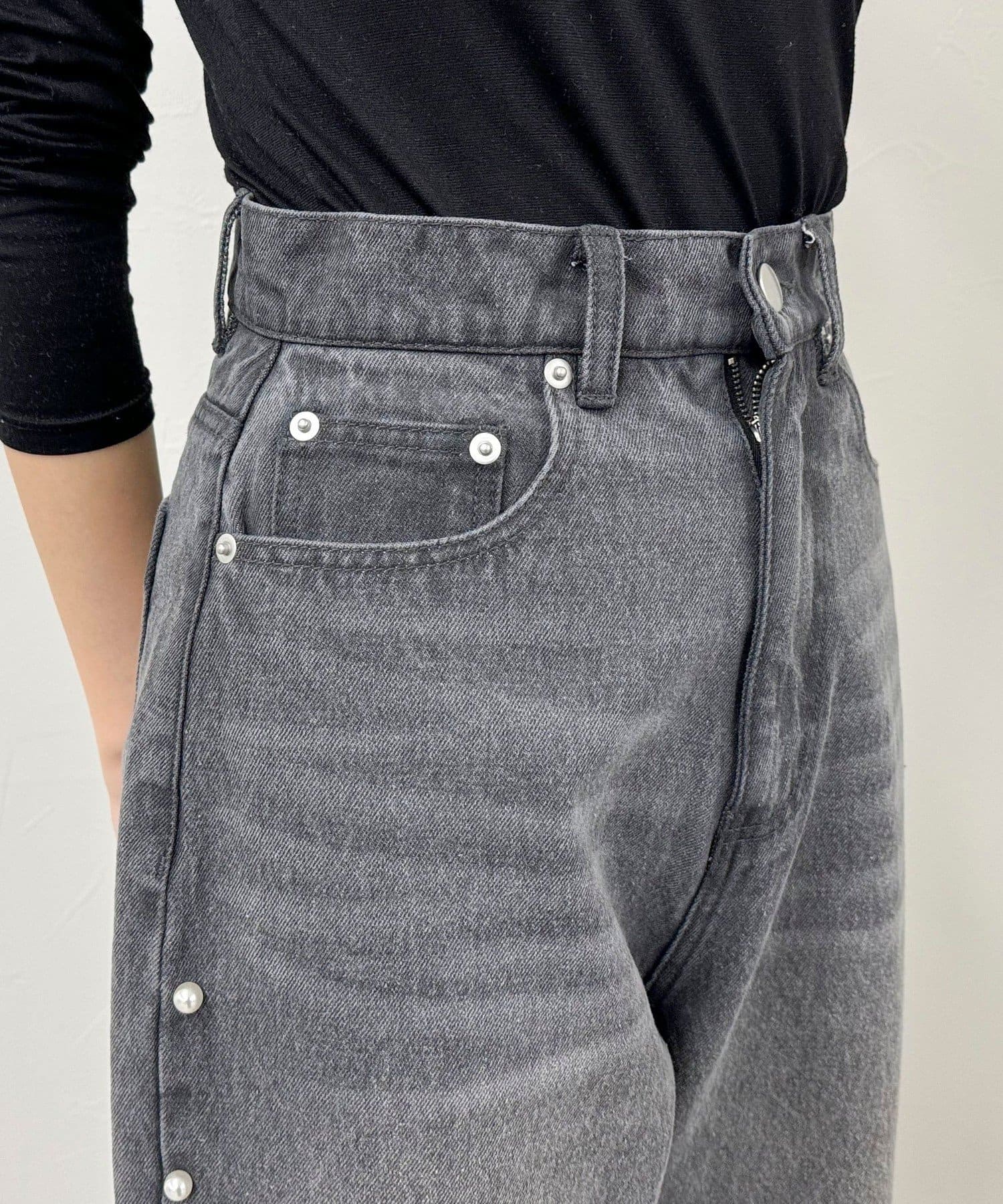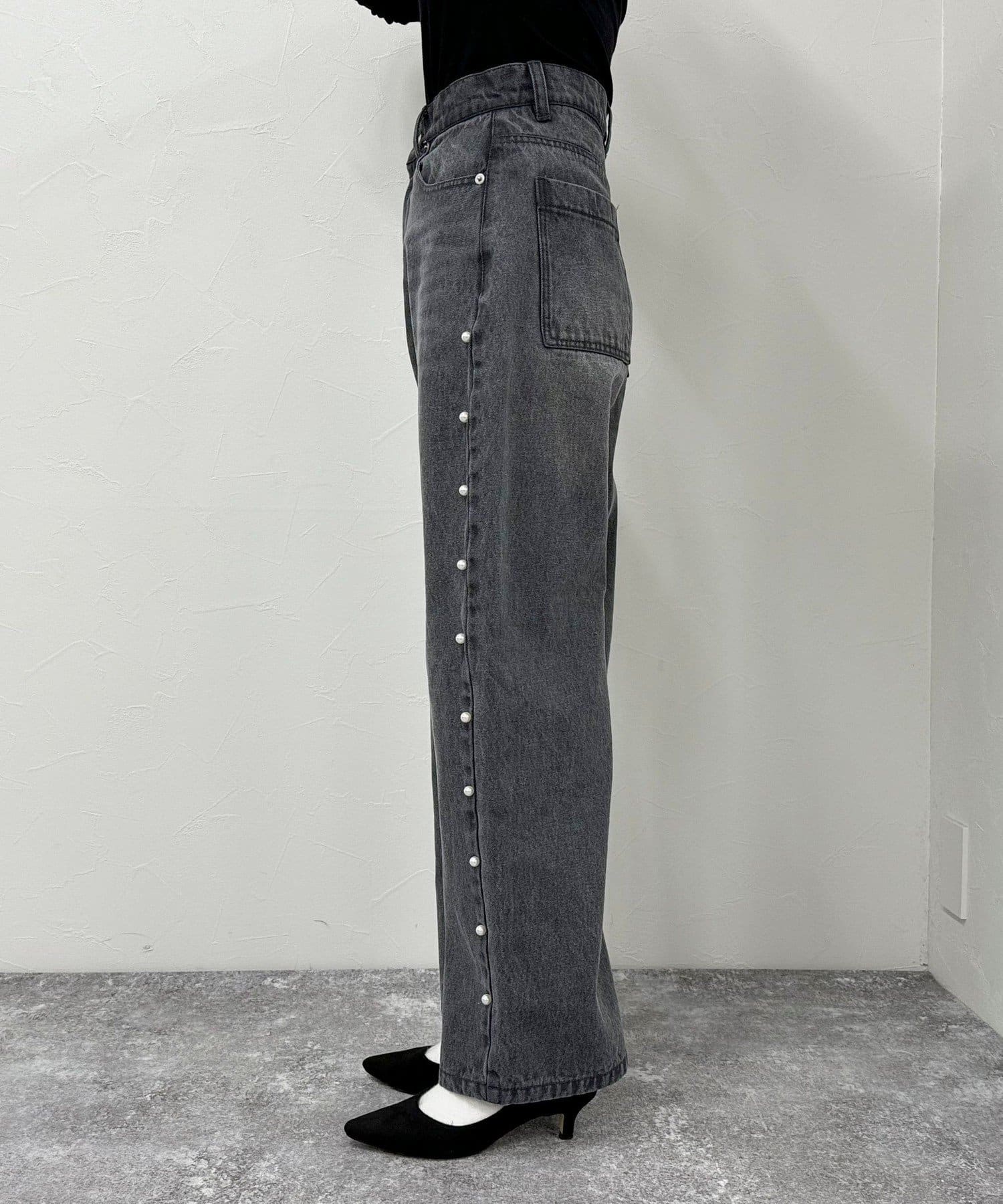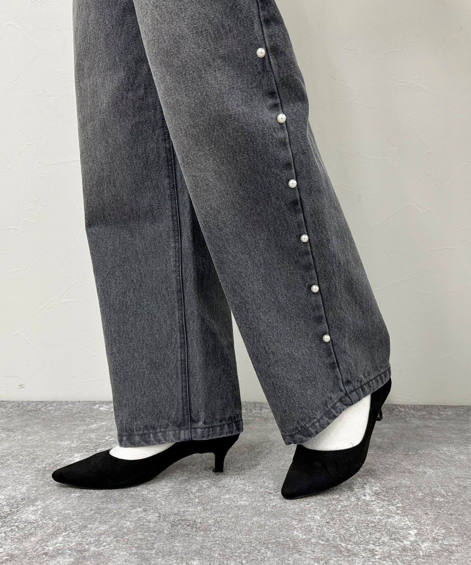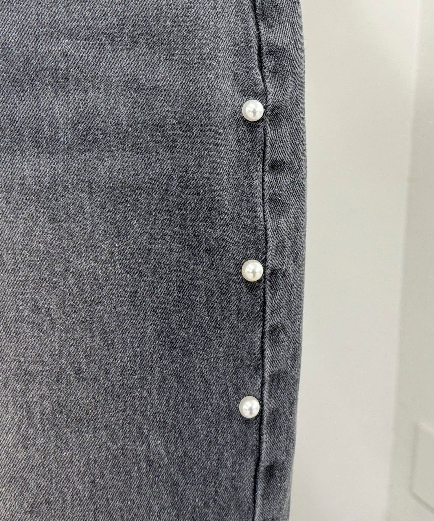 ・大人可愛いパールがプラスされたトレンド感満載のデニムパンツです