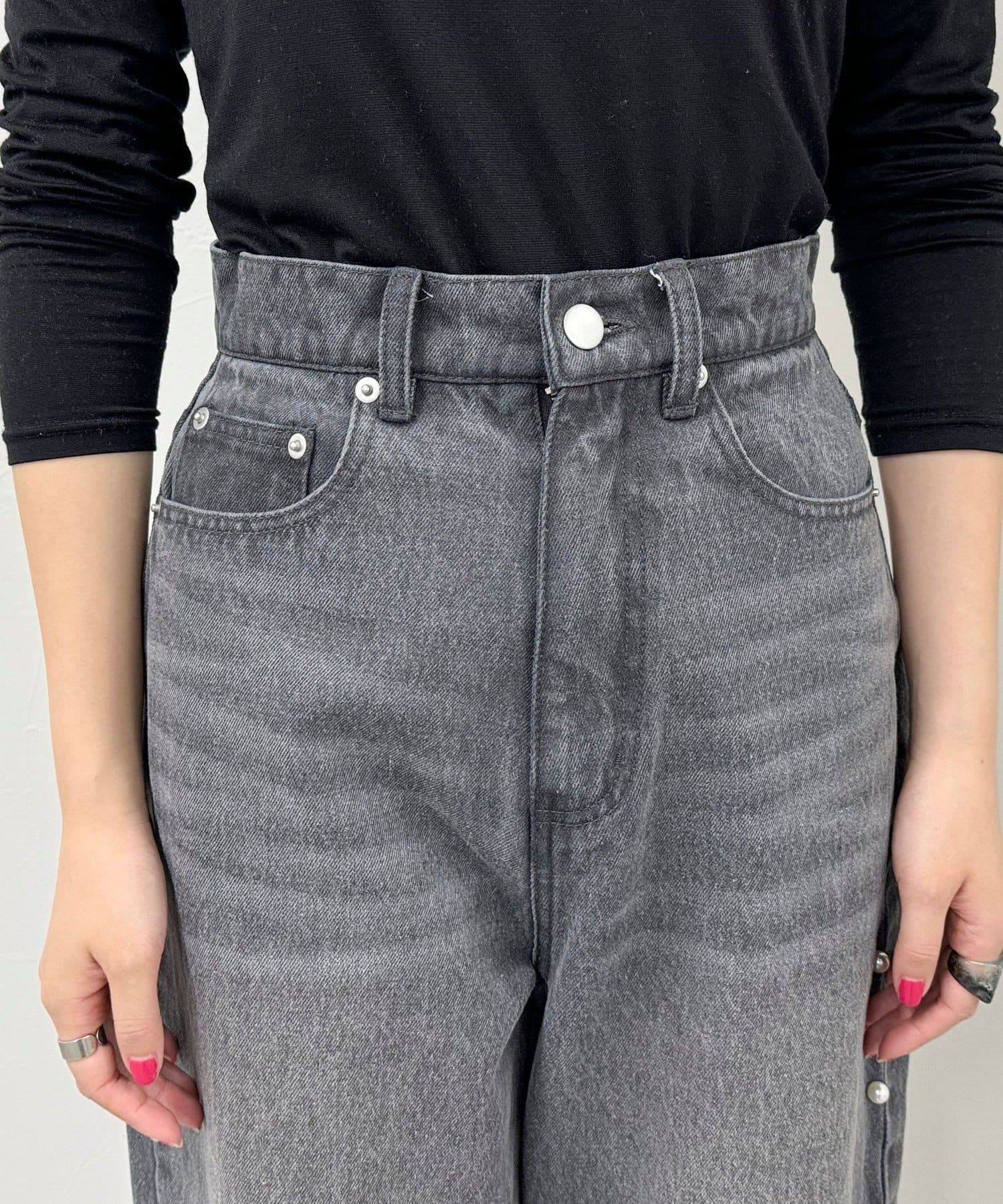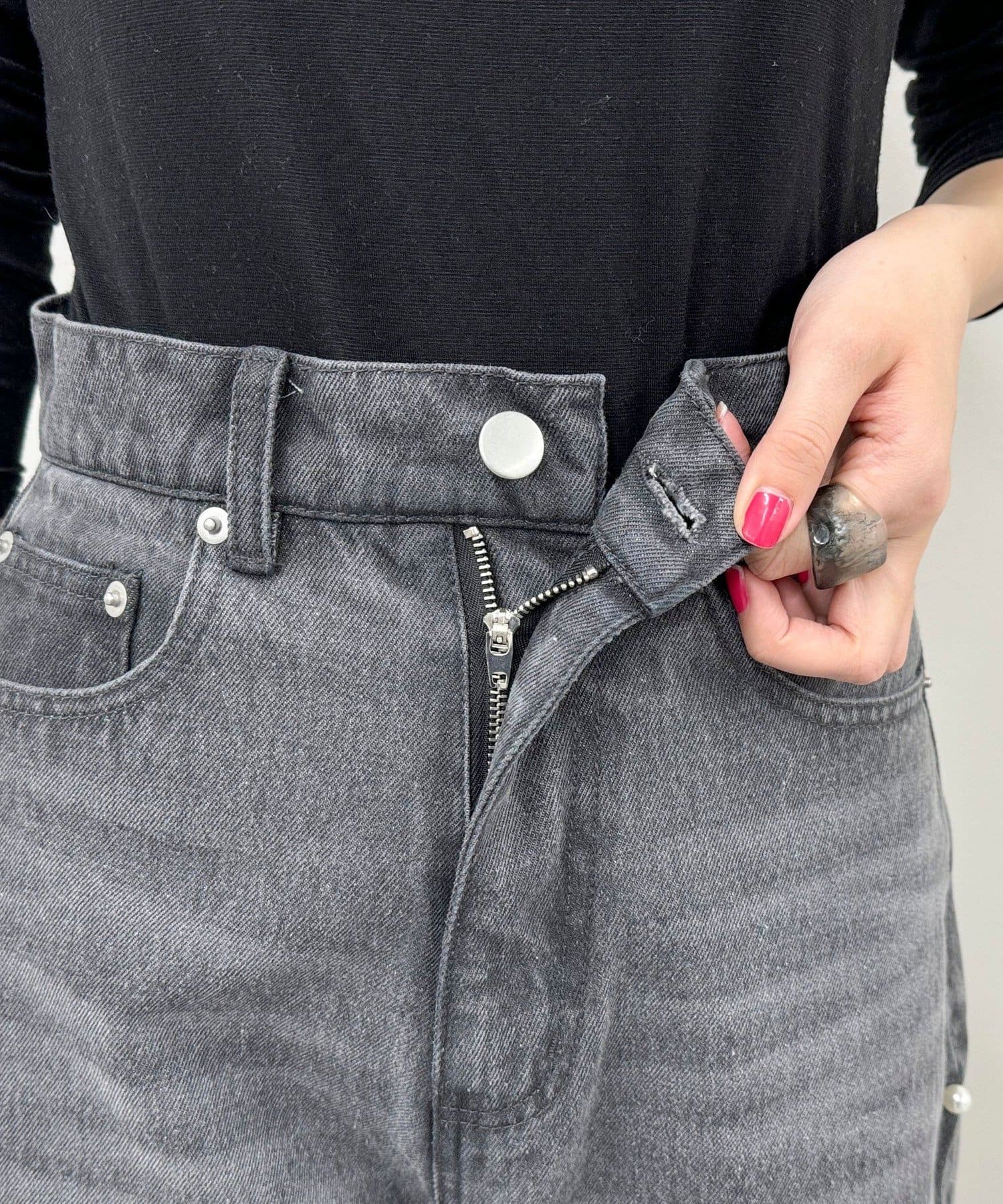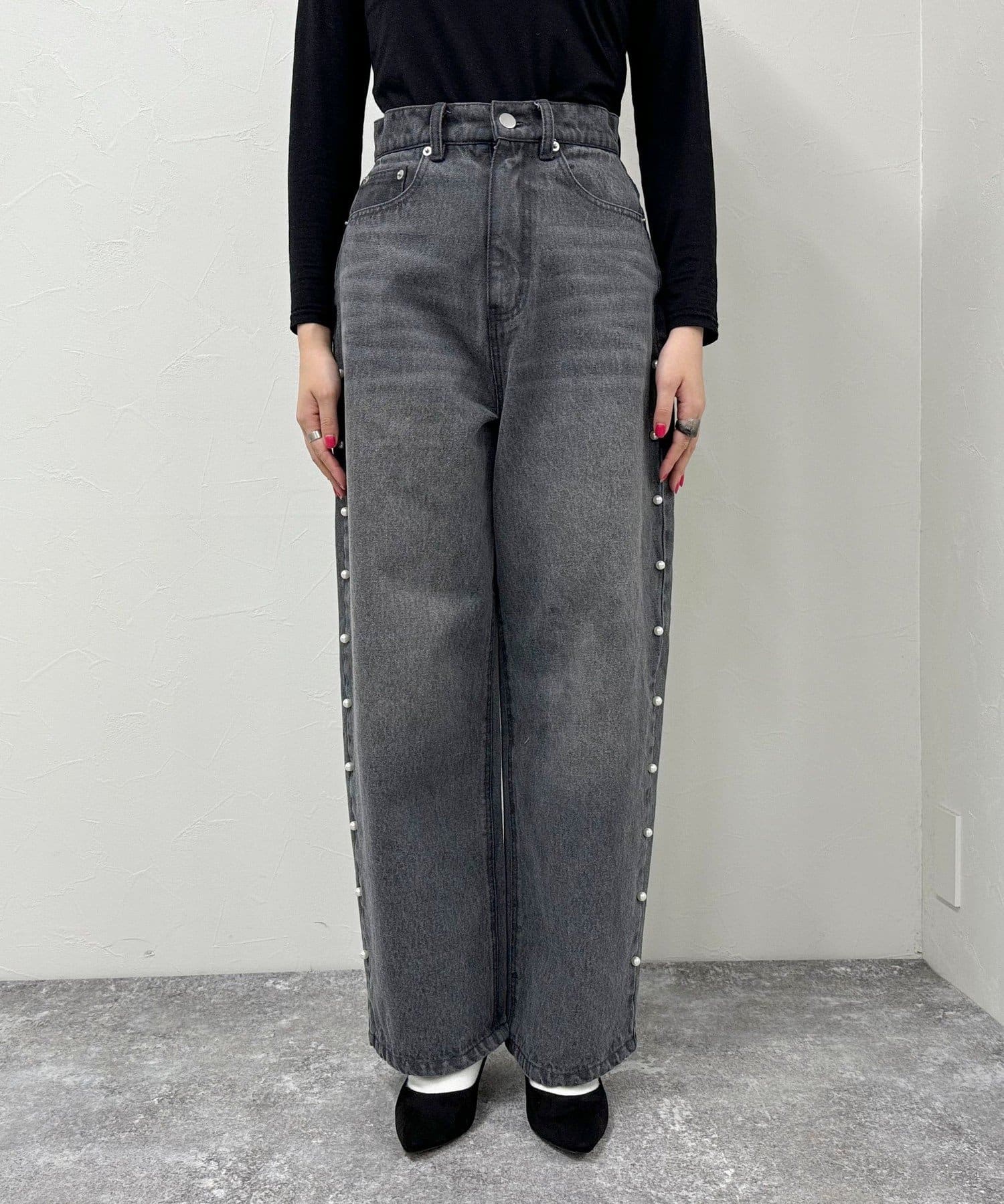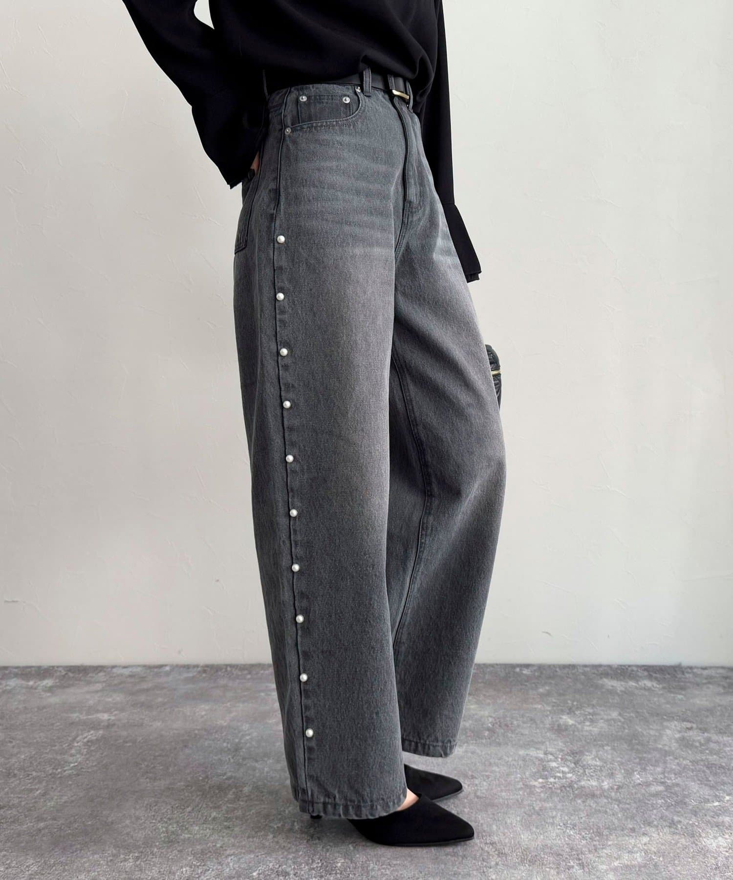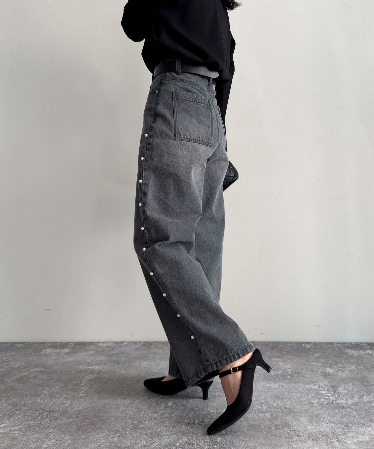 ・大人可愛いパールがプラスされたトレンド感満載のデニムパンツです