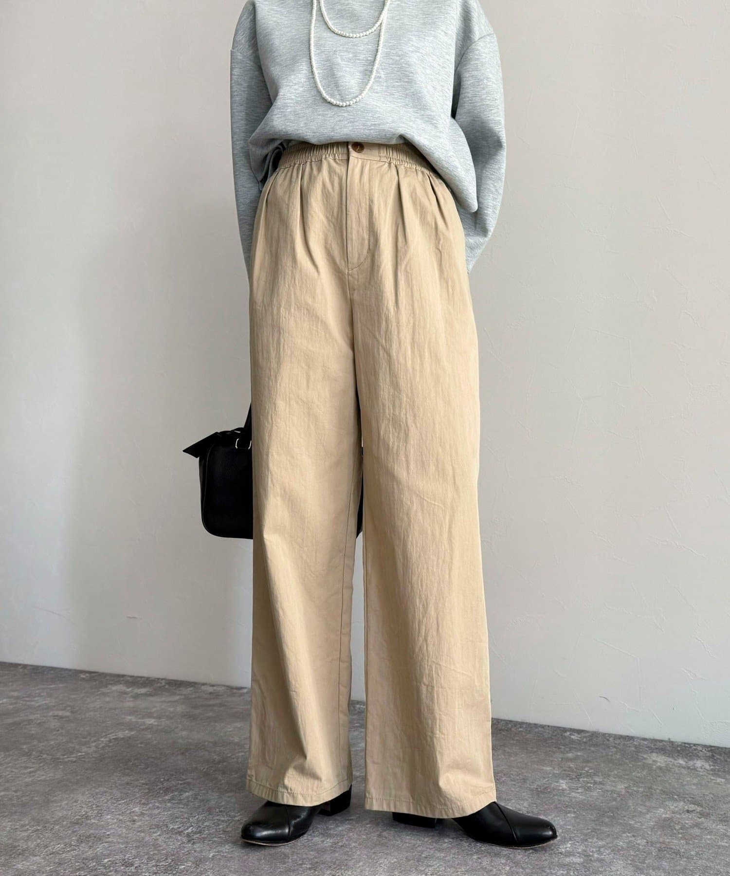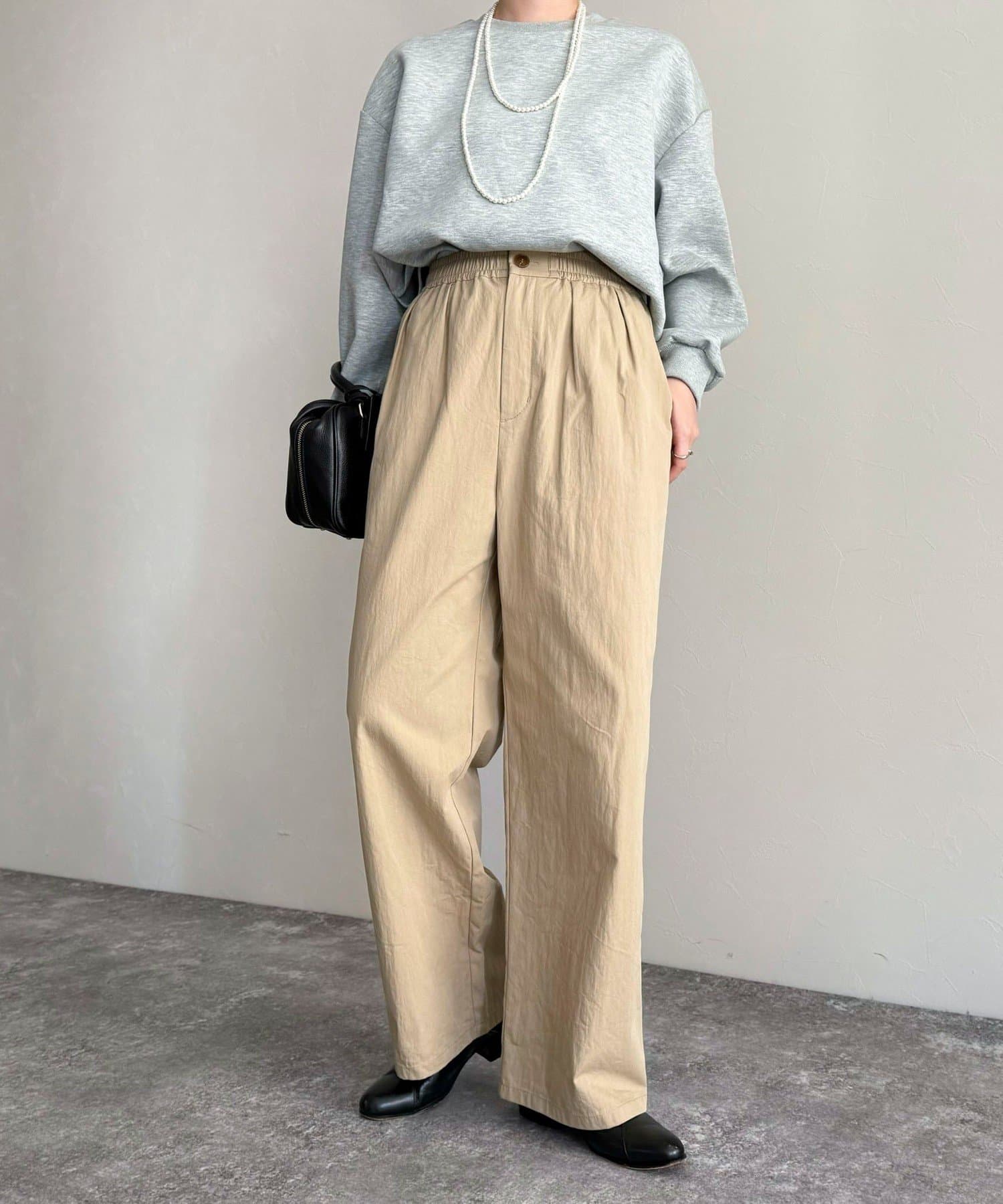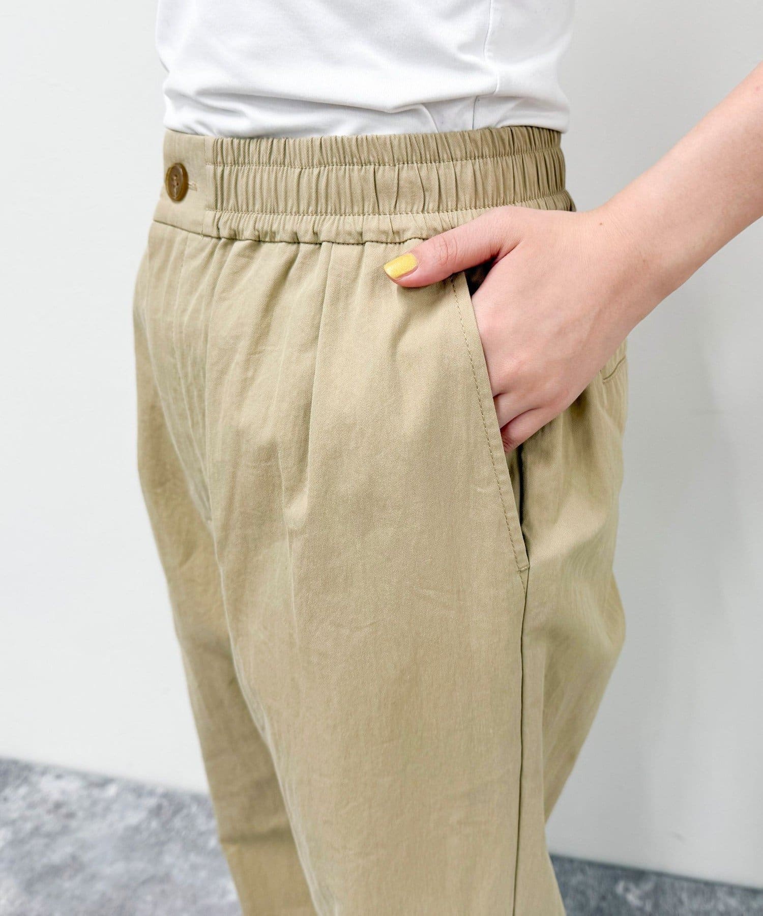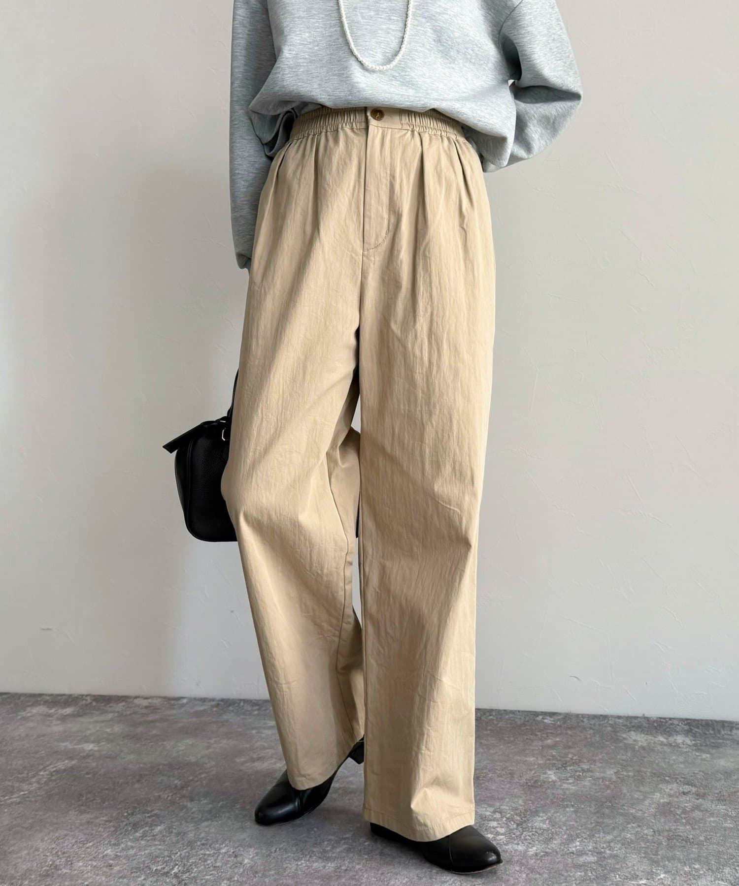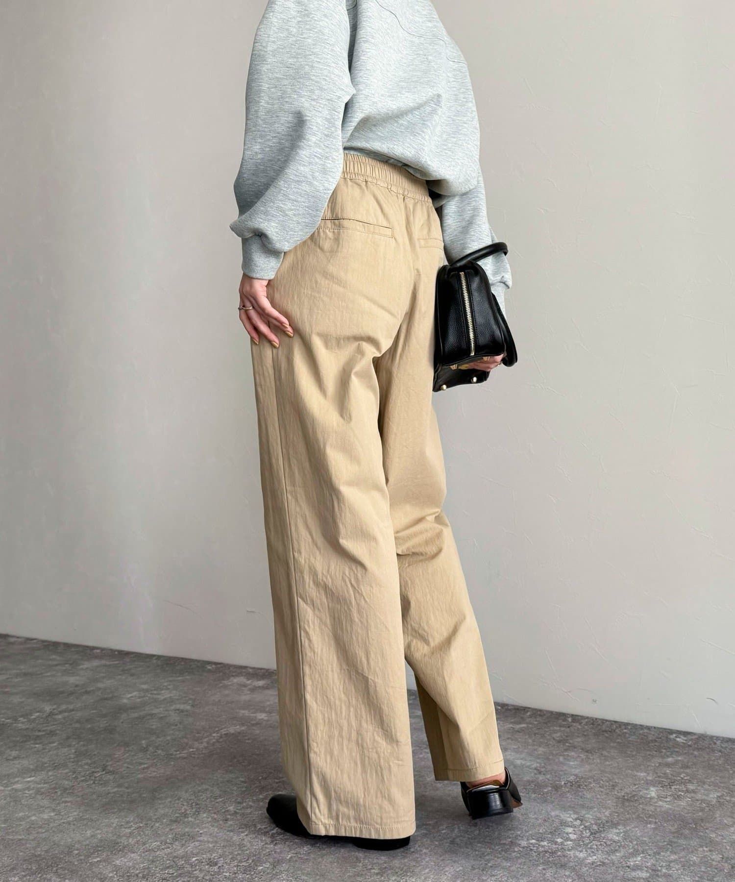 ・綿ナイロンのサラッとした生地感のイージーストレートパンツ